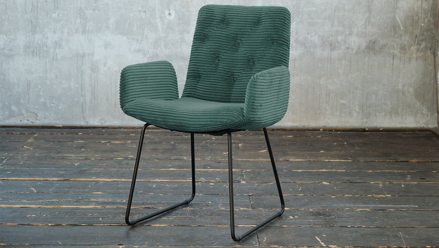 KAWOLA Stuhl NEW CHARME Esszimmersessel Cord smaragd