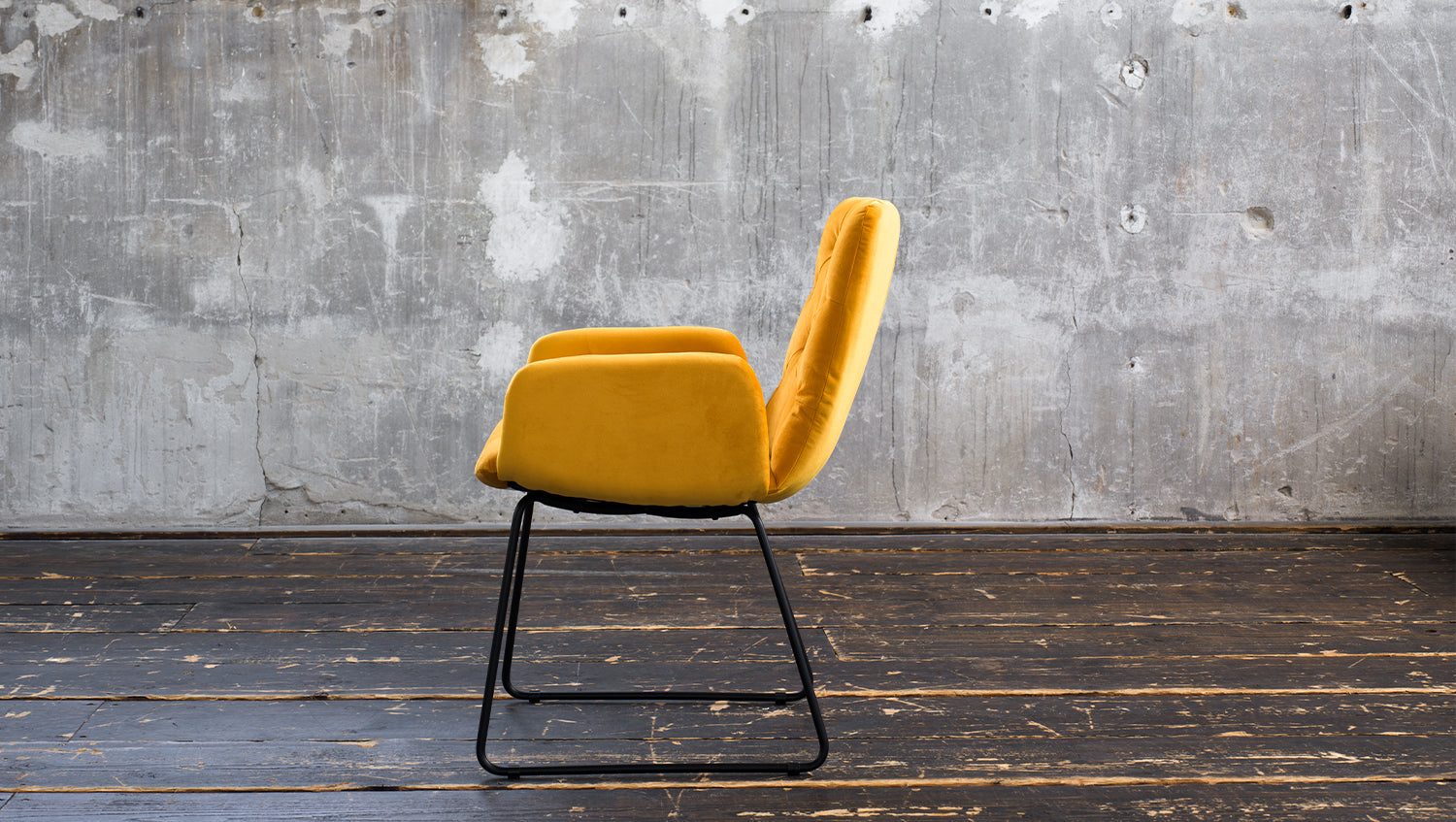 Der KAWOLA Esszimmerstuhl NEW CHARME ist nicht nur ein Möbelstück, sondern ein wahres Design-Highlight, das in Ihrem Zuhause neue Akzente setzt. Der Stil der Serie NEW CHARME erinnert an die Sechziger Jahre: Der Rücken wurde aufwendig abgesteppt ohne Knöpfe; die Rückenlehne wurde an den beiden Seiten leicht nach vorne gewölbt und erinnert an die Form eines Ohrensessels; die Kufenfüße aus Metall sind pulverbeschichtet. Zu der ausgefallenen Form des Stuhls NEW CHARME wurde hier der Bezug in angenehm weichem Velvet-Stoff gewählt. Wer nicht nur einen Esszimmerstuhl sucht, sondern einen zeitlos-stylischen Trendsetter, liegt mit der Serie NEW CHARME von KAWOLA goldrichtig!