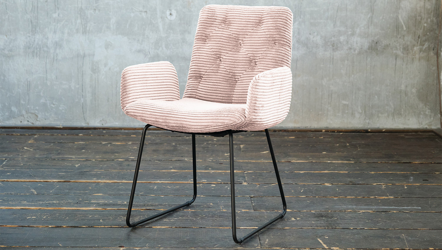 KAWOLA Stuhl NEW CHARME Esszimmersessel Cord rosa
