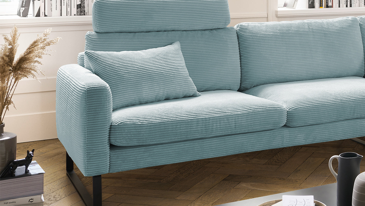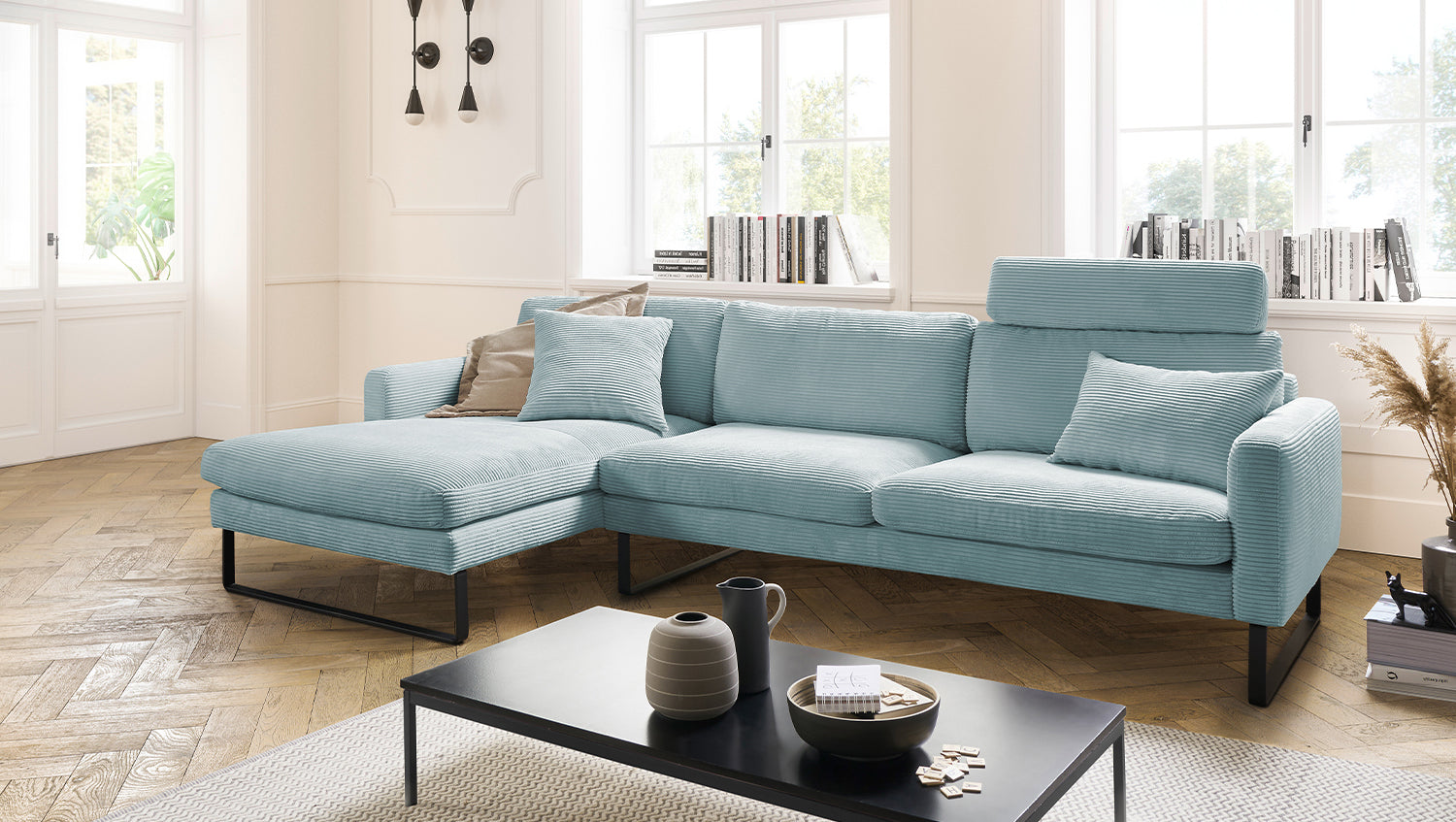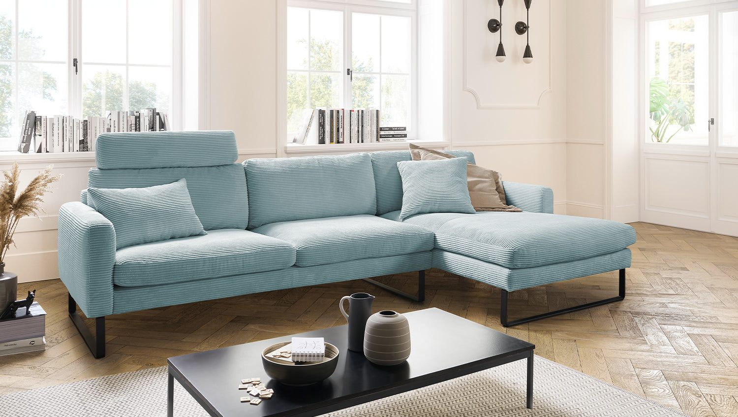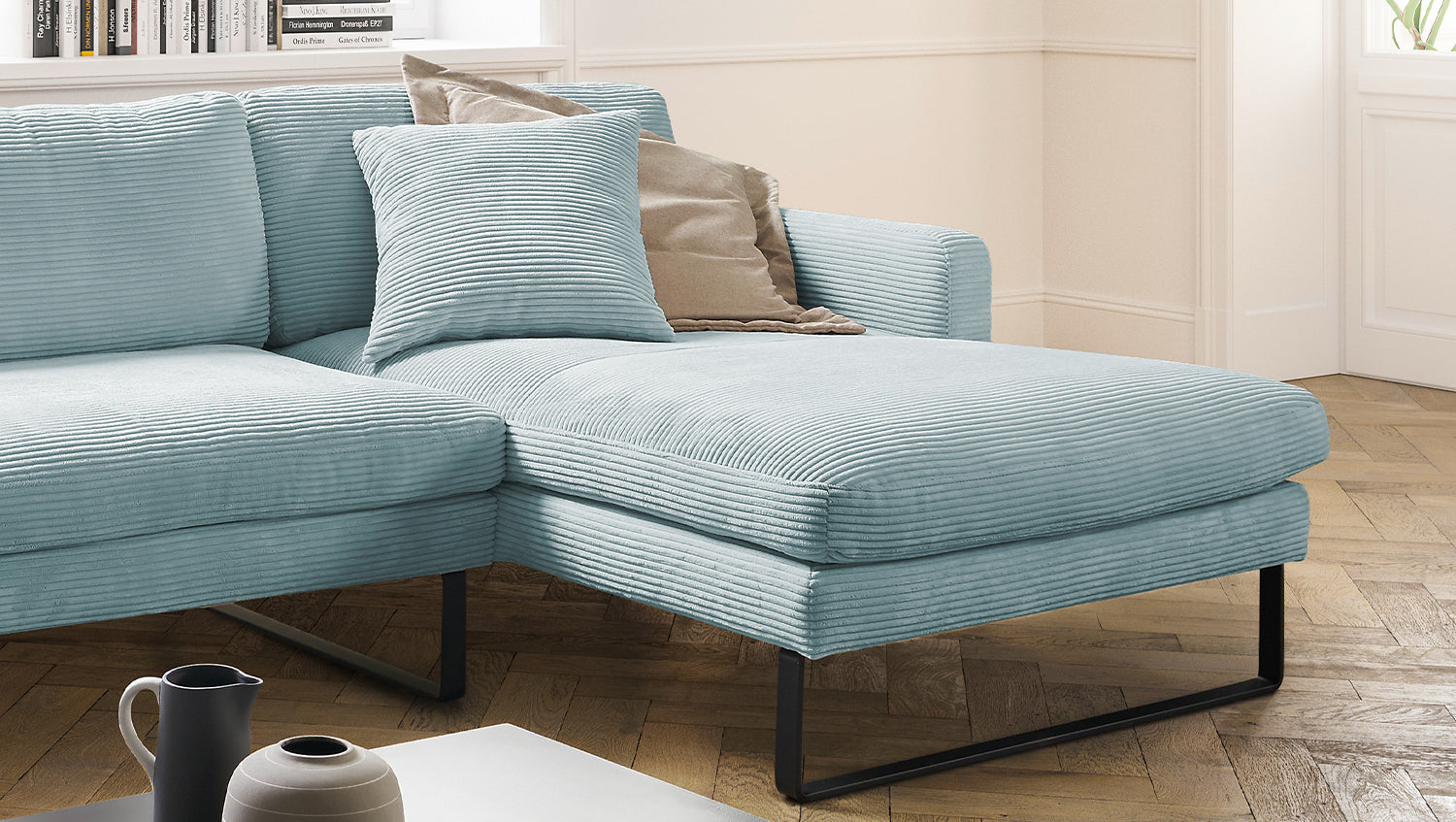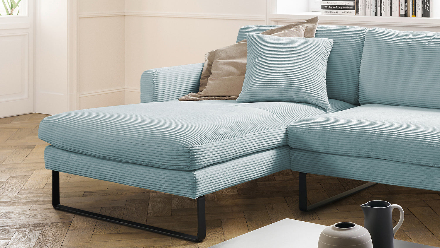KAWOLA Sofa RICARDA Ecksofa Cord hellblau
