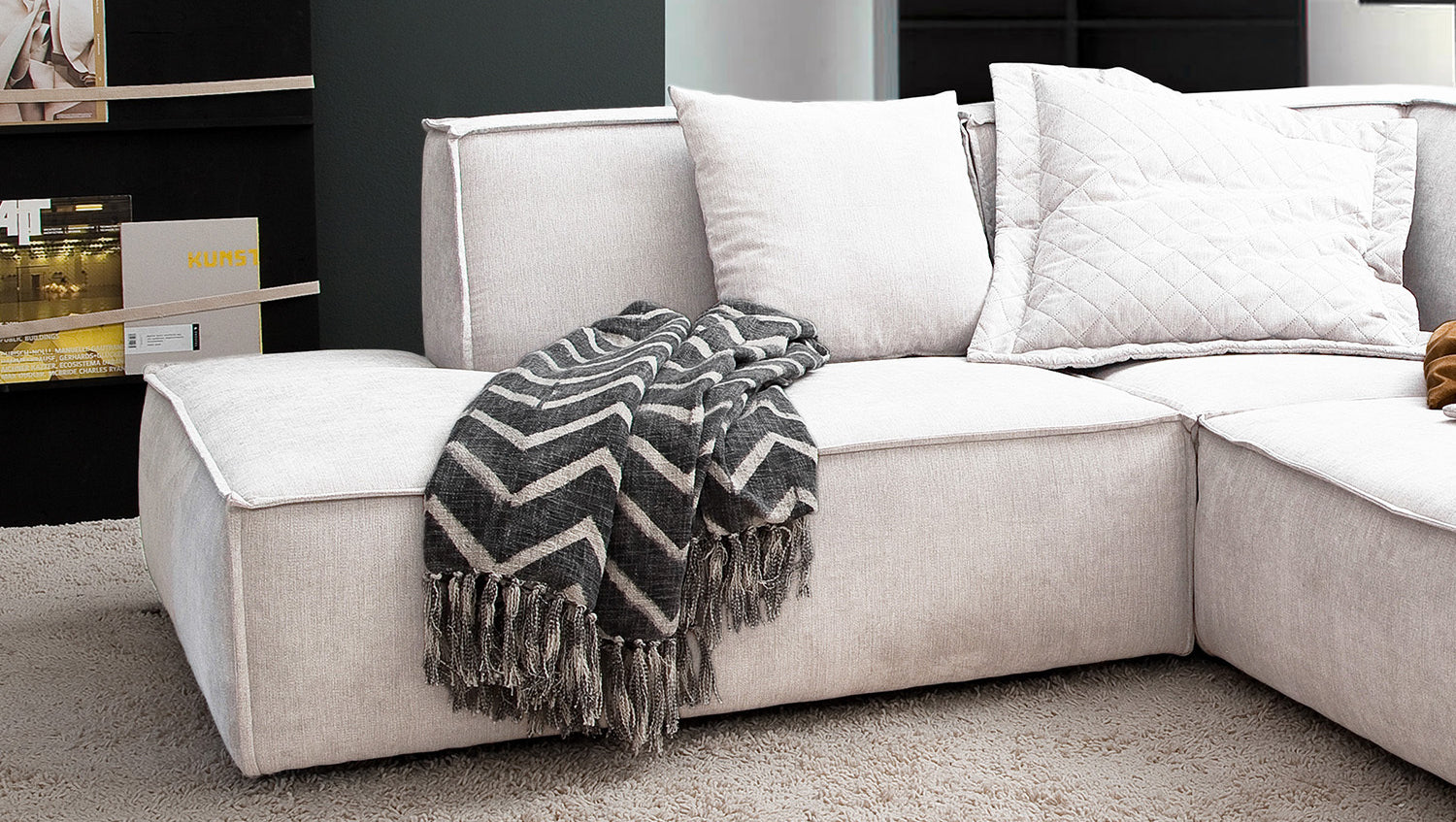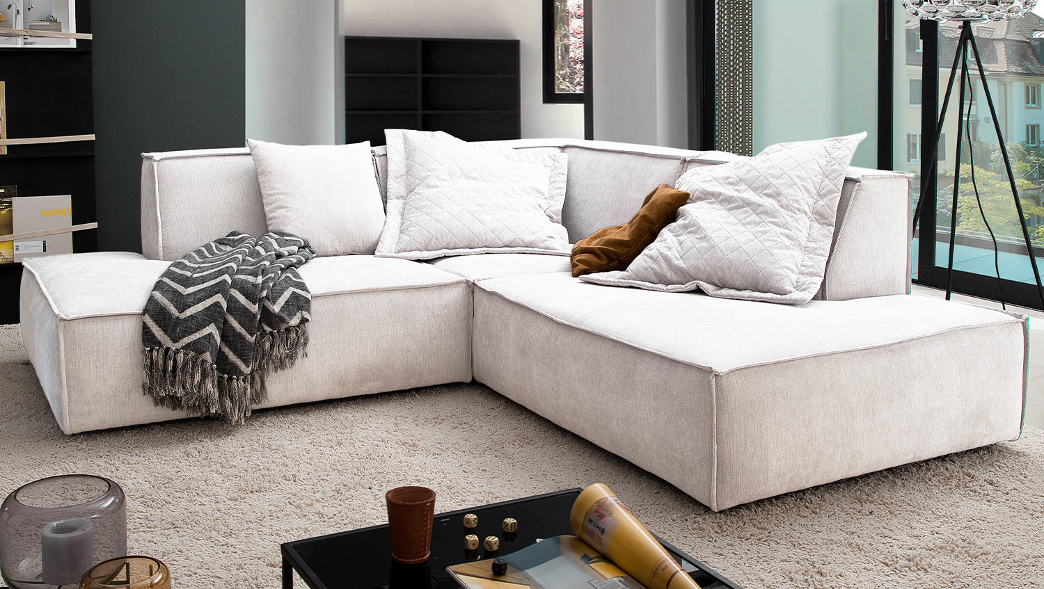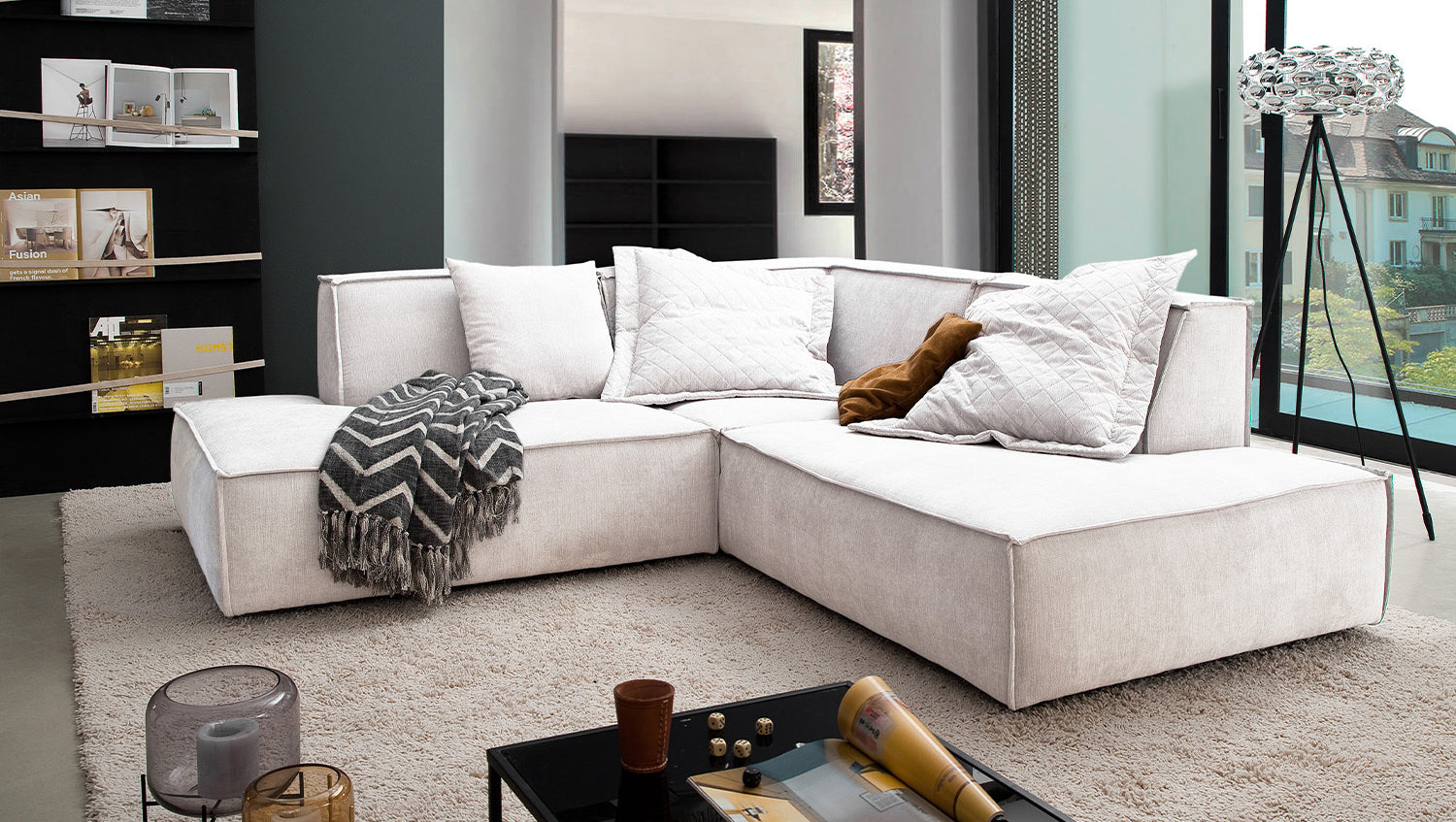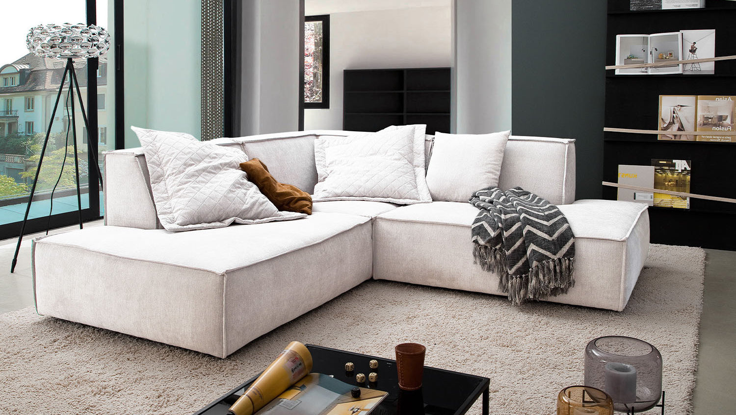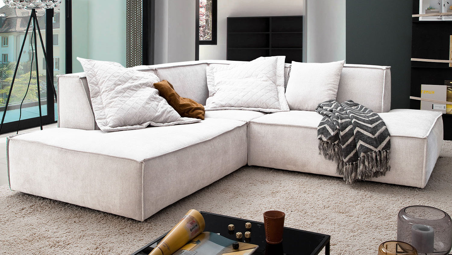 KAWOLA Sofa SAMU Ecksofa Stoff beige