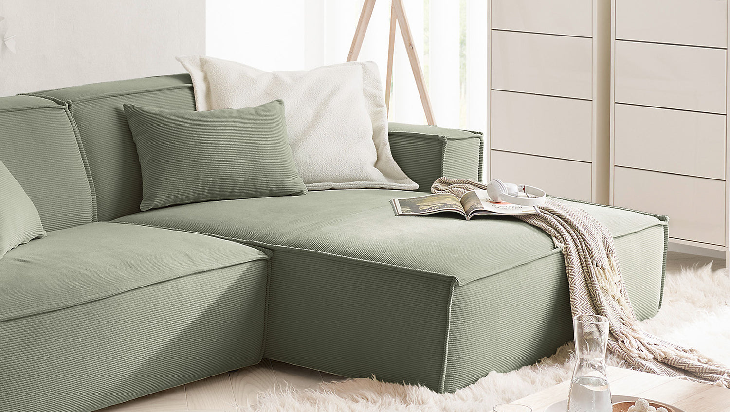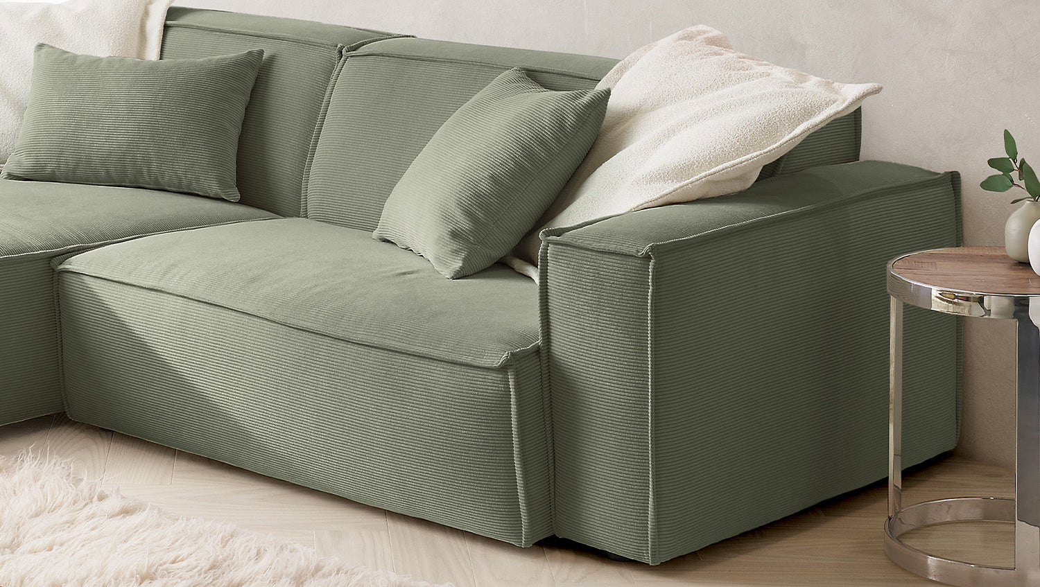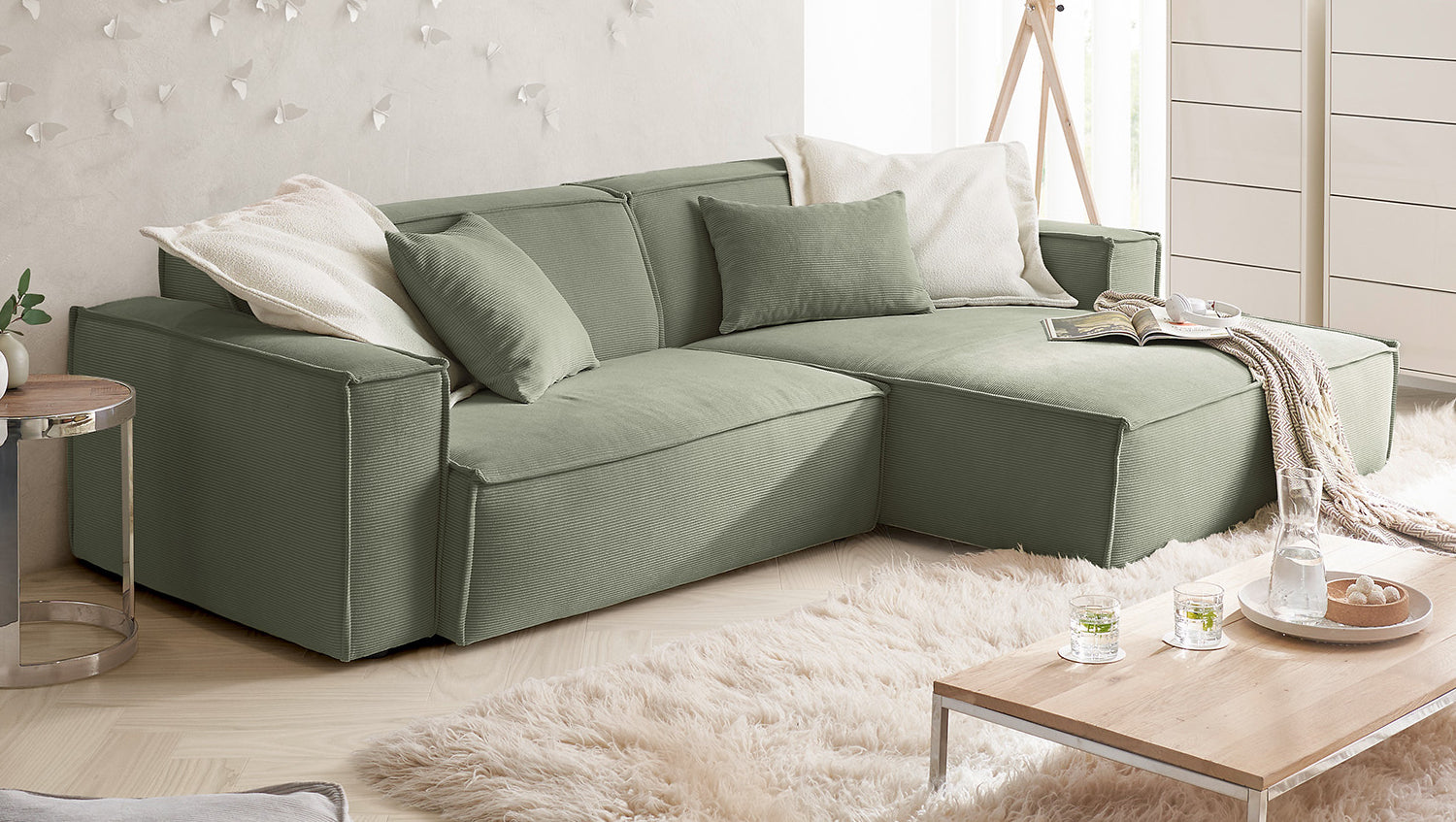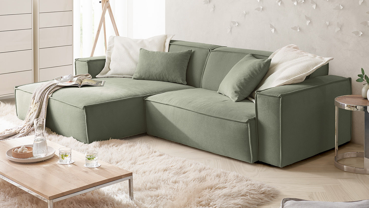 KAWOLA Sofa SAMU Ecksofa Feincord olivgrün