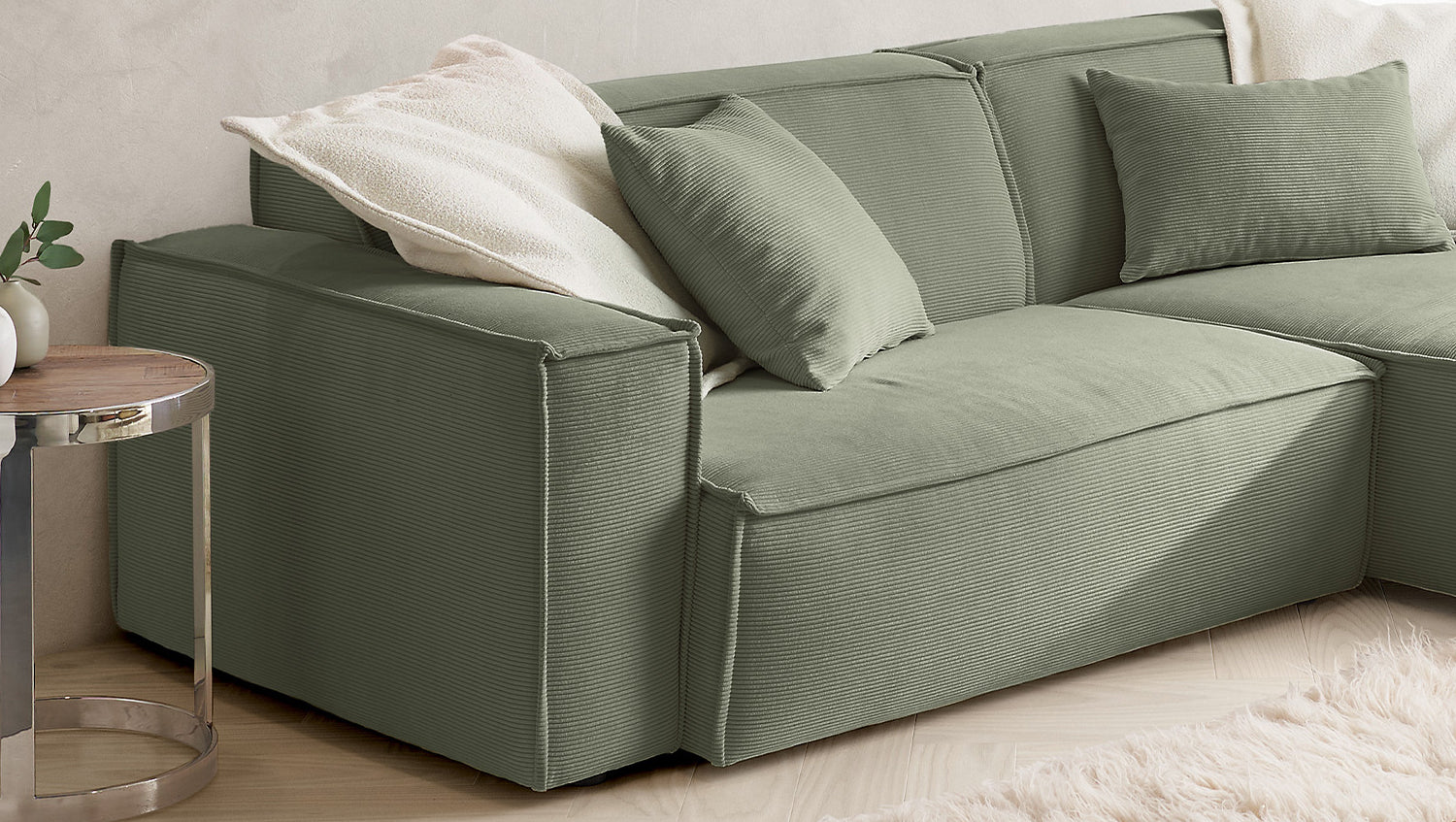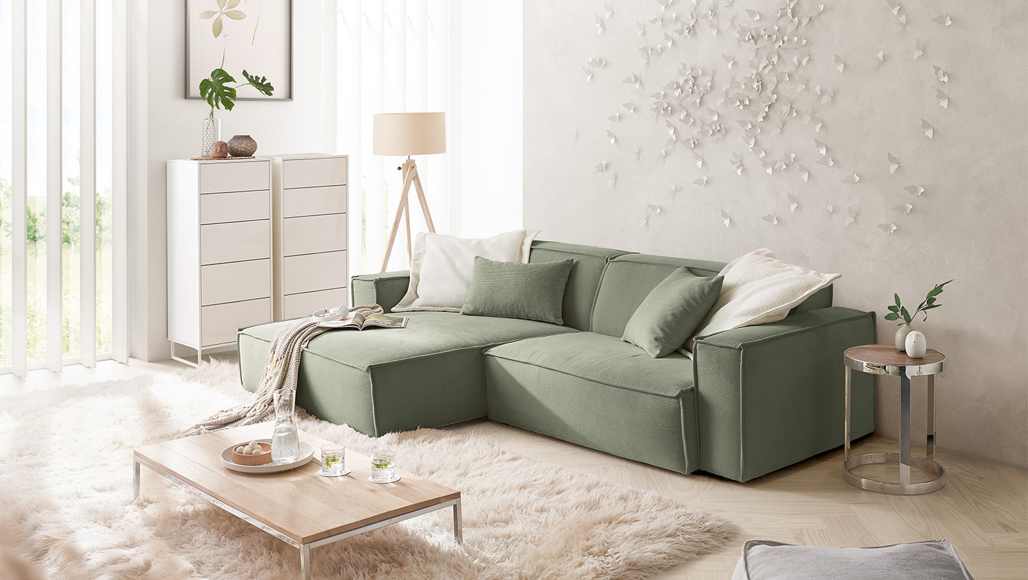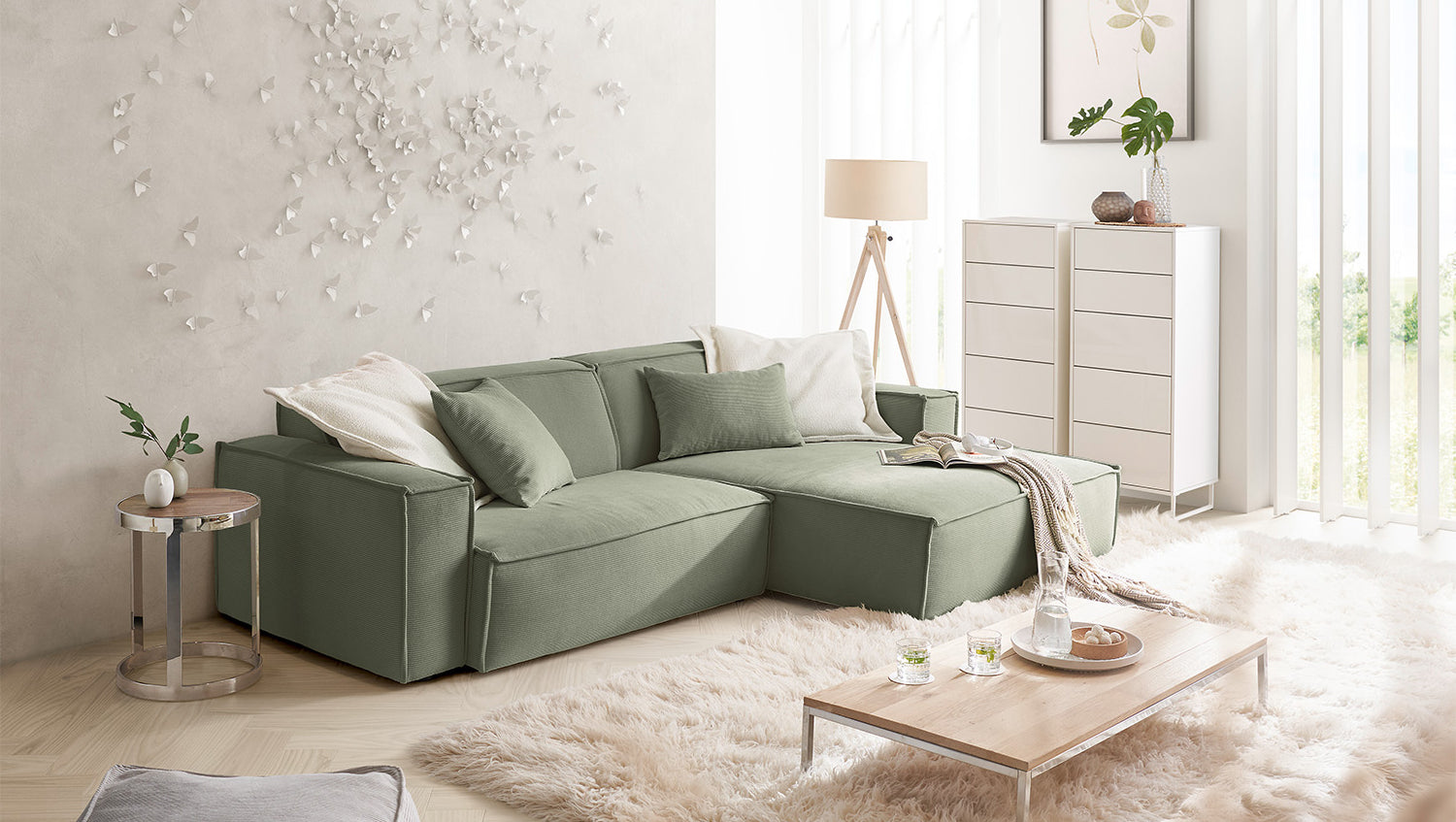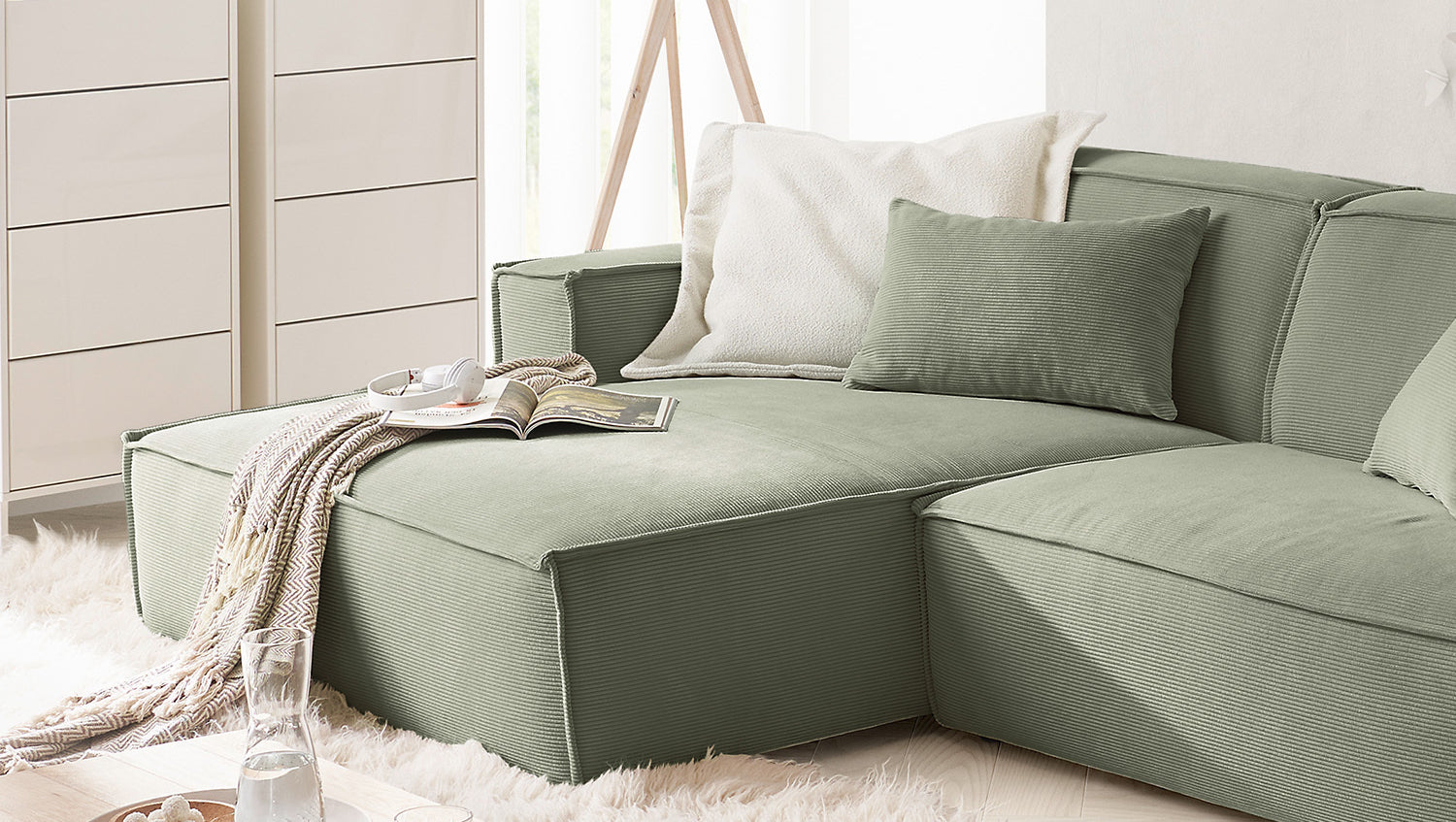 KAWOLA Sofa SAMU Ecksofa Feincord olivgrün