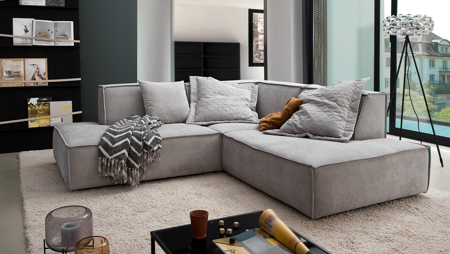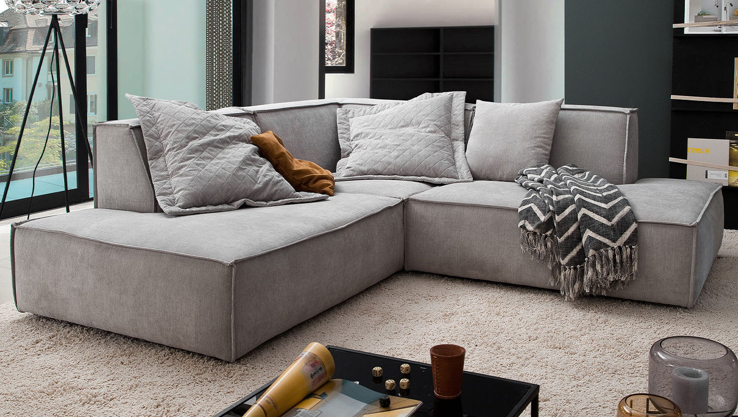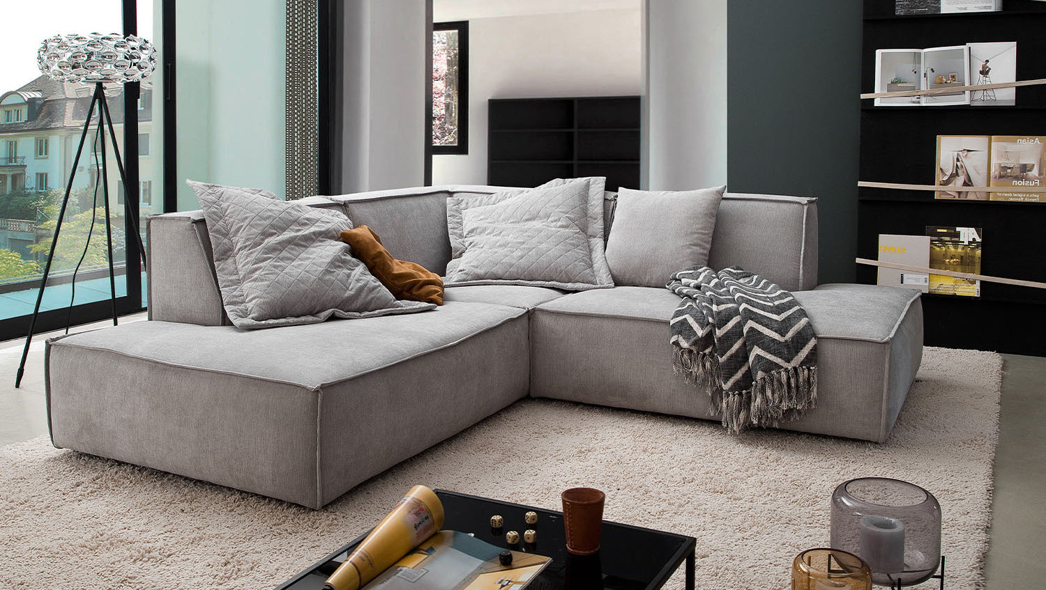 KAWOLA Sofa SAMU Ecksofa Stoff silber