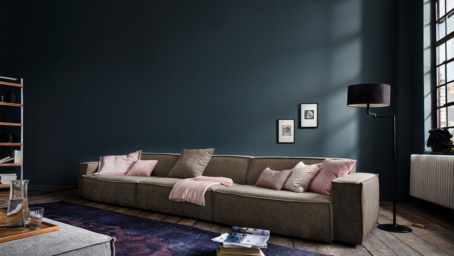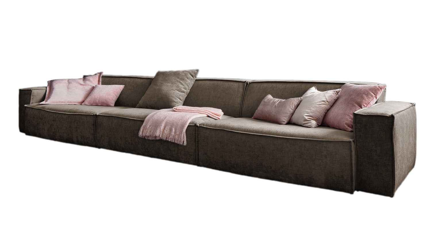Das KAWOLA Riesensofa SAMU besticht durch seinen hervorragenden Sitzkomfort, der durch den äußerst weichen und legeren Polsteraufbau zustande kommt und zum Verweilen und Entspannen einlädt. Die Polsterung passt sich der Körperform an; Sitzabdrücke sowie Wellenbildung der Bezüge sind warentypisch. Die ungewöhnliche Breite des "4,5-Sitzers" verleiht dem Sofa sein unverwechselbares Aussehen und bietet ausreichend Platz, um mit Freunden und Familie gemütliche Abende zu verbringen. Mit seinem zeitlosen Design fügt es sich nahtlos in jede Umgebung ein und macht auch frei im Raum stehend eine gute Figur. Wenn Sie Ihrem Wohnzimmer einen außergewöhnlichen Anstrich verleihen wollen, ist das Sofa SAMU definitiv das Richtige für Sie!
