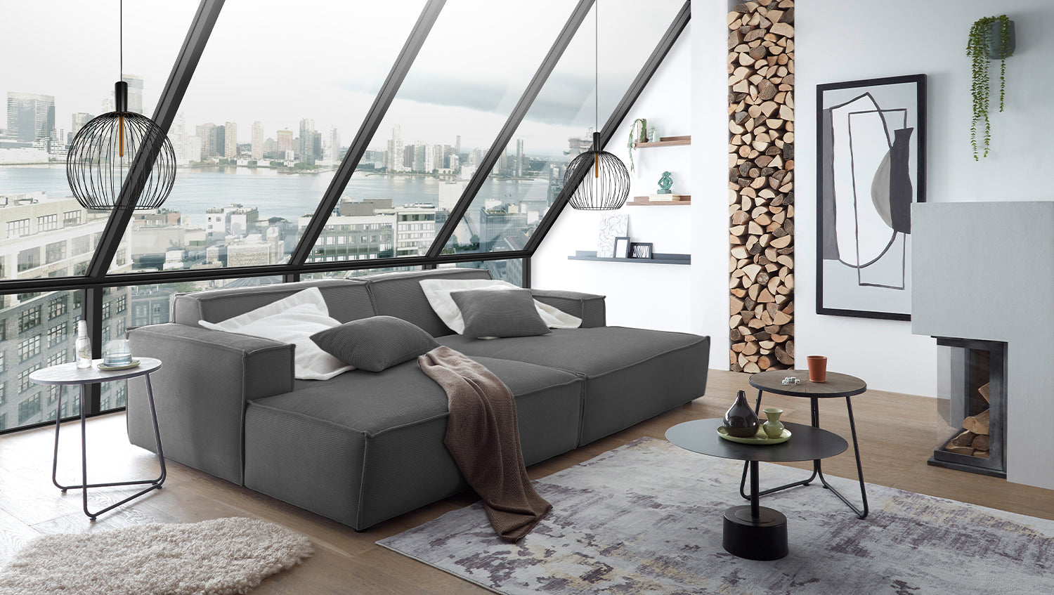 KAWOLA Big Sofa SAMU Feincord anthrazit