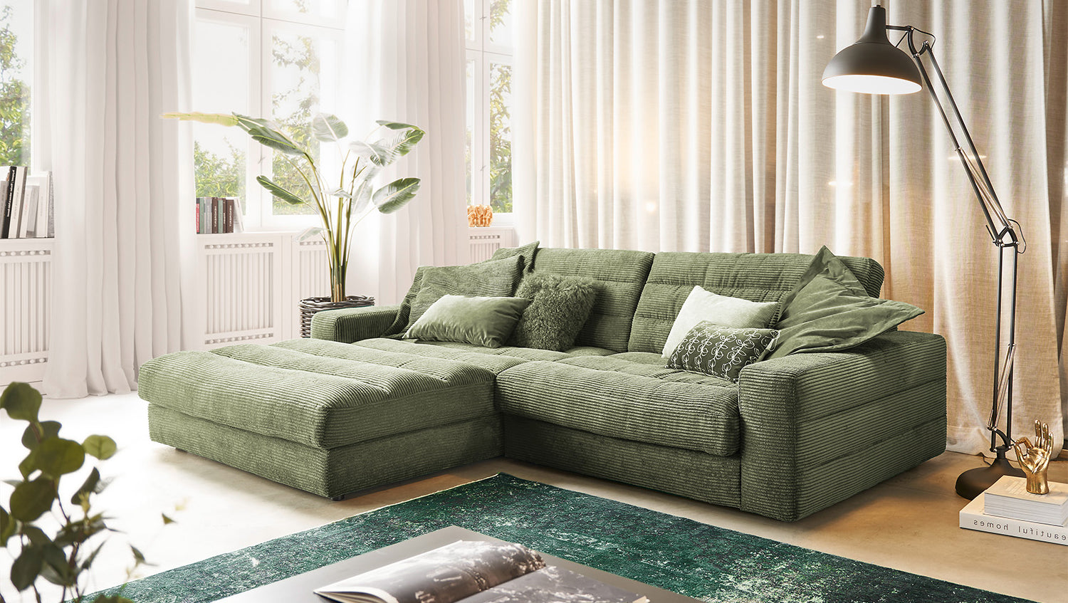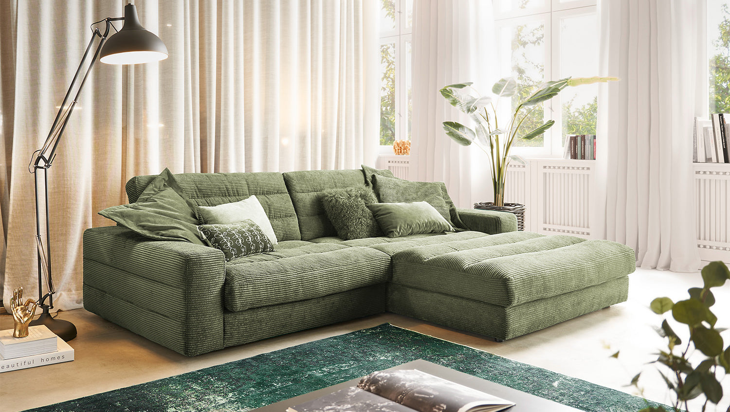 KAWOLA Sofa LANA Ecksofa Cord olivgrün