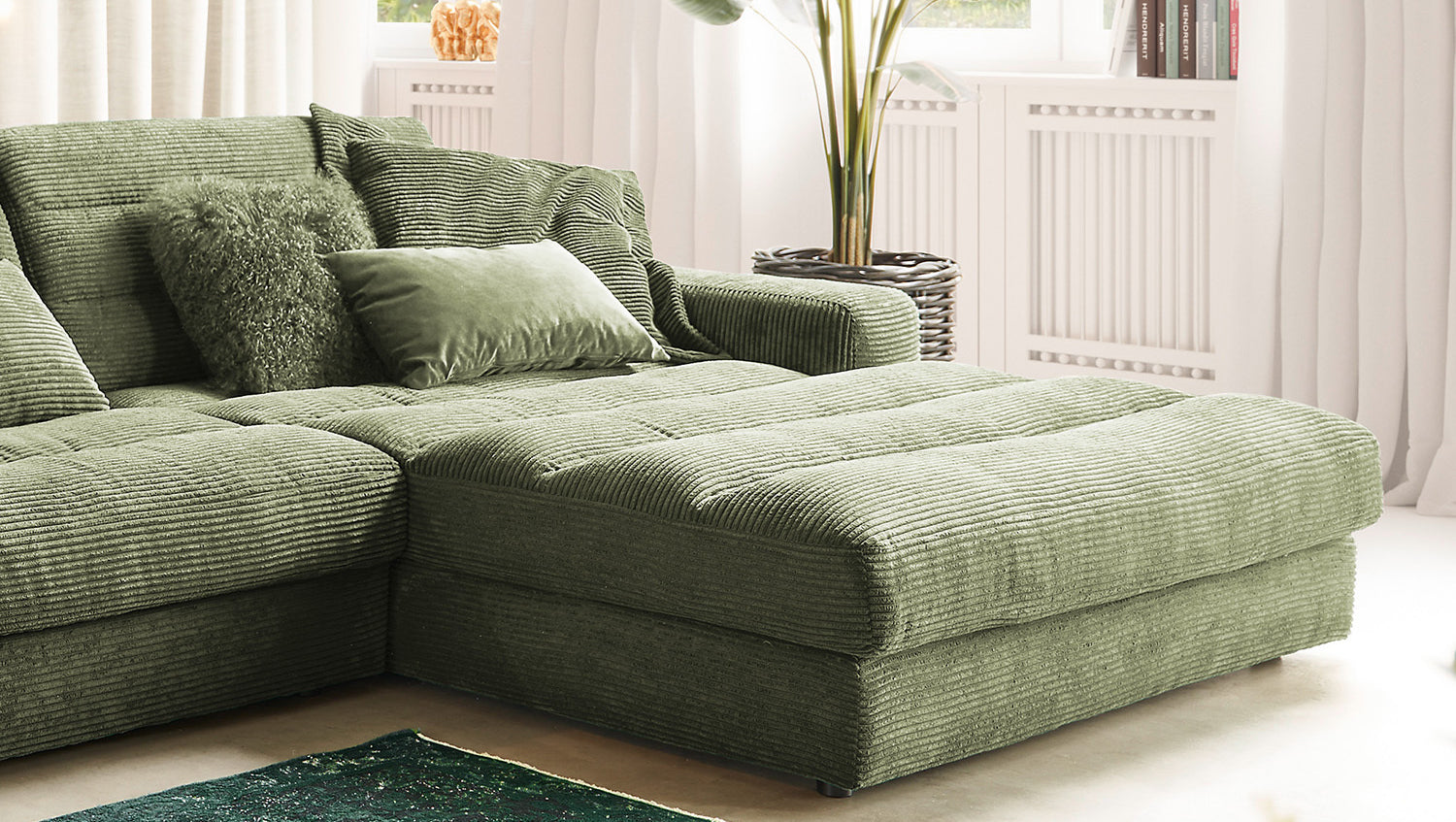KAWOLA Sofa LANA XL Ecksofa Cord olivgrün