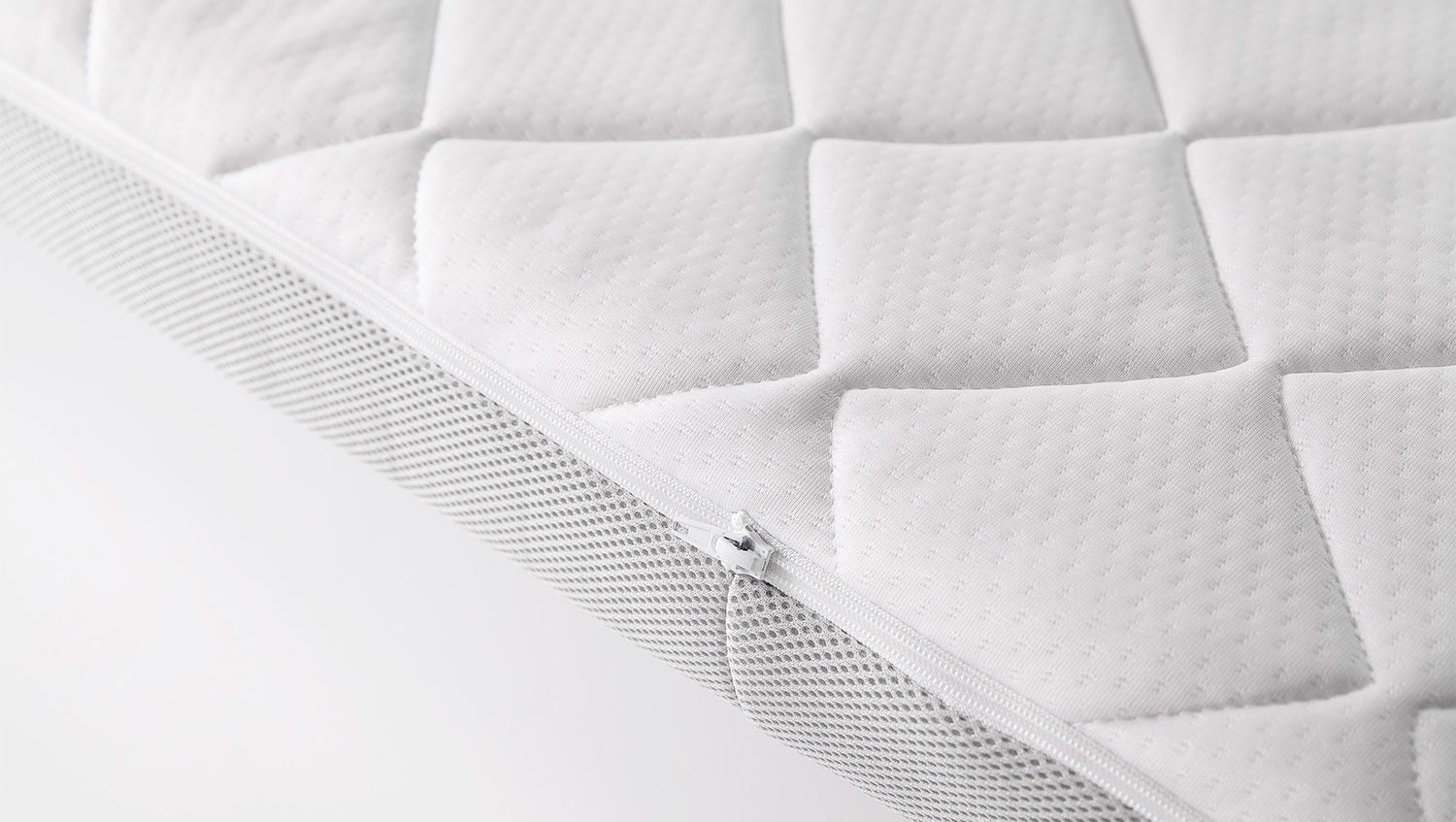 Der KAWOLA Sence-ice Karo-Klima-Topper SOLO hat einen hochwertigen, durchgehenden Kaltschaumkern mit klimaregulierendem und hautsympathischem Bezug. Eine Seite ist kühlend, eine Seite ist wärmend. Der feuchtigkeitsregulierende und somit transpirationsmindernde Bezug hat einen umlaufenden Keder und ein Klimaband. Er ist waschbar bei 60 C° und nicht für den Trockner geeignet.