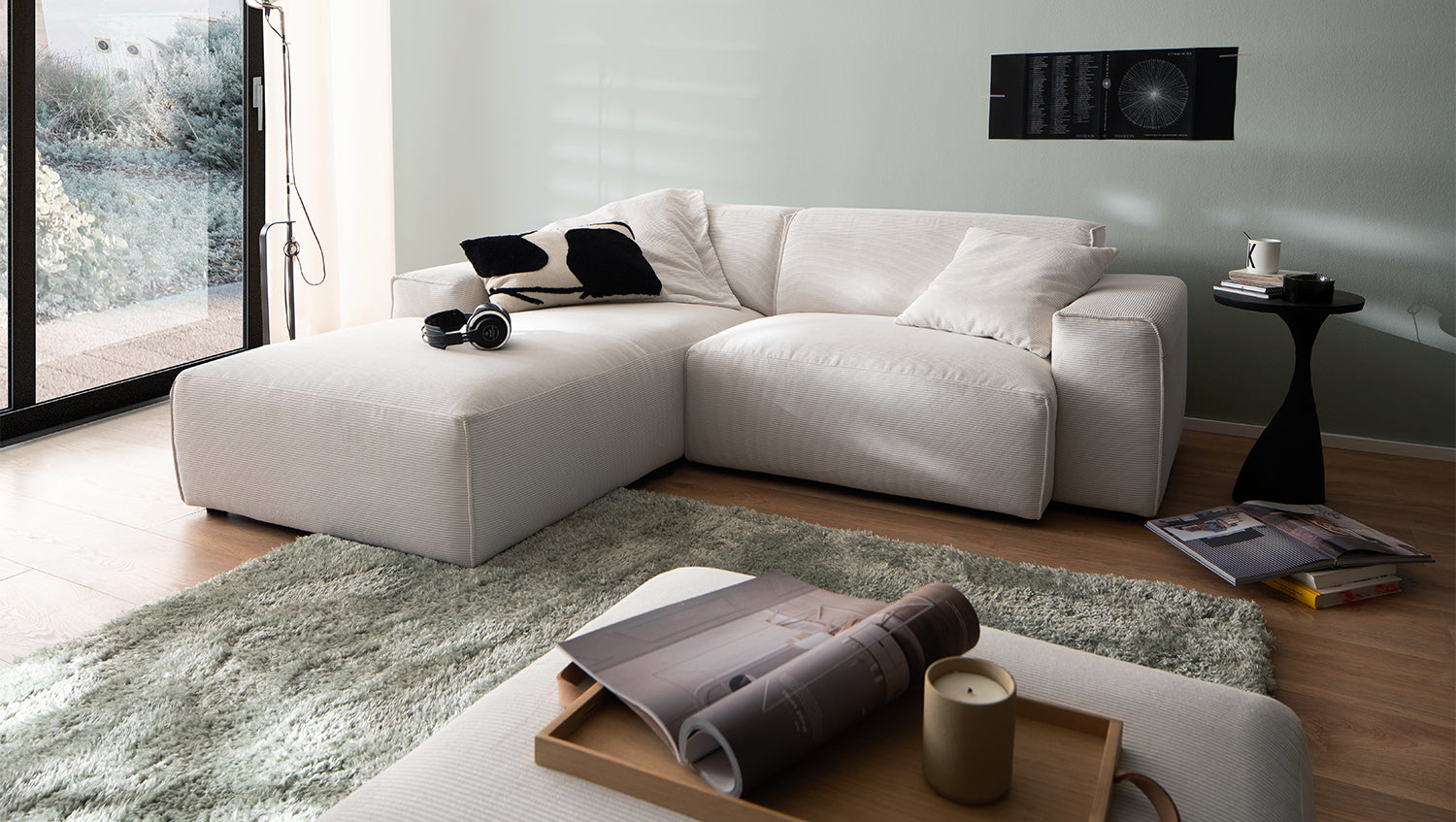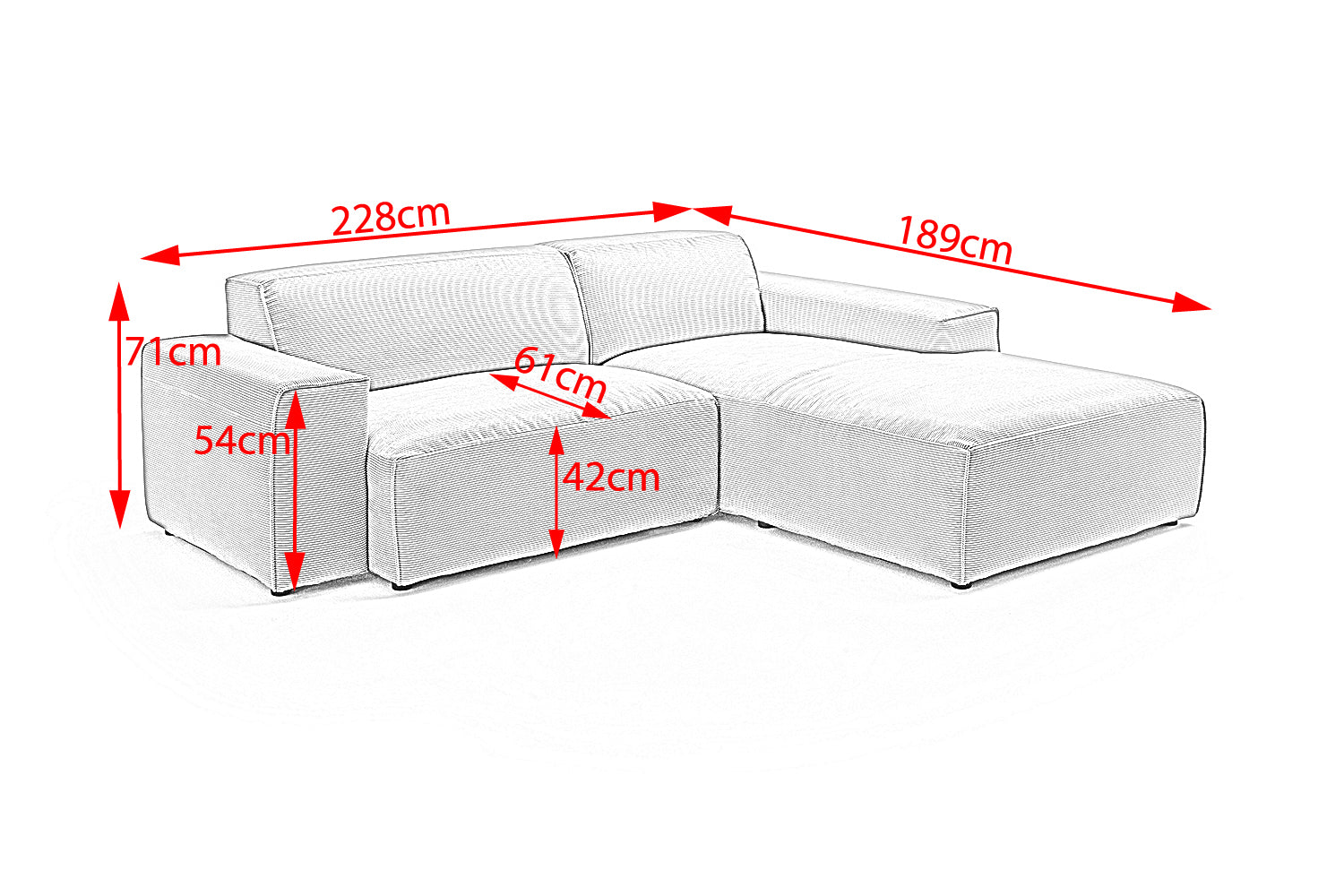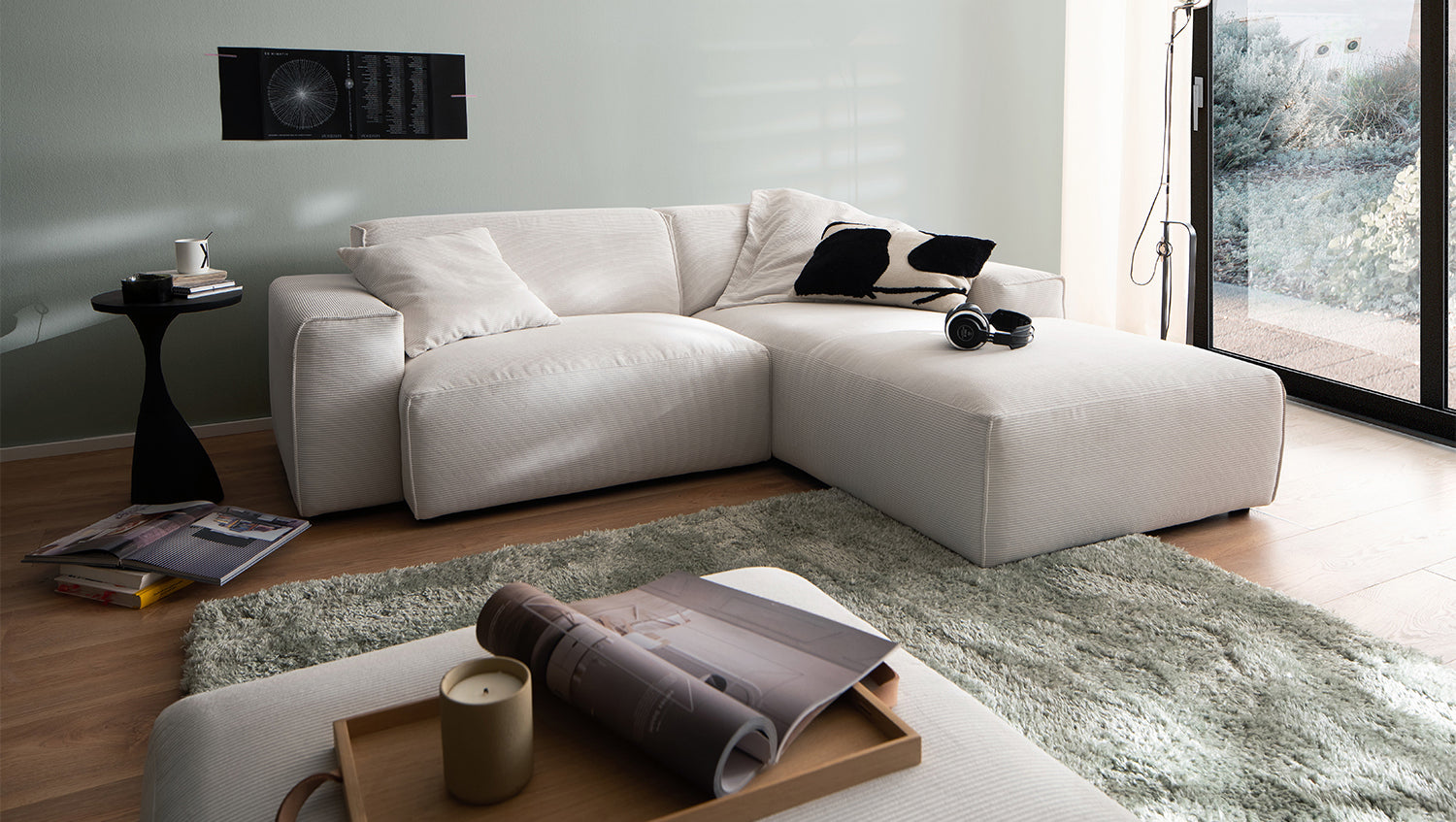 Entspannen Sie sich auf dem bequemen KAWOLA Ecksofa RANI mit seinem gemütlichen Feincord-Bezug. Das robuste Gestell aus Massivholz sorgt für Stabilität und Langlebigkeit, während die weichen Sitzflächen und Rückenlehnen mit ihrer Polsterung aus Kaltschaum für optimalen Komfort sorgen. Der Bezug aus angesagtem Feincord ist nicht nur äußerst strapazierfähig, sondern verleiht dem Sofa auch einen modernen Look und eine angenehme Haptik. Dank des zeitlosen Designs lässt sich das Sofa problemlos in jedes Wohnambiente integrieren. Es ist die perfekte Wahl für jeden, der auf der Suche nach einem stilvollen und komfortablen Sofa für das Wohnzimmer ist. Machen Sie sich bereit, sich auf unserem Ecksofa RANI zurückzulehnen und das Leben zu genießen!