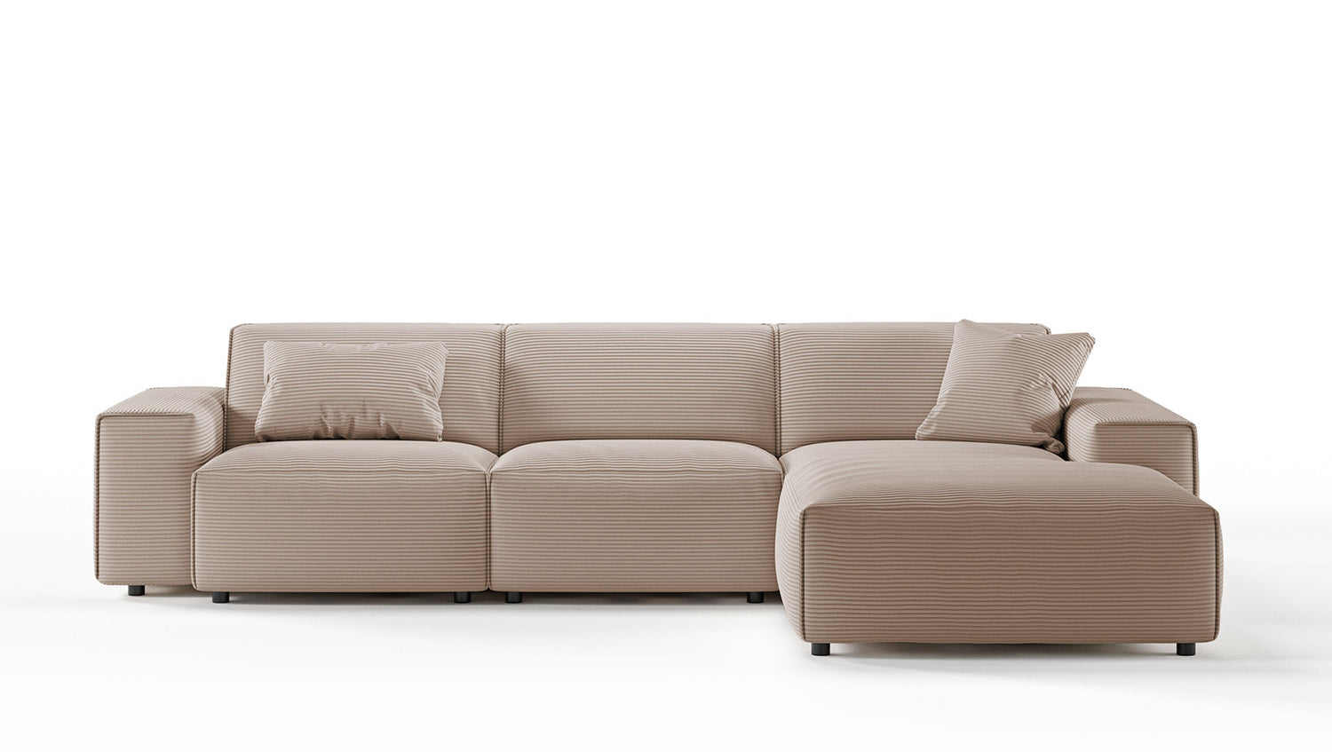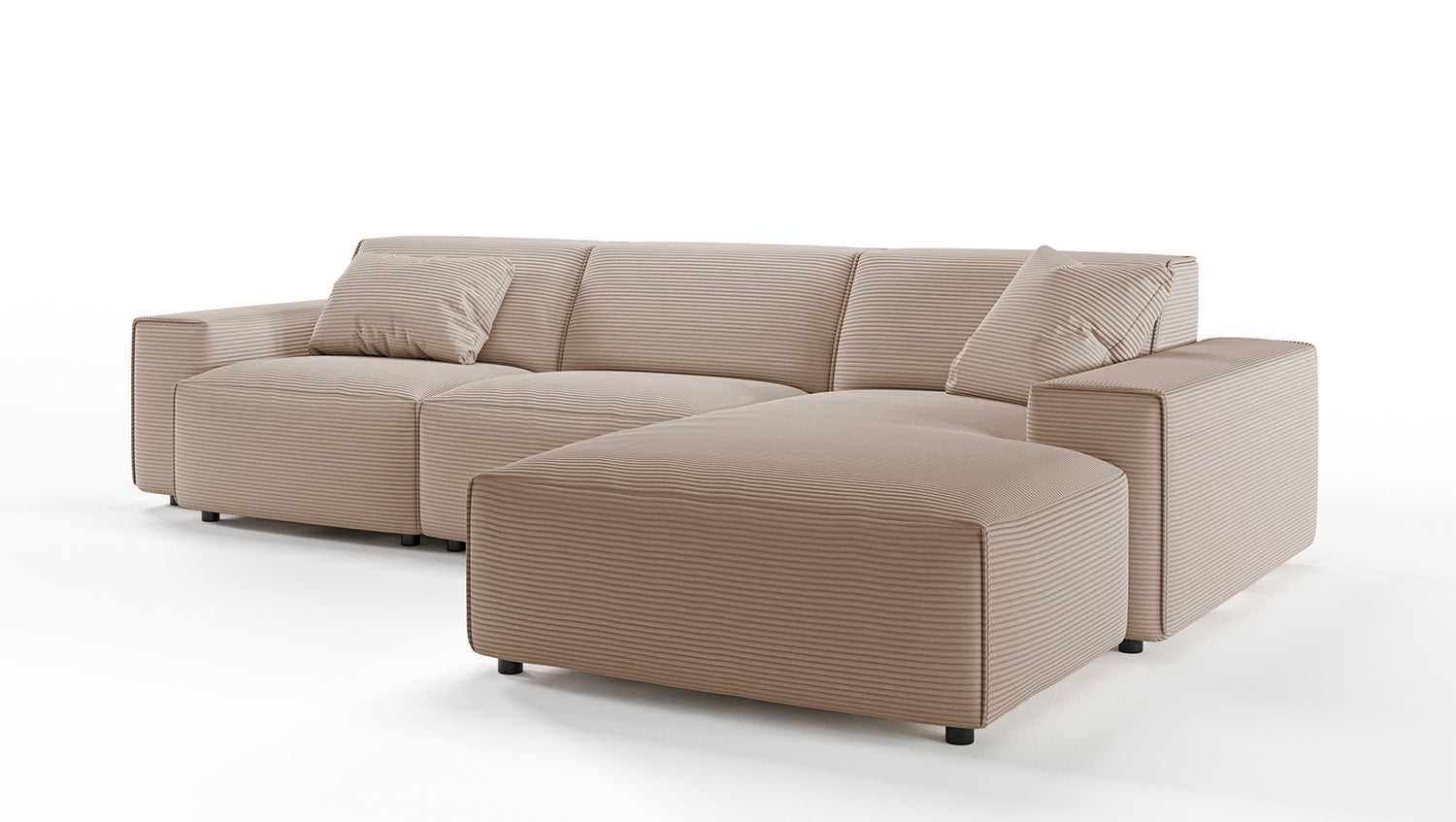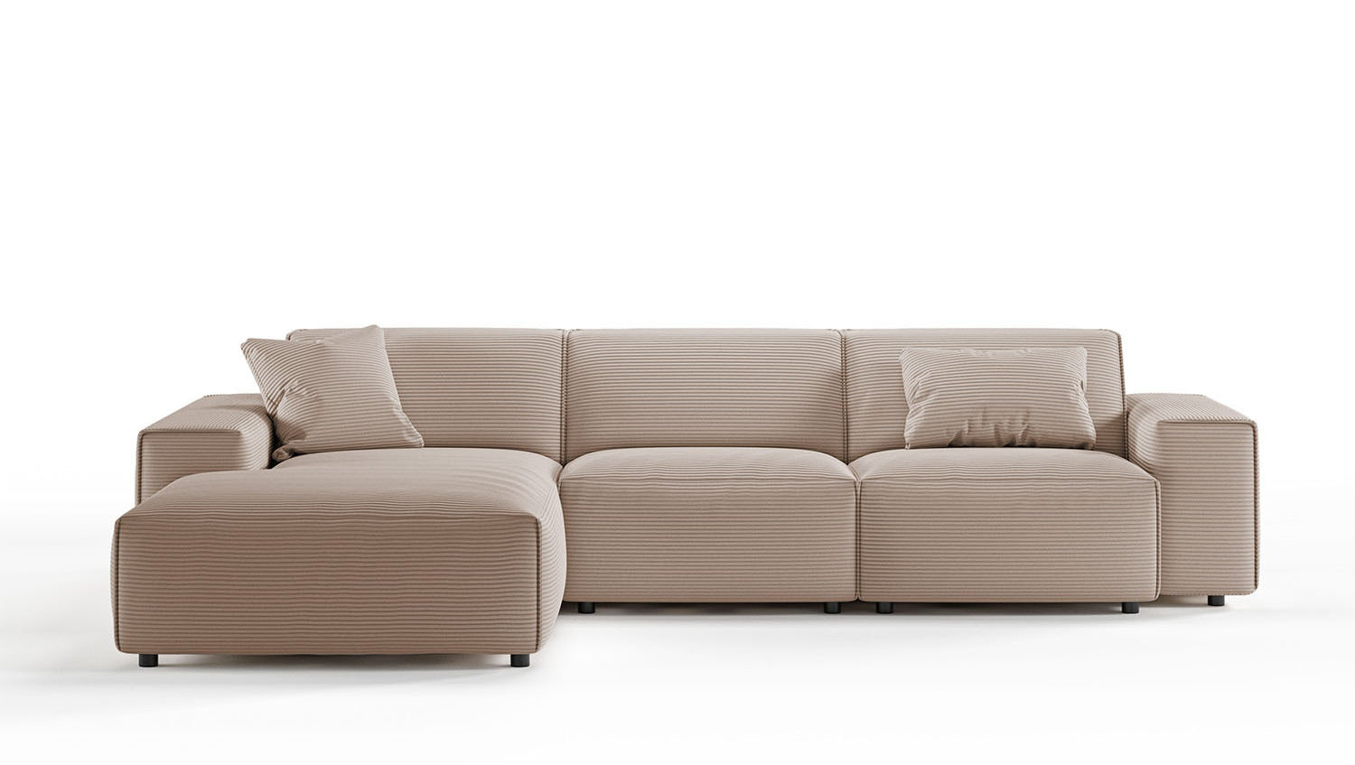 Entspannen Sie sich auf dem bequemen KAWOLA Ecksofa RANI mit seinem gemütlichen Cordbezug. Das robuste Gestell aus Massivholz sorgt für Stabilität und Langlebigkeit, während die weichen Sitzflächen und Rückenlehnen mit ihrer Polsterung aus Kaltschaum für optimalen Komfort sorgen. Der Bezug aus angesagtem Cord-Stoff ist nicht nur äußerst strapazierfähig, sondern verleiht dem Sofa auch einen modernen Look und eine angenehme Haptik. Dank des zeitlosen Designs lässt sich das Sofa problemlos in jedes Wohnambiente integrieren. Es ist die perfekte Wahl für jeden, der auf der Suche nach einem stilvollen und komfortablen Sofa für das Wohnzimmer ist. Machen Sie sich bereit, sich auf unserem Ecksofa RANI zurückzulehnen und das Leben zu genießen! Pflegehinweise Cord: Sie sollten das Sofa regelmäßig absaugen, vorzugsweise mit einem weichen Bürstenaufsatz. Verwenden Sie ein mildes Reinigungsmittel und ein feuchtes Tuch, um Flecken zu entfernen. Verwenden Sie nur sehr wenig Wasser bei der Reinigung und lassen Sie den Bezug vor Benutzung vollständig trocknen. Vermeiden Sie direktes Sonnenlicht, um Ausbleichung zu verhindern.