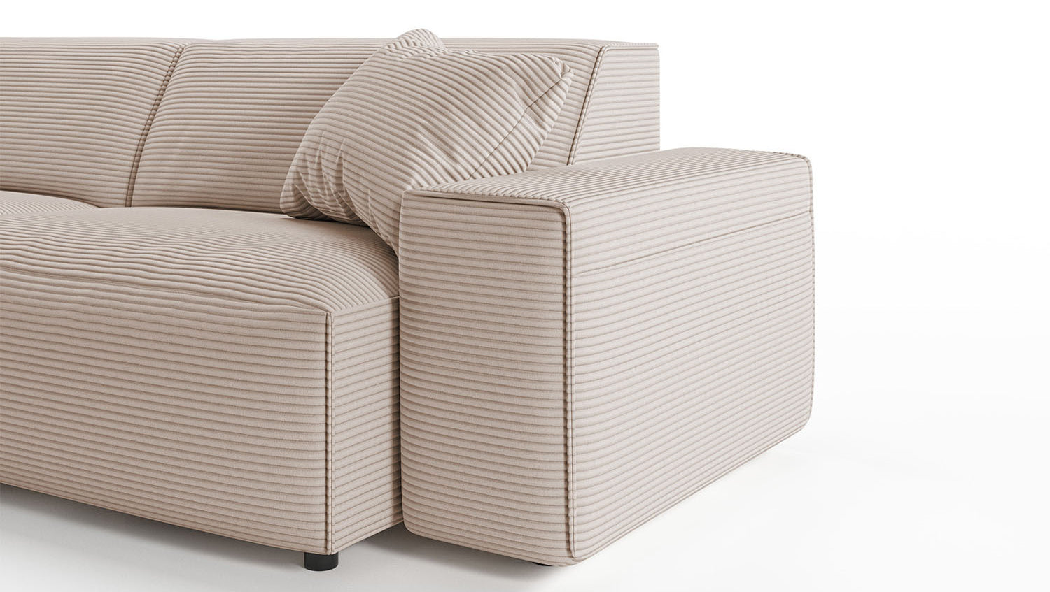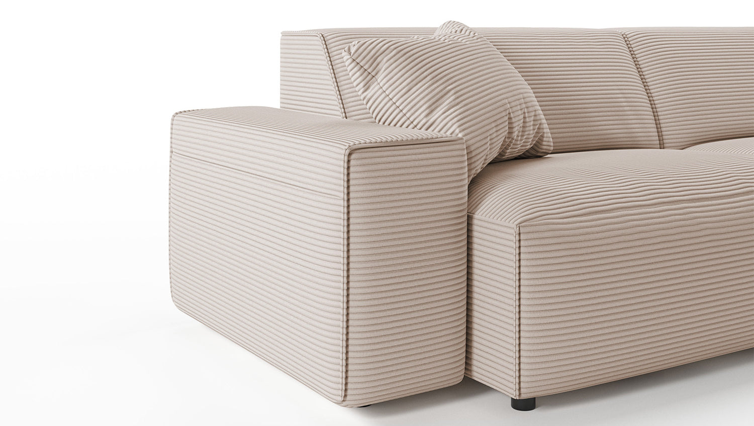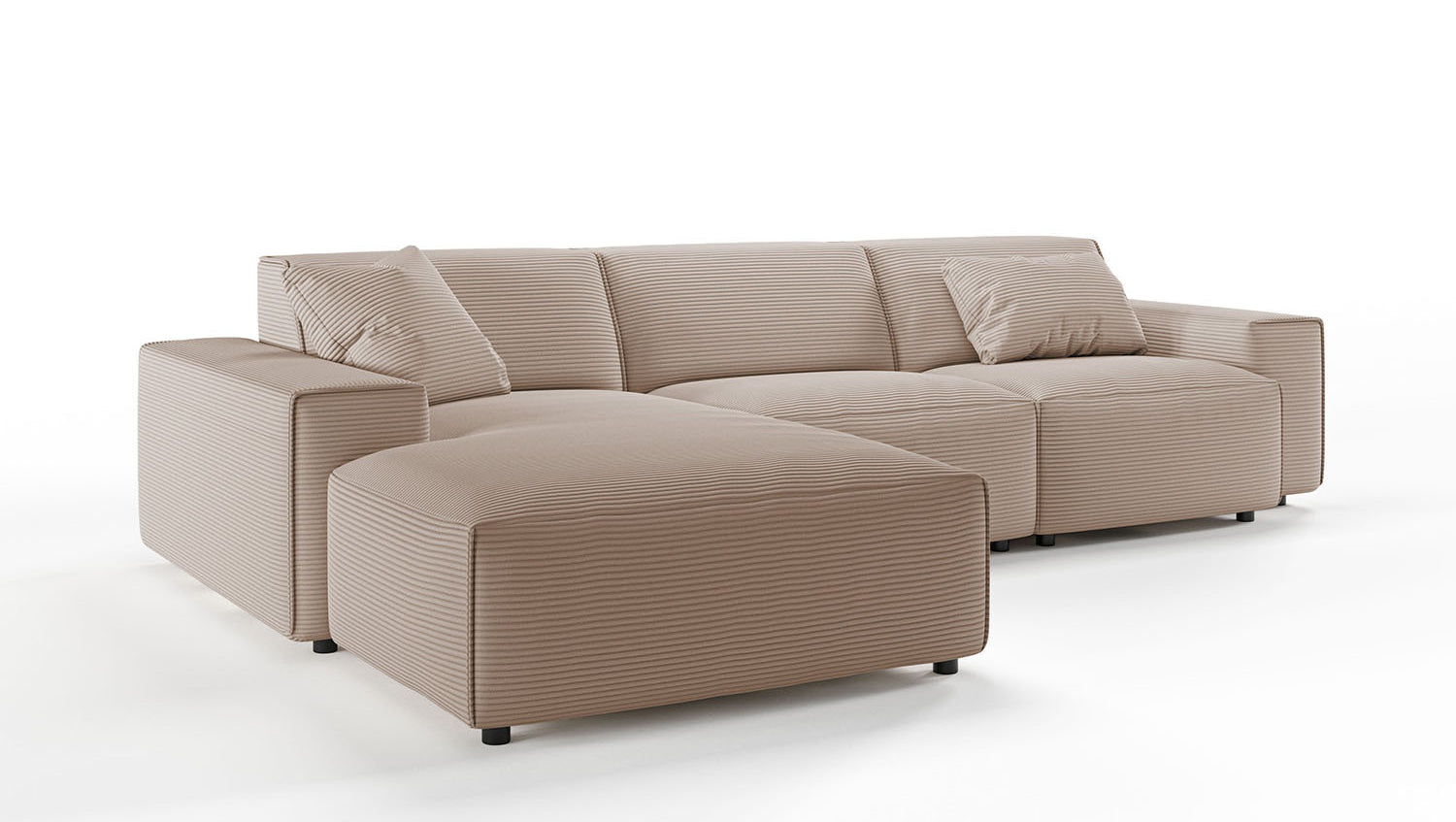 Entspannen Sie sich auf dem bequemen KAWOLA Ecksofa RANI mit seinem gemütlichen Cordbezug. Das robuste Gestell aus Massivholz sorgt für Stabilität und Langlebigkeit, während die weichen Sitzflächen und Rückenlehnen mit ihrer Polsterung aus Kaltschaum für optimalen Komfort sorgen. Der Bezug aus angesagtem Cord-Stoff ist nicht nur äußerst strapazierfähig, sondern verleiht dem Sofa auch einen modernen Look und eine angenehme Haptik. Dank des zeitlosen Designs lässt sich das Sofa problemlos in jedes Wohnambiente integrieren. Es ist die perfekte Wahl für jeden, der auf der Suche nach einem stilvollen und komfortablen Sofa für das Wohnzimmer ist. Machen Sie sich bereit, sich auf unserem Ecksofa RANI zurückzulehnen und das Leben zu genießen! Pflegehinweise Cord: Sie sollten das Sofa regelmäßig absaugen, vorzugsweise mit einem weichen Bürstenaufsatz. Verwenden Sie ein mildes Reinigungsmittel und ein feuchtes Tuch, um Flecken zu entfernen. Verwenden Sie nur sehr wenig Wasser bei der Reinigung und lassen Sie den Bezug vor Benutzung vollständig trocknen. Vermeiden Sie direktes Sonnenlicht, um Ausbleichung zu verhindern.