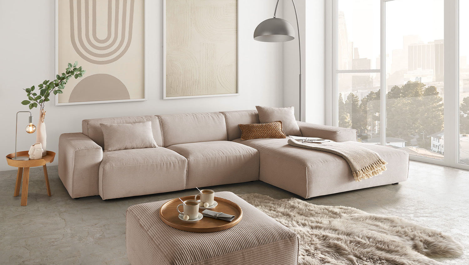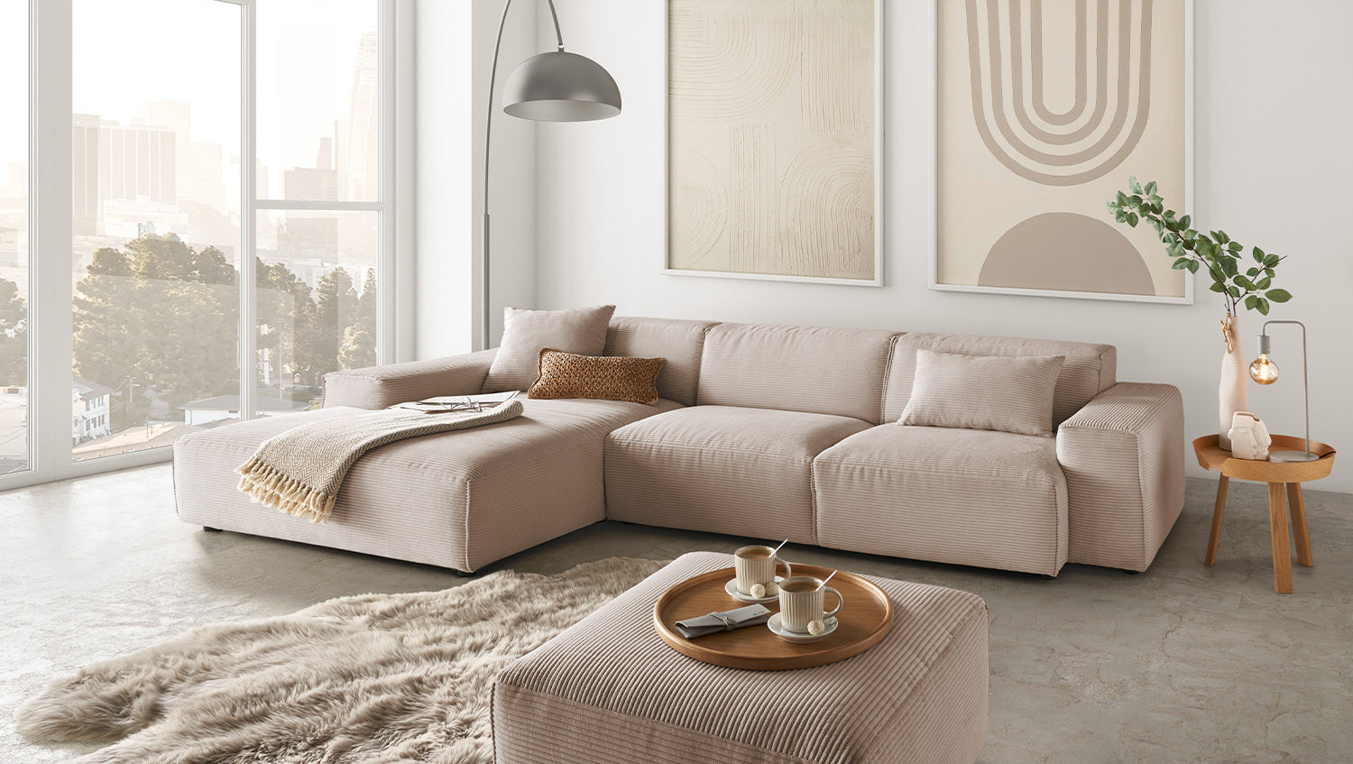 KAWOLA Sofa RANI Ecksofa Cord taupe