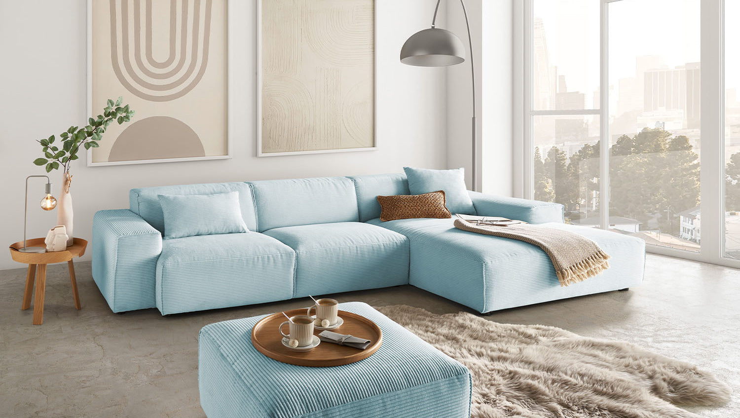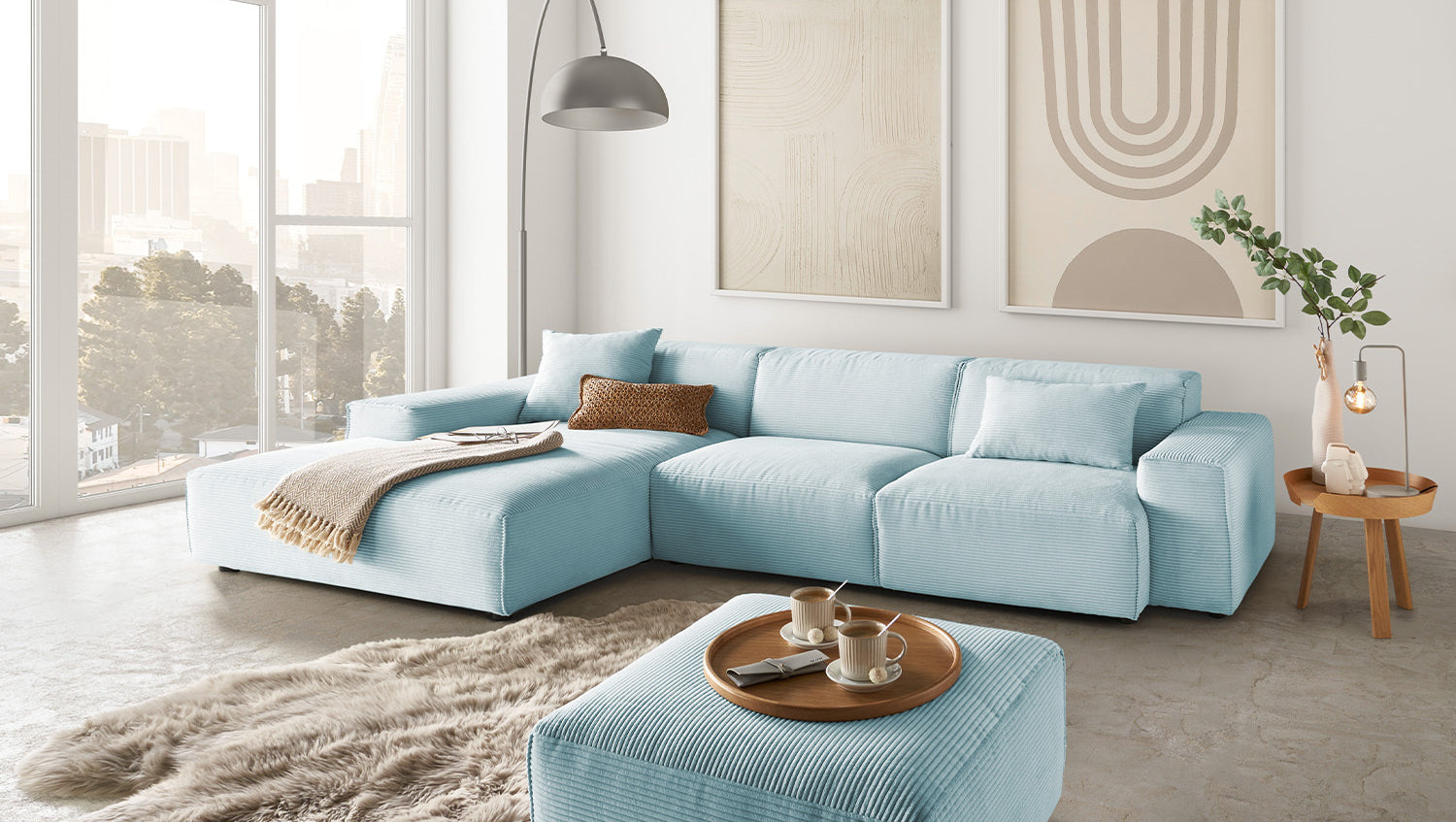 KAWOLA Sofa RANI Ecksofa Cord hellblau