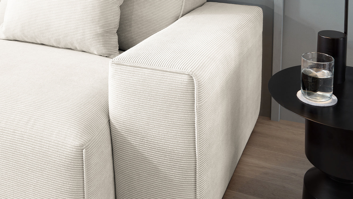 Entspannen Sie sich auf dem bequemen KAWOLA 3-Sitzer RANI mit seinem gemütlichen Feincord-Bezug. Das robuste Gestell aus Massivholz sorgt für Stabilität und Langlebigkeit, während die weichen Sitzflächen und Rückenlehnen mit ihrer Polsterung aus Kaltschaum für optimalen Komfort sorgen. Der Bezug aus angesagtem Feincord ist nicht nur äußerst strapazierfähig, sondern verleiht dem Sofa auch einen modernen Look und eine angenehme Haptik. Es ist die perfekte Wahl für jeden, der auf der Suche nach einem stilvollen und komfortablen Sofa für das Wohnzimmer ist. Machen Sie sich bereit, sich auf unserem 3-Sitzer RANI zurückzulehnen und das Leben zu genießen!