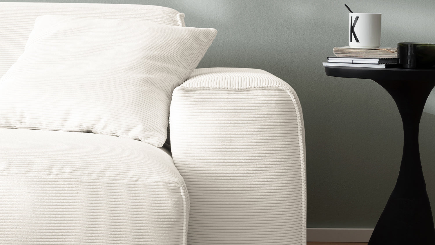 KAWOLA Sofa RANI 3-Sitzer Feincord weiß