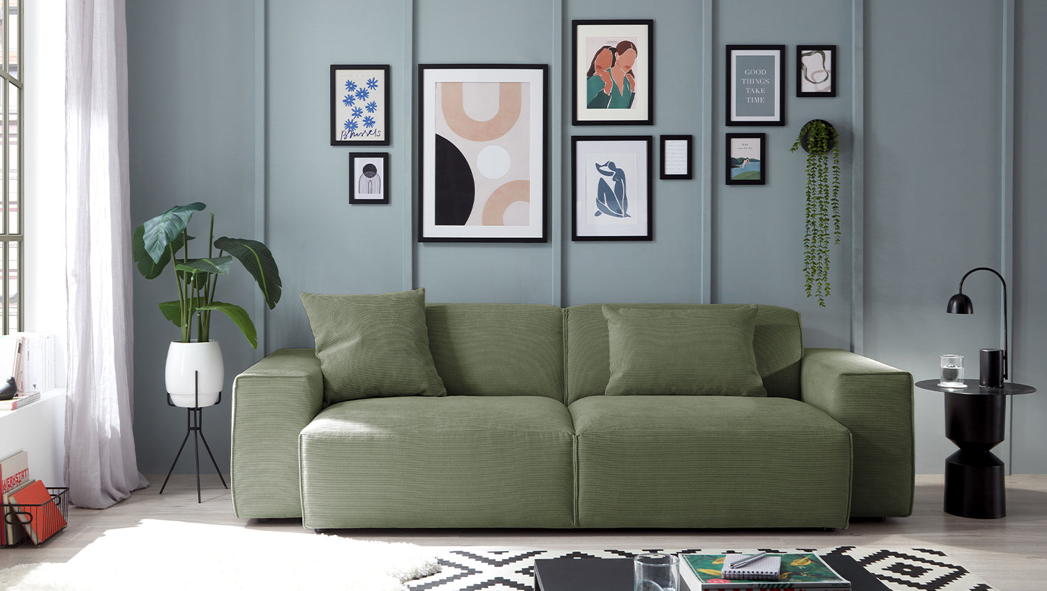 KAWOLA Sofa RANI 3-Sitzer Feincord olivgrün