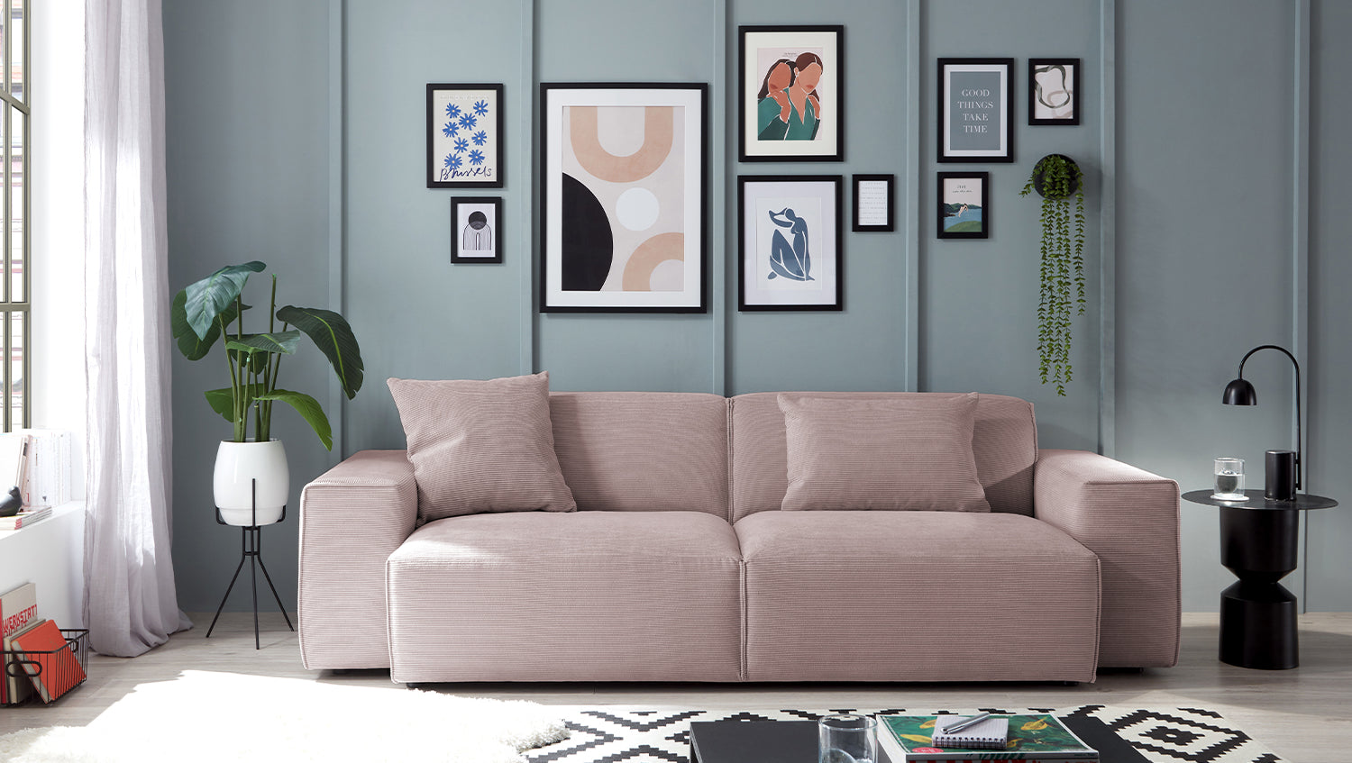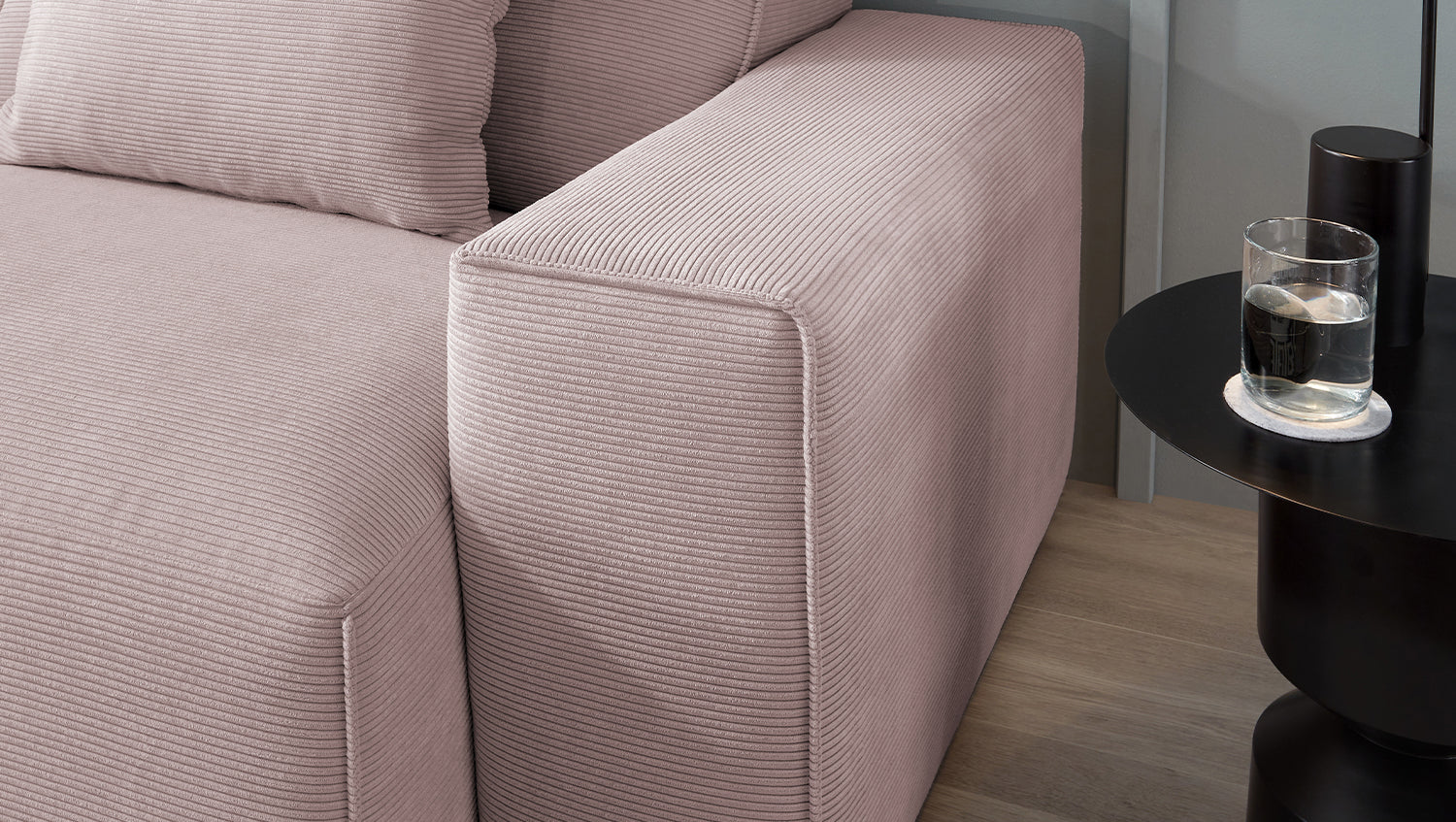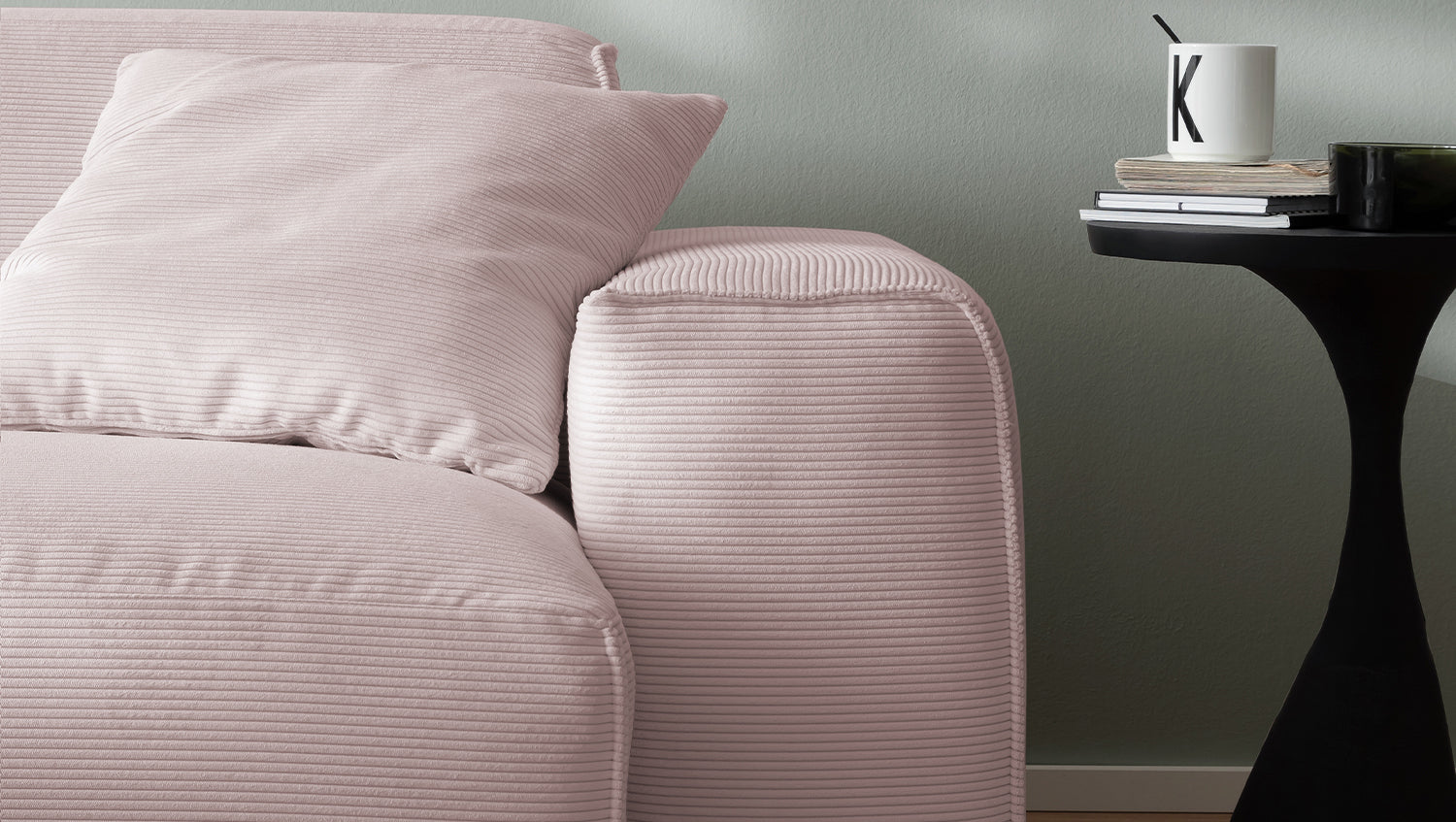 KAWOLA Sofa RANI 3-Sitzer Feincord rosa