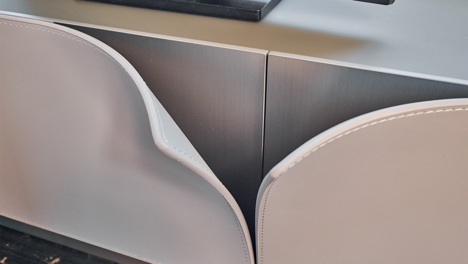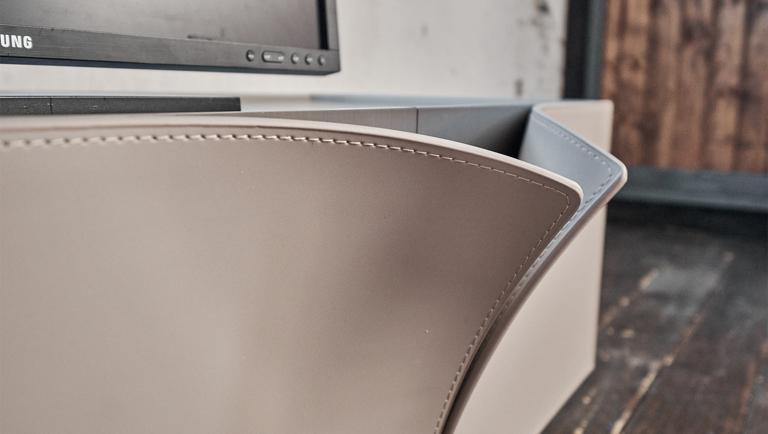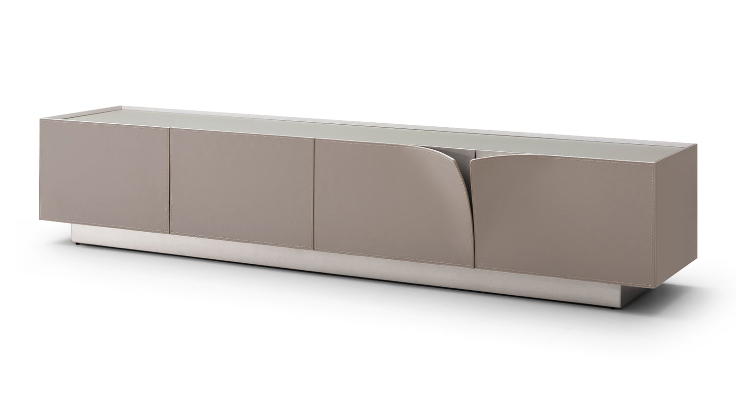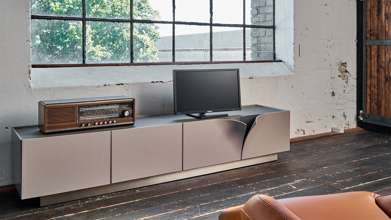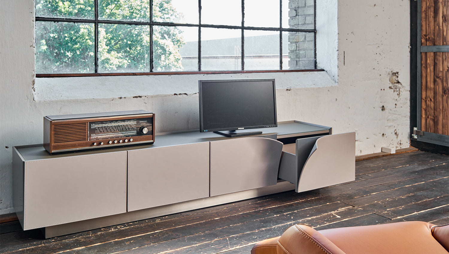 KAWOLA Lowboard EMMA TV-Board Kunstleder grau Fuß Edelstahl gebürstet
