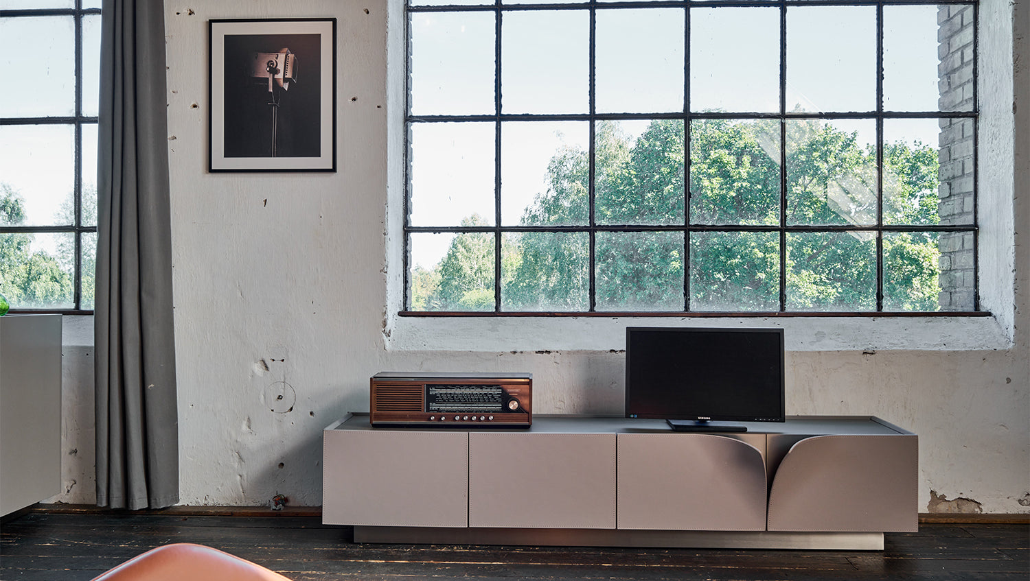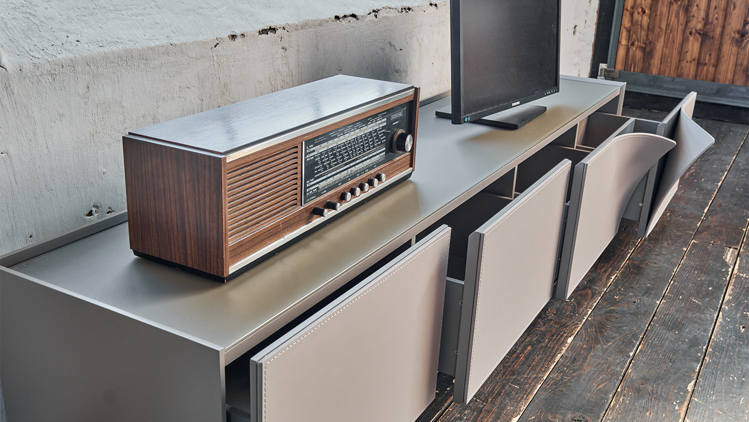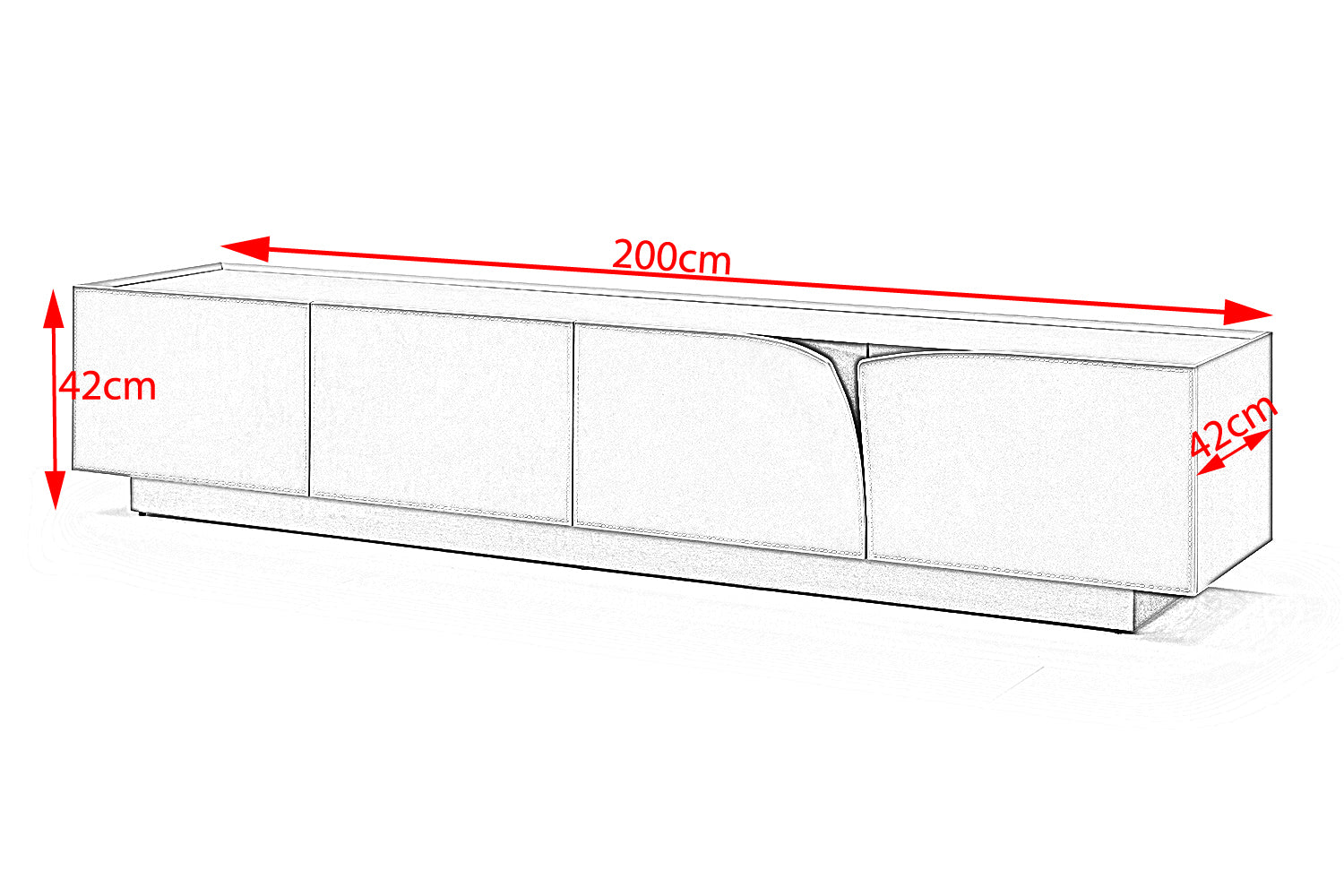 Entdecken Sie das moderne Lowboard EMMA von KAWOLA - ein stilvolles Möbelstück mit urbanem Loft-Flair. Das graue TV-Board fügt sich perfekt in moderne Wohnzimmer ein. Mit einer Höhe von 42 cm, Tiefe von 42 cm und Breite von 200 cm bietet es großzügigen Stauraum für Multimedia-Geräte, DVDs und mehr. Die Ablagefläche ist für Fernseher bis zu 90 Zoll ausgelegt, für ein beeindruckendes Seherlebnis. Das Lowboard mit 4 Fächern und 4 Türen ermöglicht eine optimale Organisation. Die Front aus mit Kunstleder beschichtetem Metall dient zugleich als Griff. Der Sockel aus gebürstetem Edelstahl bildet eine robuste Basis und ein raffiniertes Akzentdetail. EMMA ist nicht nur funktional, sondern auch ein dekoratives Element mit urbaner Eleganz. Genießen Sie Komfort und Stilvielfalt dieses außergewöhnlichen Möbelstücks - die perfekte Verschmelzung von Ästhetik und Funktionalität. Machen Sie Ihr Wohnzimmer mit dem modernen EMMA Lowboard von KAWOLA zu einem Ort der Entspannung und Unterhaltung. Holen Sie sich noch heute dieses hochwertige TV-Board für einen Hauch von urbaner Raffinesse in Ihr Zuhause.