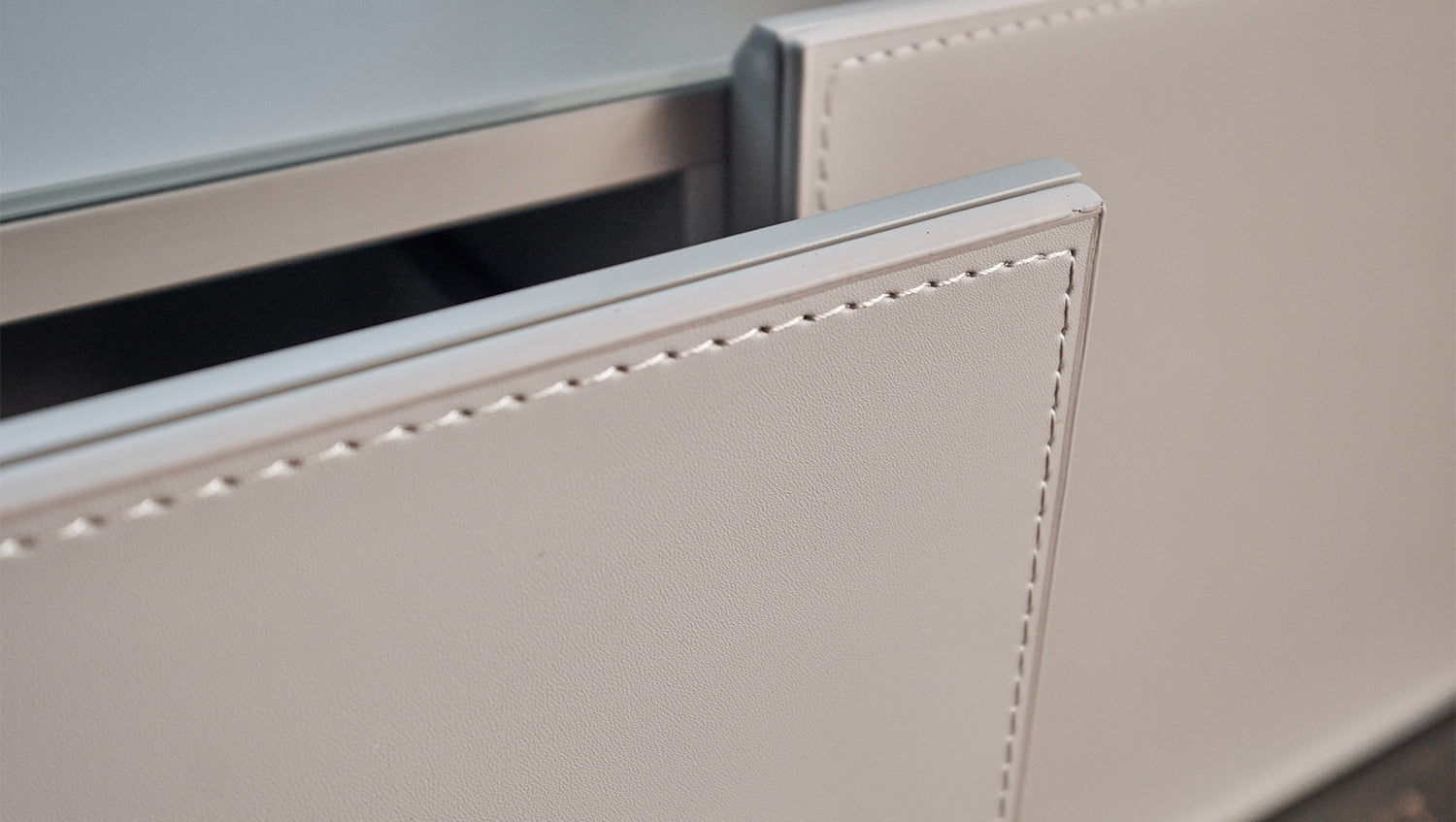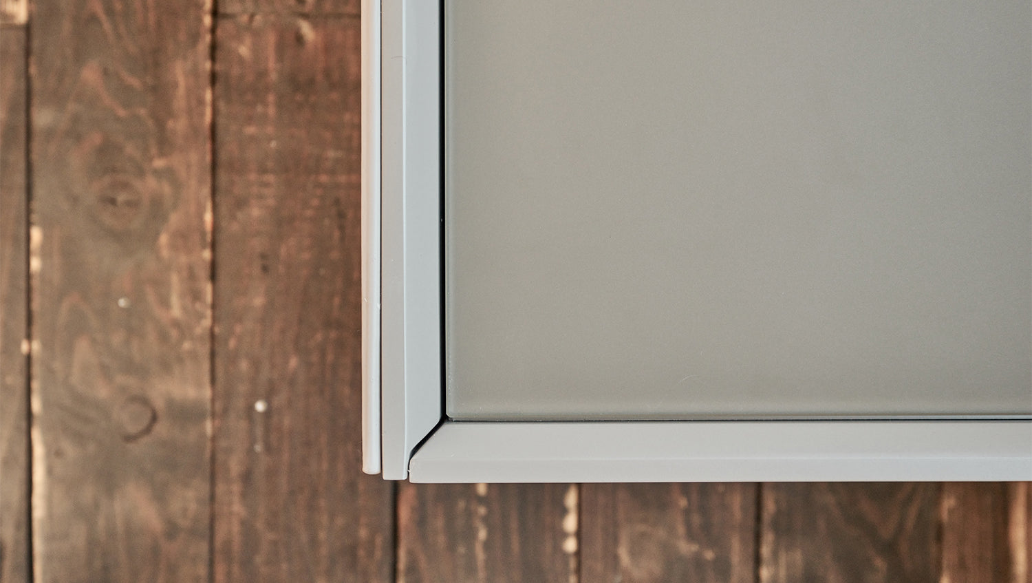 • Korpus aus Holz, lackiert / Ablagefläche aus Mattglas