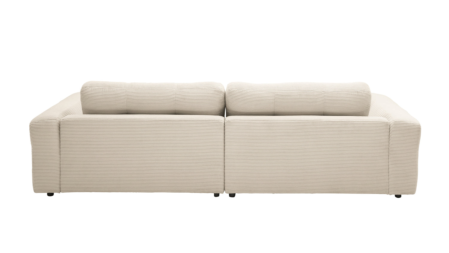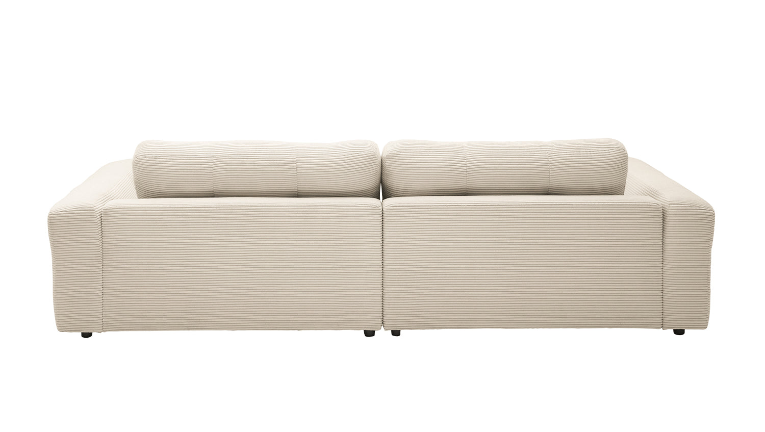 Das herausragende Merkmal ist der mittelfeste Sitzkomfort, der eine angenehme Balance zwischen Unterstützung und Gemütlichkeit bietet. Mit Abmessungen von 296 cm Breite und 167 cm Tiefe bietet das Sofa ausreichend Platz für entspannte Stunden.