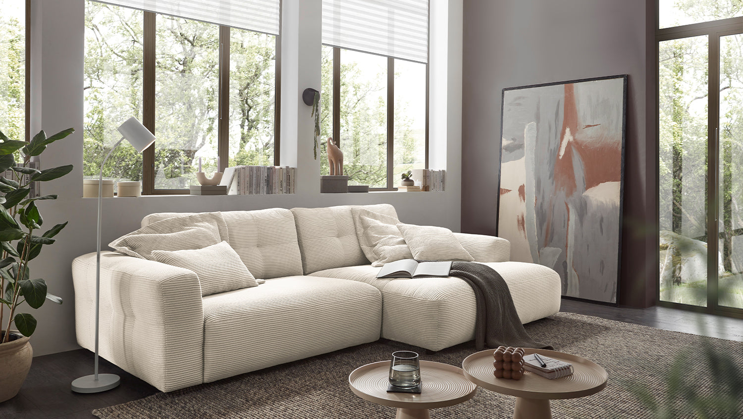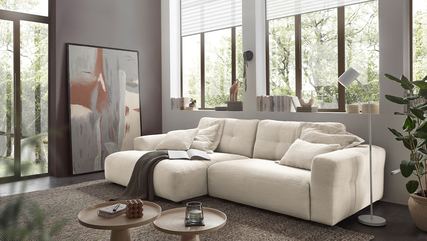 Das MIKA Ecksofa von KAWOLA vereint modernes Design mit hochwertiger Verarbeitung und wird zum Herzstück Ihres Wohnzimmers. Mit seinem Rundumbezug aus angesagtem Cord-Stoff ist das Sofa von allen Seiten attraktiv und flexibel im Raum platzierbar.