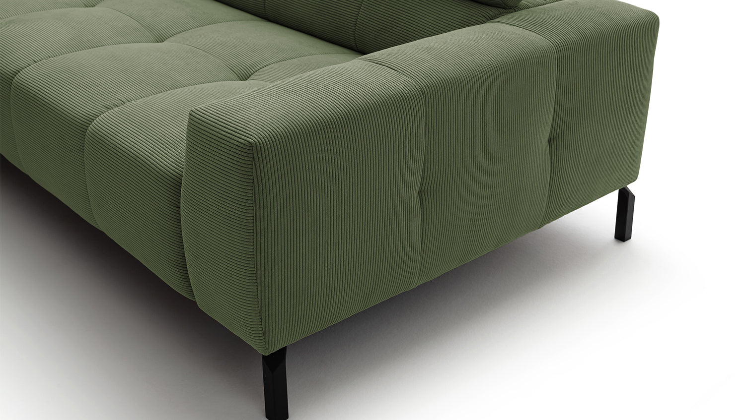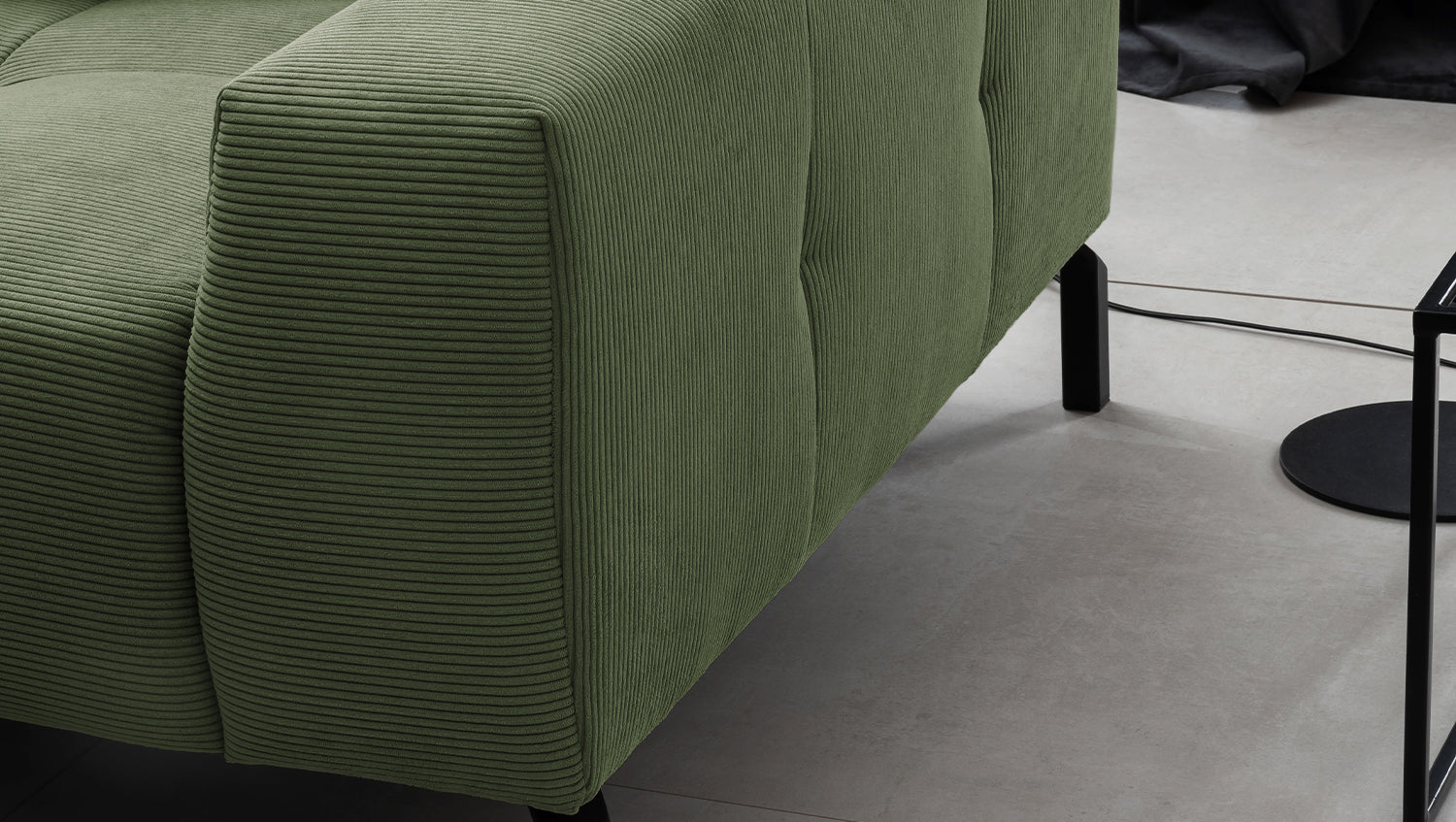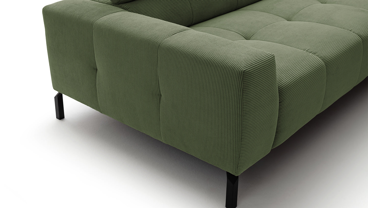 Das OHIO Ecksofa vereint Funktionalität und Design in Perfektion. Dank des mittelfesten Sitzkomforts erleben Sie eine ideale Mischung aus Unterstützung und Gemütlichkeit. Der Cordbezug verleiht dem Sofa nicht nur eine warme Ausstrahlung, sondern setzt auch stilvolle Akzente.