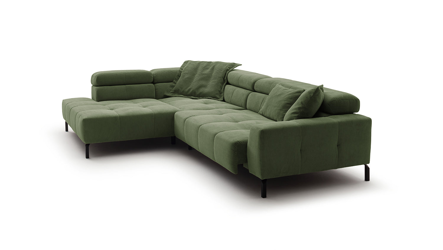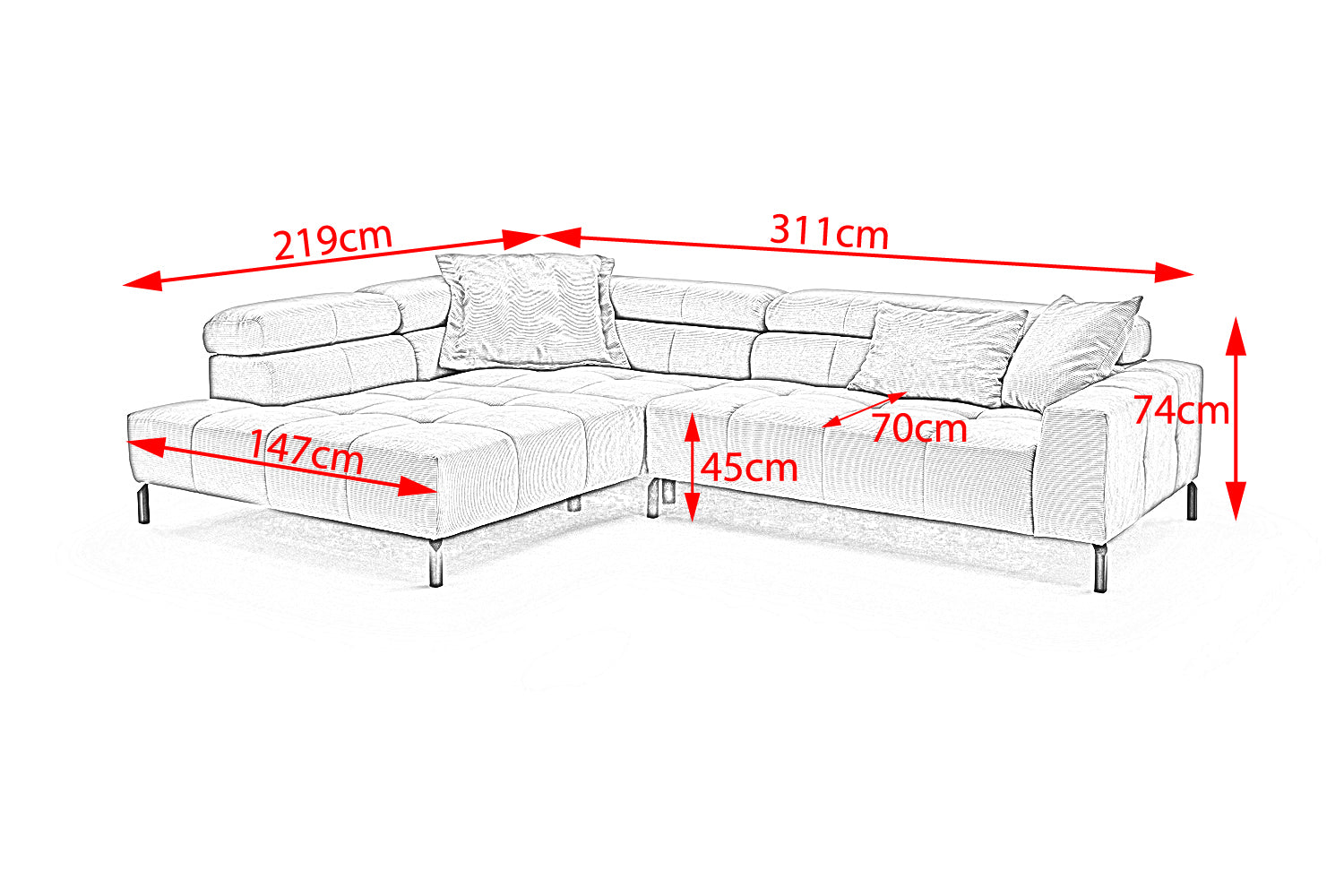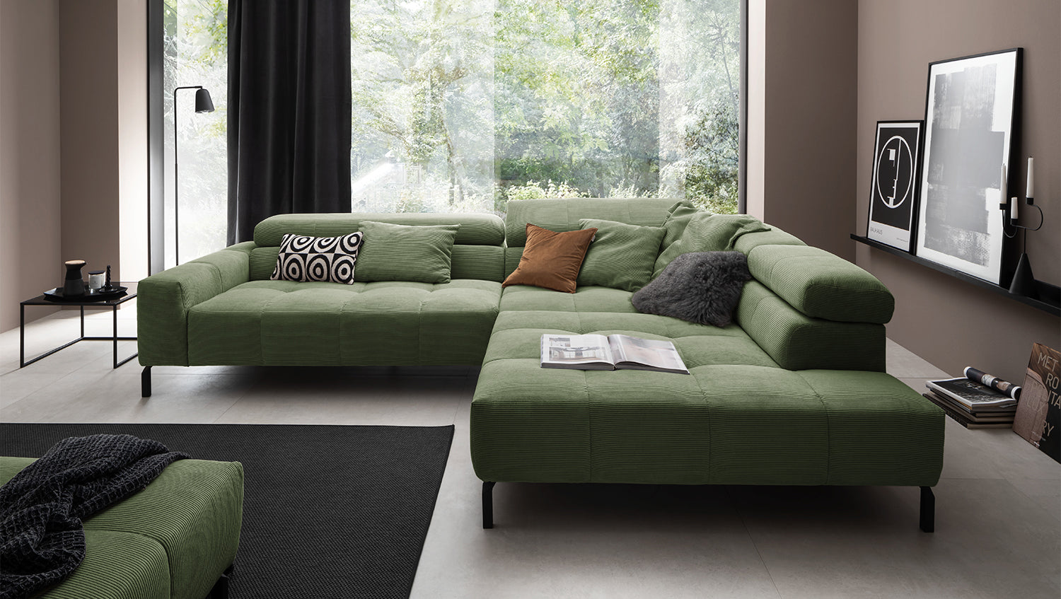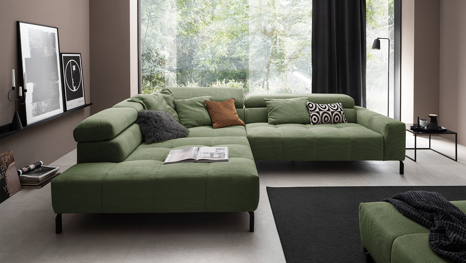 Das OHIO Ecksofa vereint Funktionalität und Design in Perfektion. Dank des mittelfesten Sitzkomforts erleben Sie eine ideale Mischung aus Unterstützung und Gemütlichkeit. Der Cordbezug verleiht dem Sofa nicht nur eine warme Ausstrahlung, sondern setzt auch stilvolle Akzente.