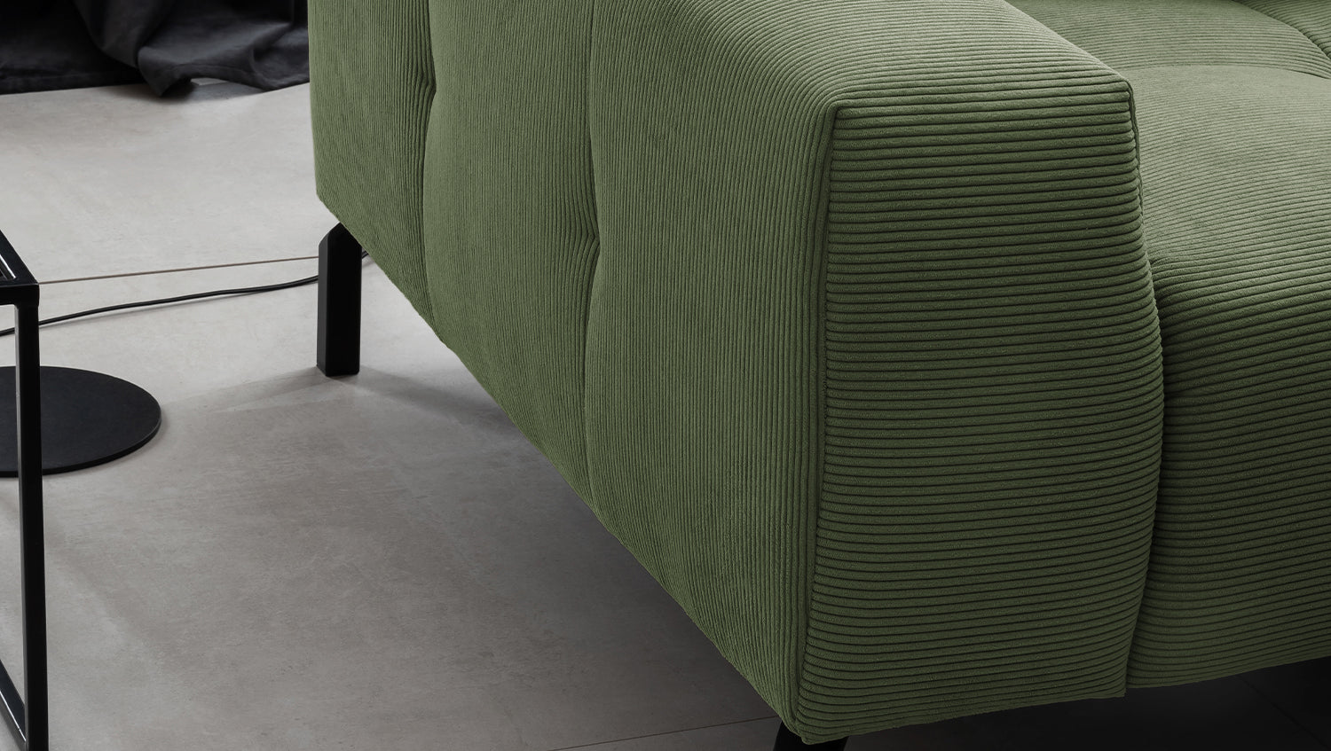 KAWOLA Sofa OHIO Ecksofa Feincord olivgrün