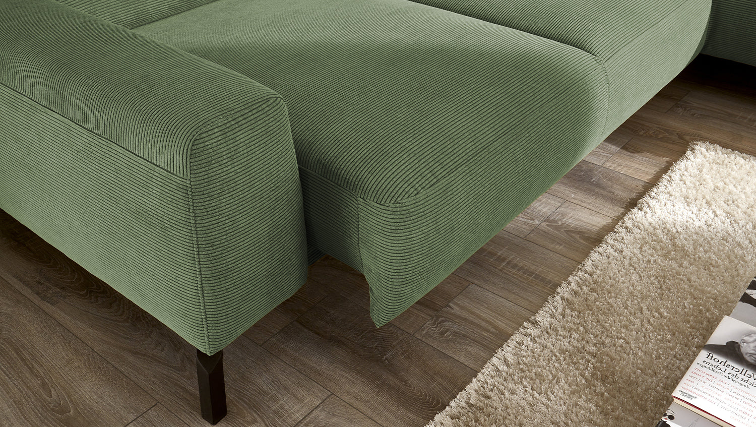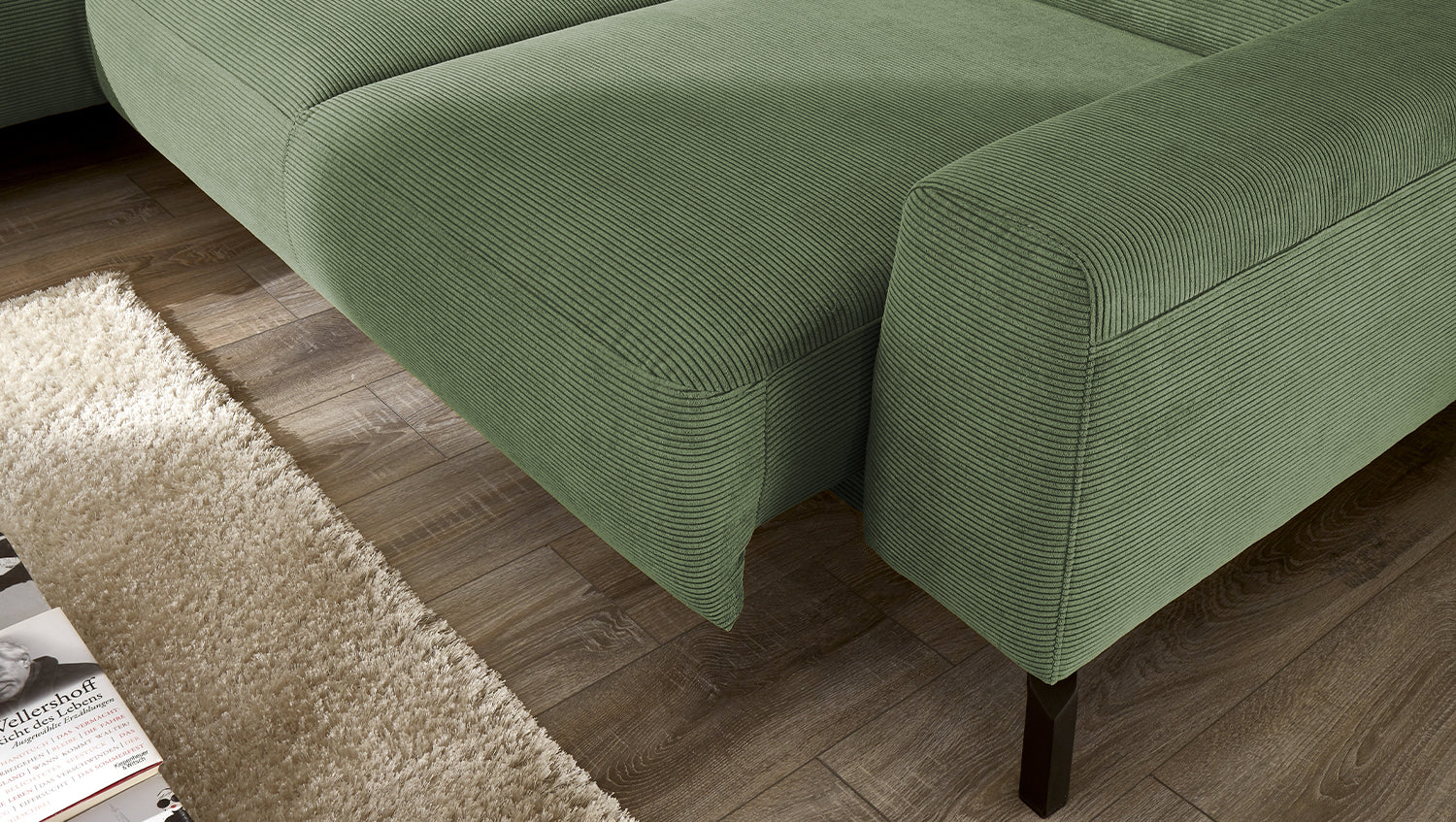 KAWOLA Sofa DELIA Ecksofa Feincord olivgrün