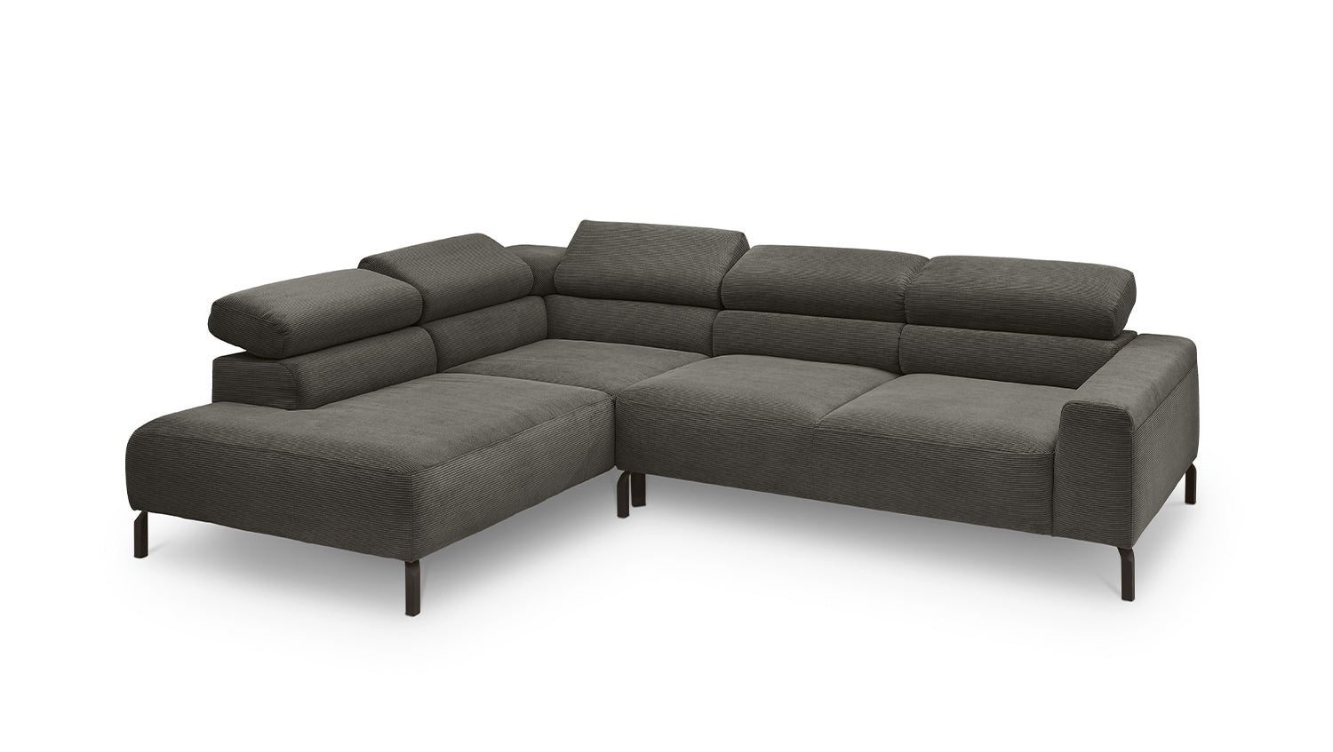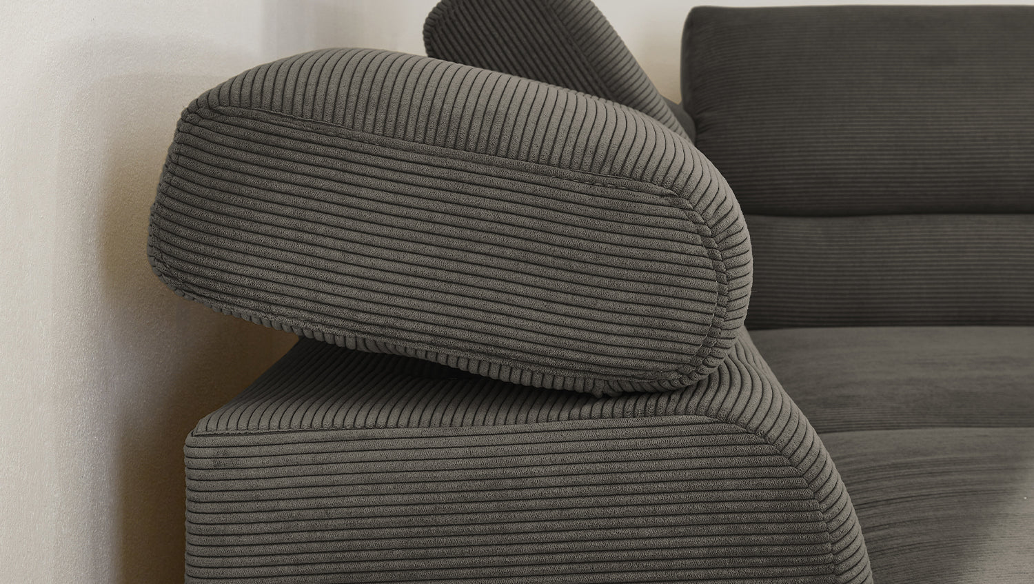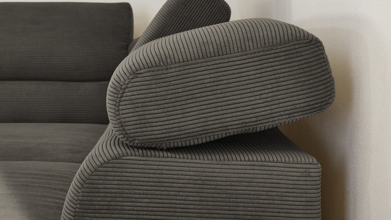 Ein Highlight ist die innovative Kopfteilverstellung, mit der Sie die Kopfteile individuell neigen oder aufrecht stellen können. Perfekt für entspannte Abende beim Lesen oder Filme schauen. Das Ecksofa DELIA vereint Funktionalität und Stil auf höchstem Niveau.