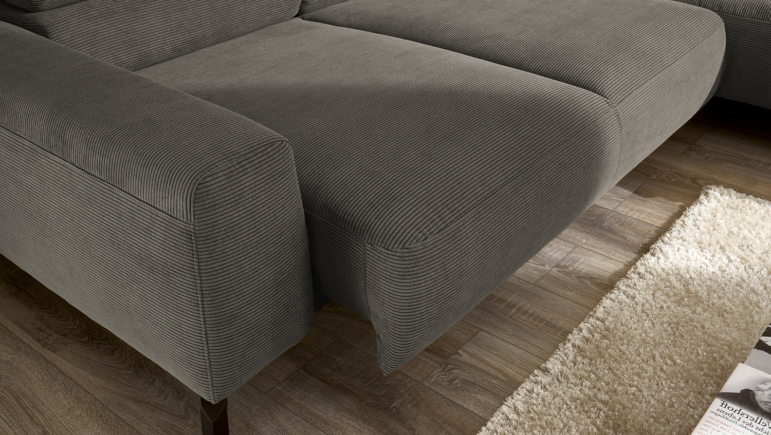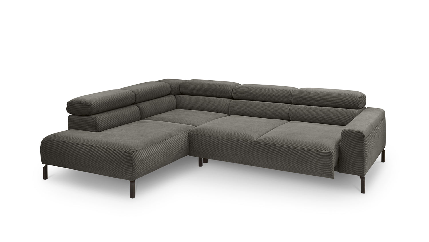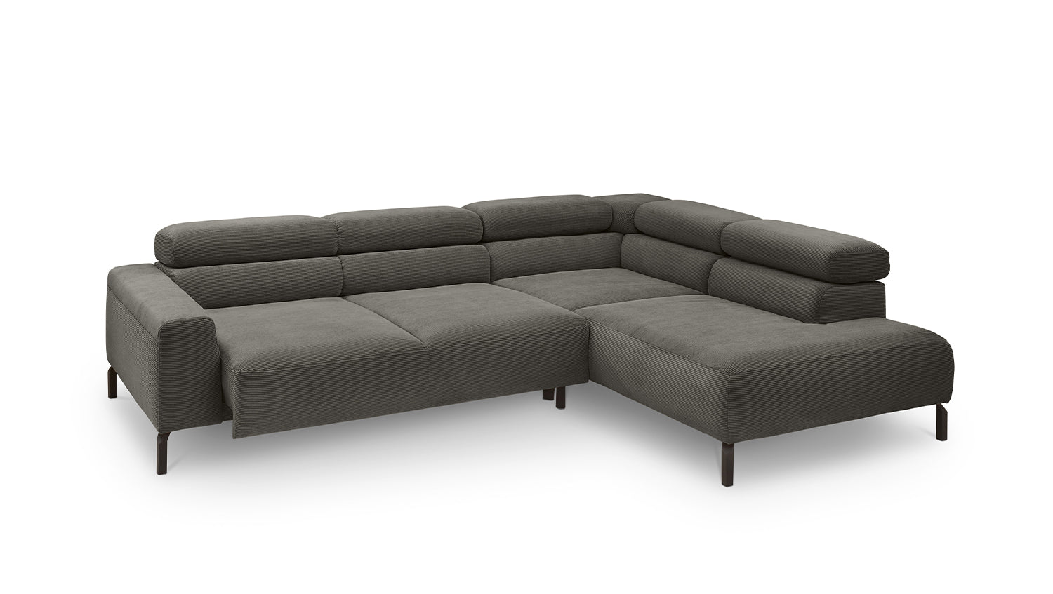 Ein Highlight ist die innovative Kopfteilverstellung, mit der Sie die Kopfteile individuell neigen oder aufrecht stellen können. Perfekt für entspannte Abende beim Lesen oder Filme schauen. Das Ecksofa DELIA vereint Funktionalität und Stil auf höchstem Niveau.