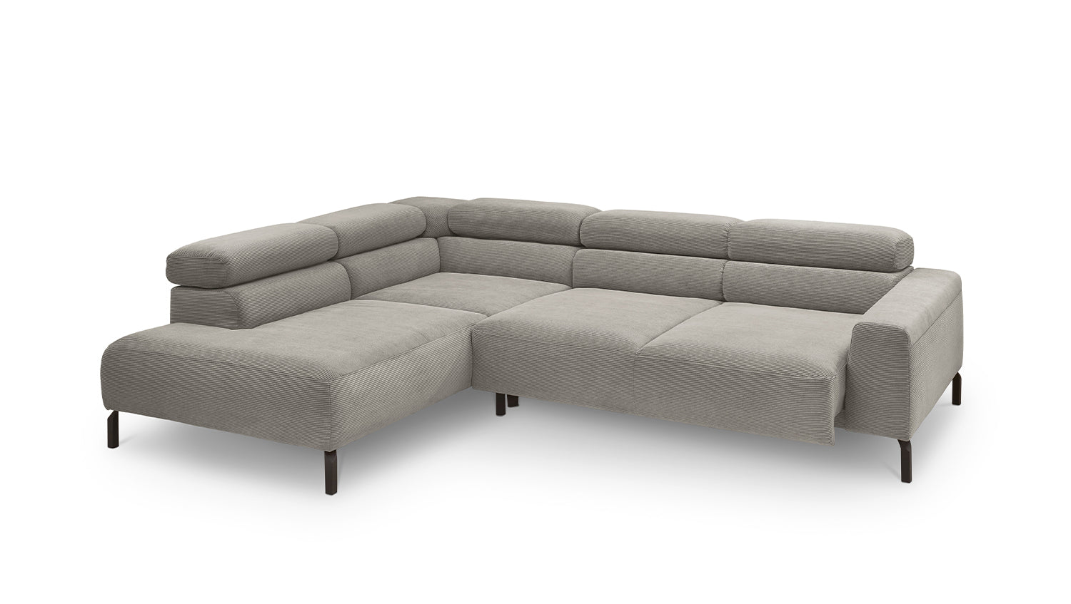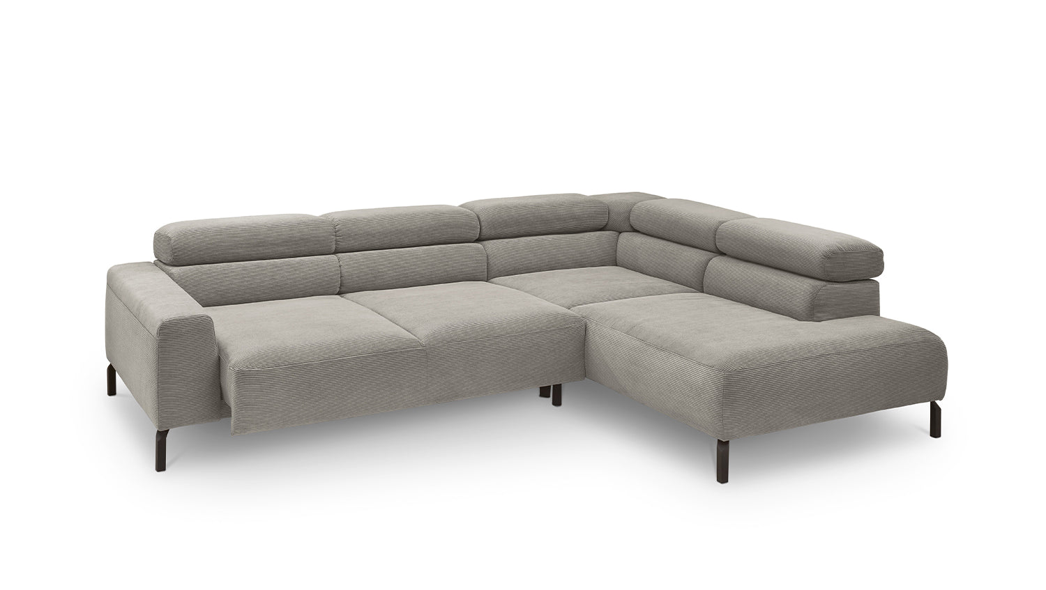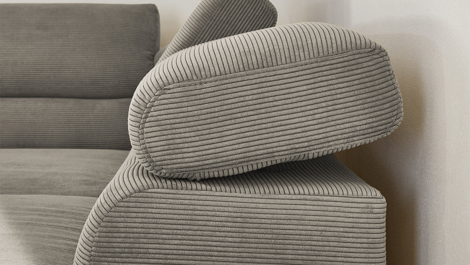Ein Highlight ist die innovative Kopfteilverstellung, mit der Sie die Kopfteile individuell neigen oder aufrecht stellen können. Perfekt für entspannte Abende beim Lesen oder Filme schauen. Das Ecksofa DELIA vereint Funktionalität und Stil auf höchstem Niveau.