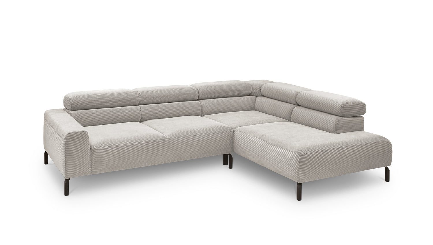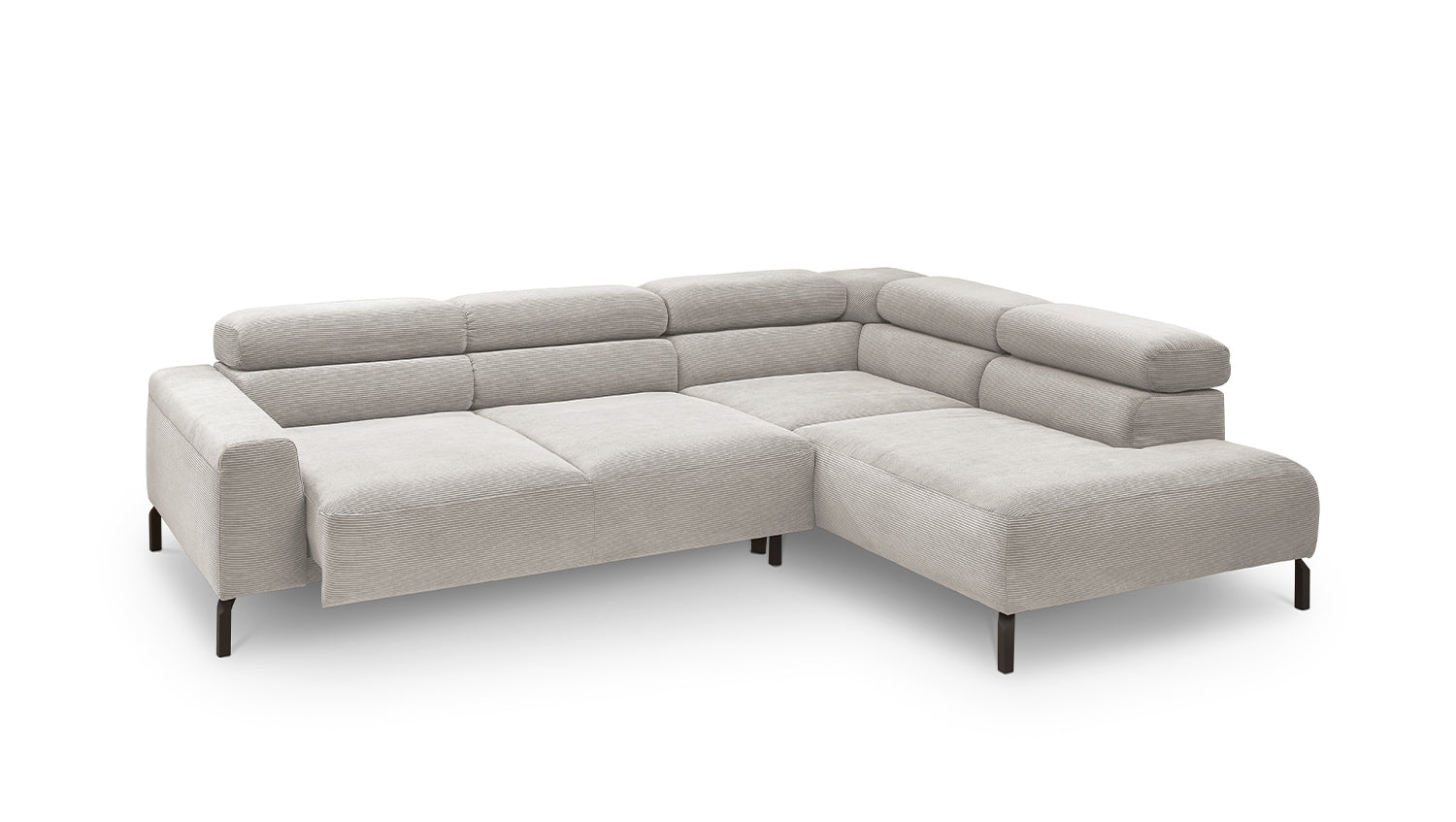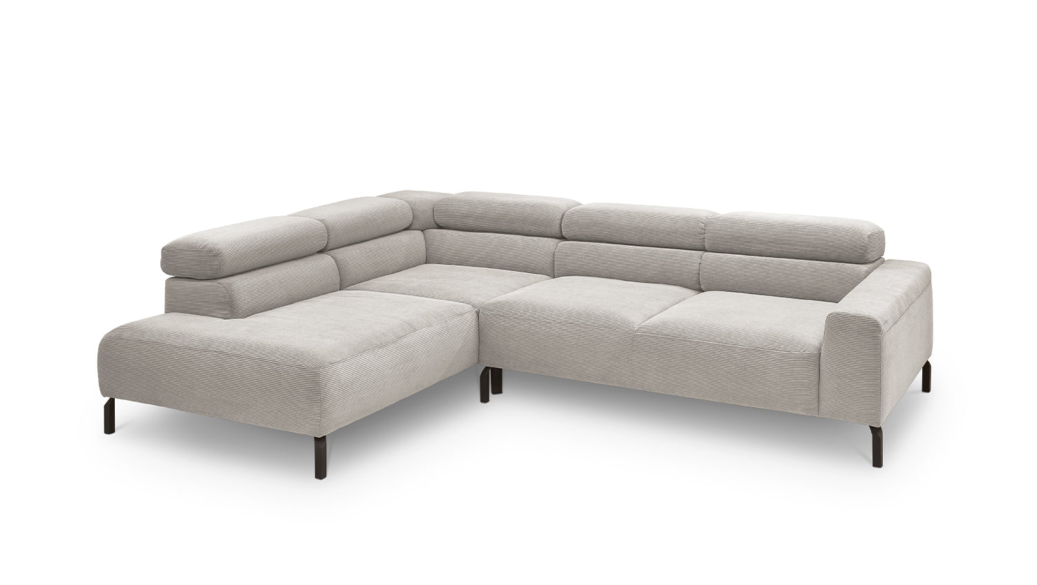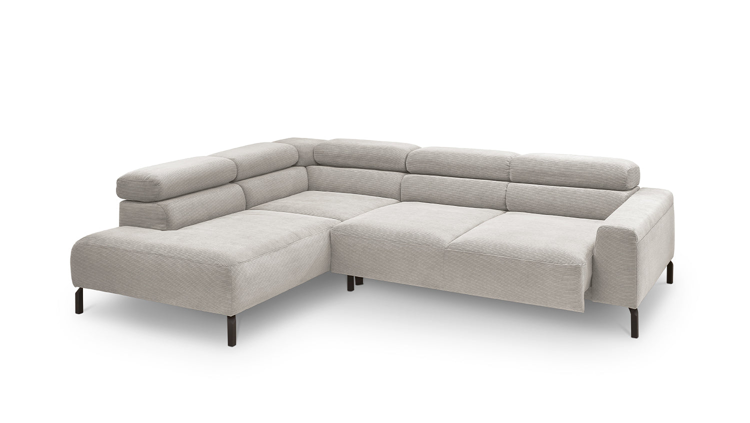 Ein Highlight ist die innovative Kopfteilverstellung, mit der Sie die Kopfteile individuell neigen oder aufrecht stellen können. Perfekt für entspannte Abende beim Lesen oder Filme schauen. Das Ecksofa DELIA vereint Funktionalität und Stil auf höchstem Niveau.