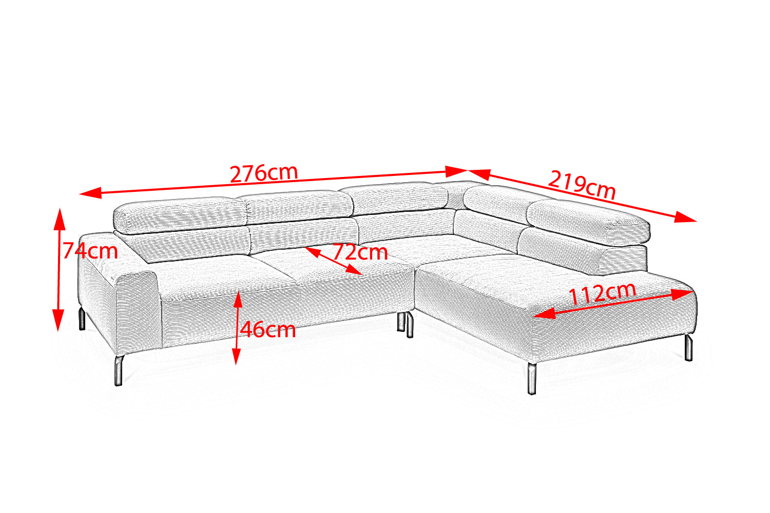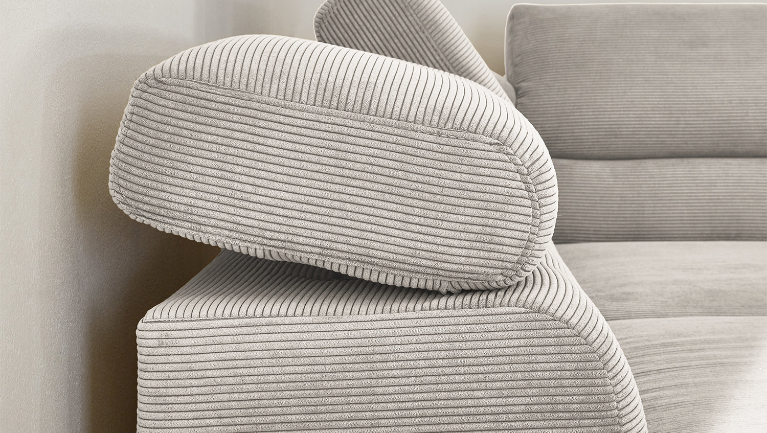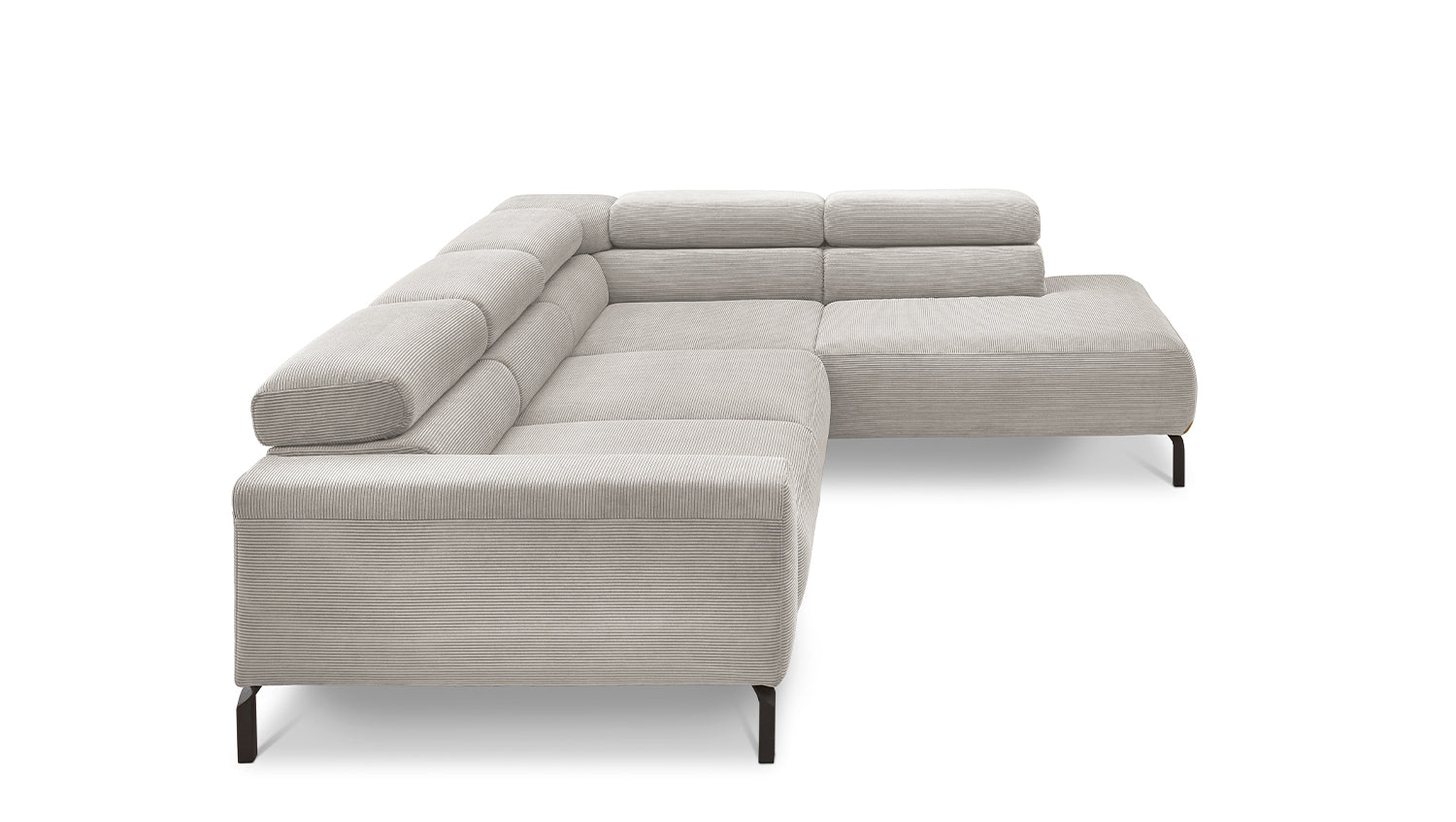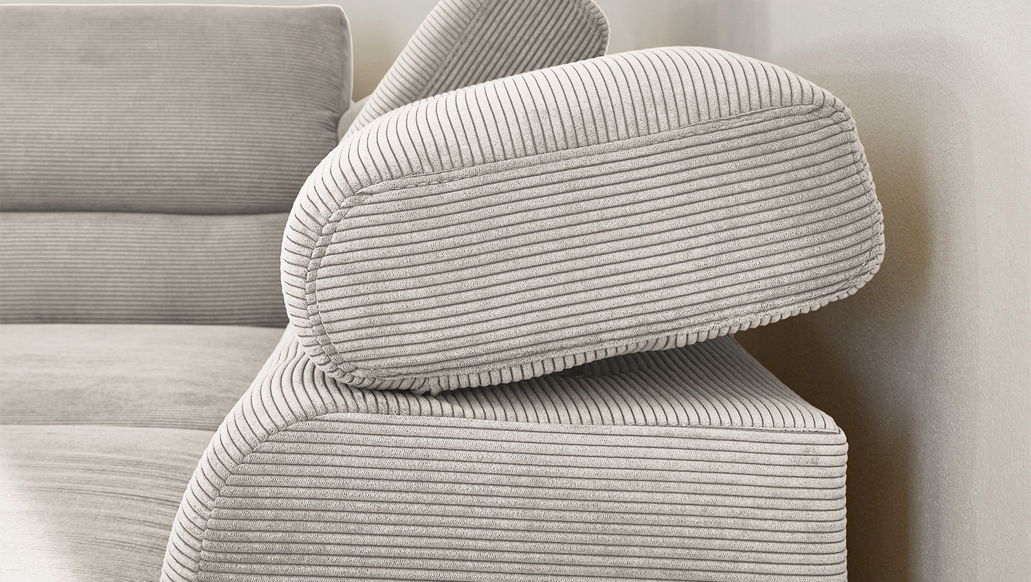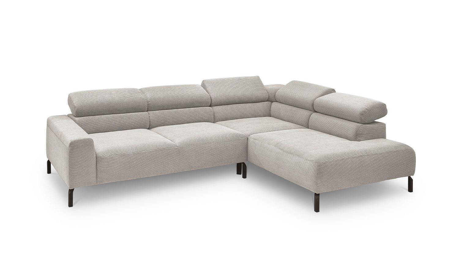 Ein Highlight ist die innovative Kopfteilverstellung, mit der Sie die Kopfteile individuell neigen oder aufrecht stellen können. Perfekt für entspannte Abende beim Lesen oder Filme schauen. Das Ecksofa DELIA vereint Funktionalität und Stil auf höchstem Niveau.
