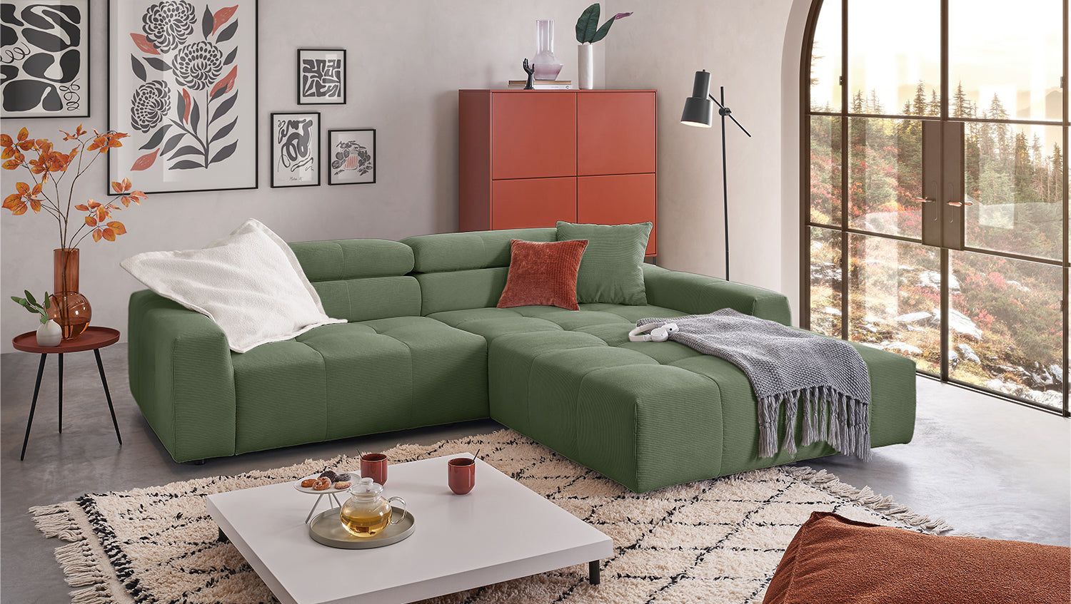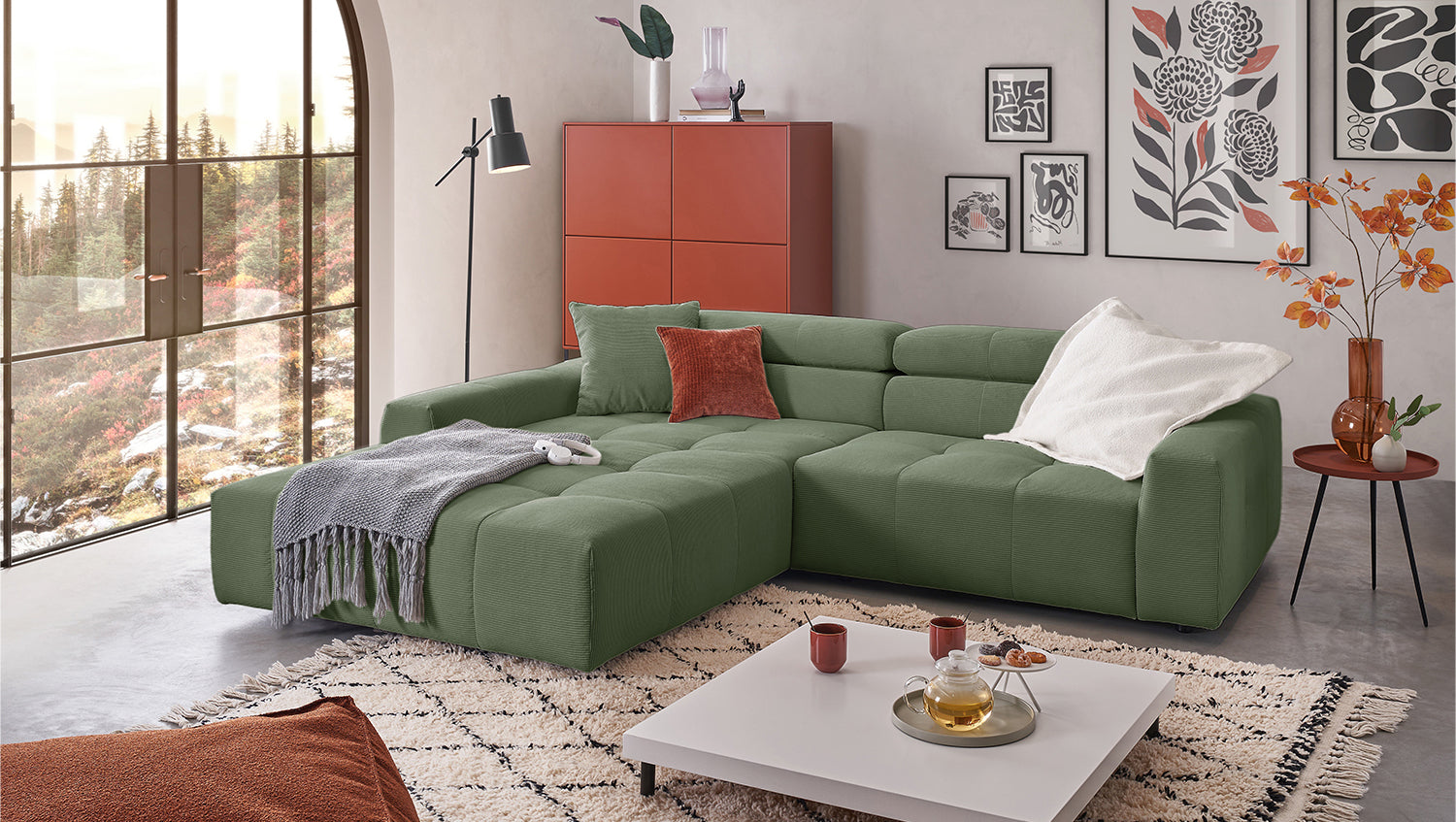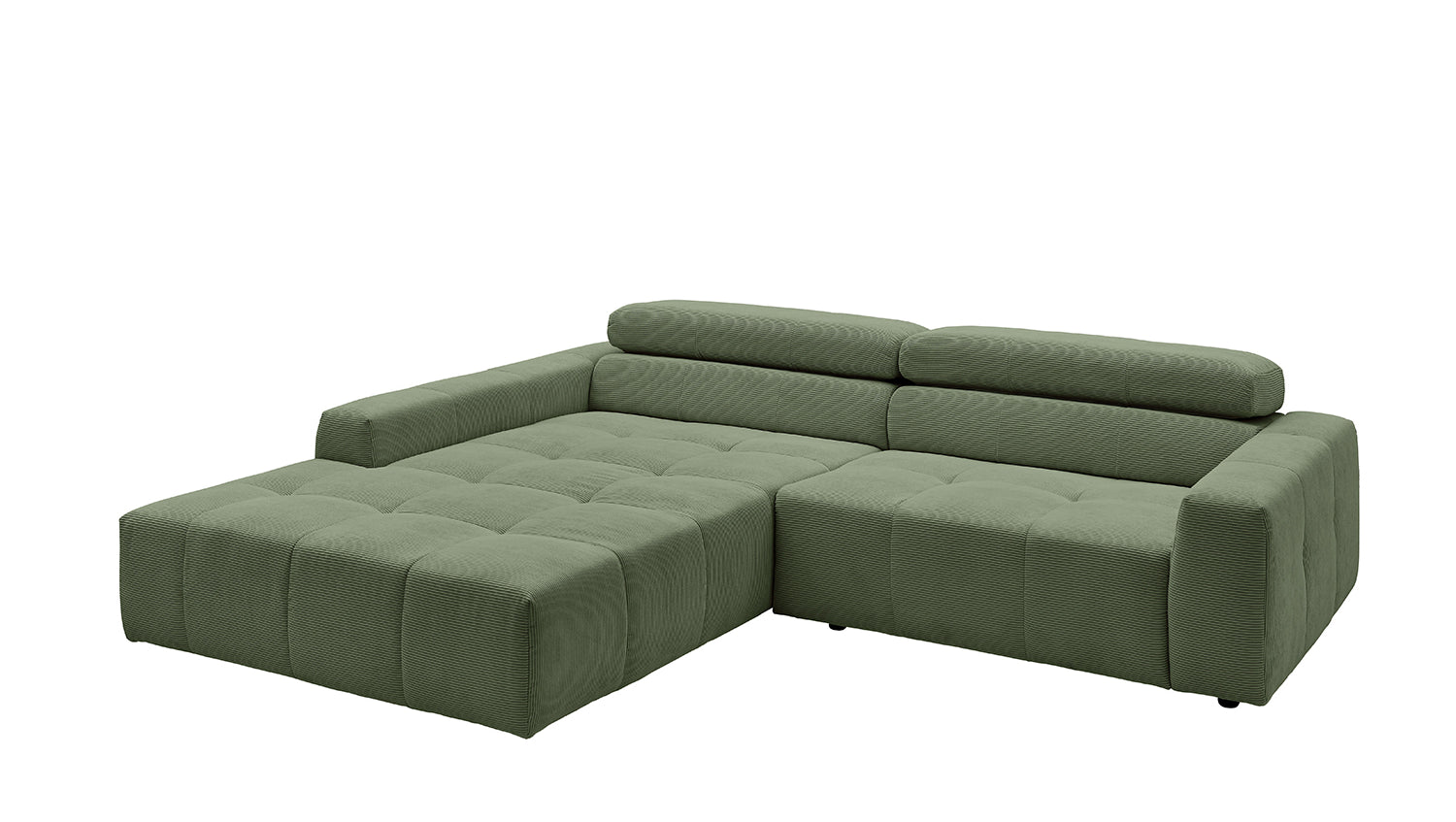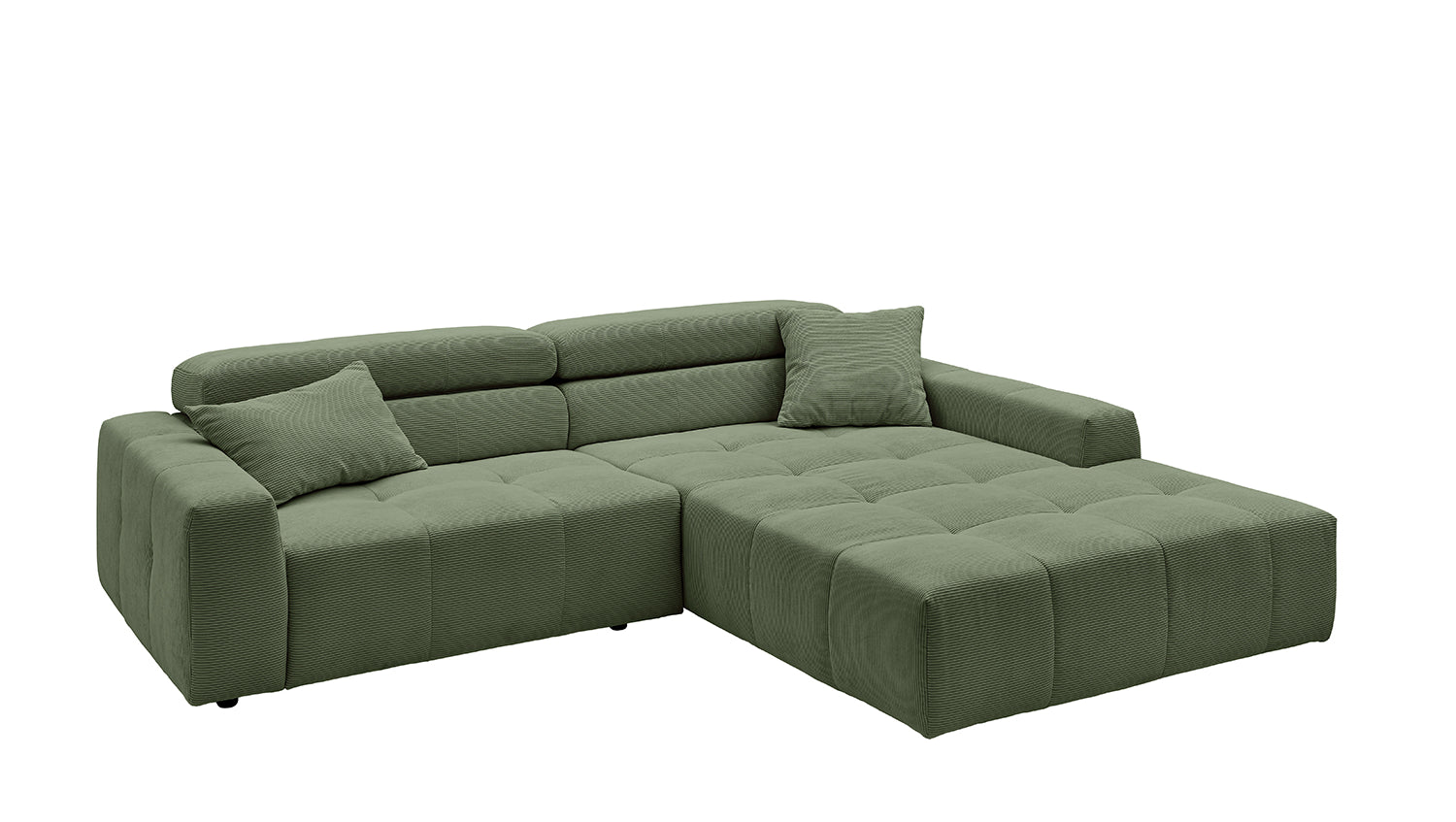 KAWOLA Sofa RENO Ecksofa Feincord olivgrün