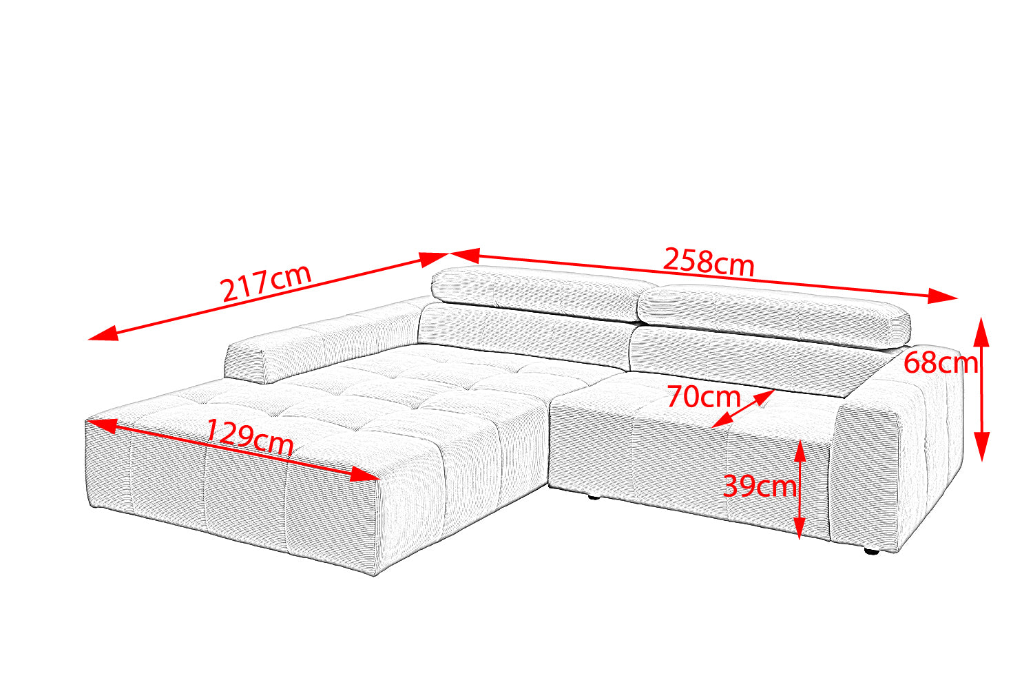 Entdecken Sie das stilvolle Ecksofa RENO von KAWOLA, das mit seinem hochwertigen Cordbezug und seiner raffinierten Kopfteilverstellung beeindruckt. Der Rundumbezug aus erstklassigem Cord verleiht diesem Ecksofa einen zeitlosen Charme und eine angenehme Haptik. Der ergonomisch geformte Rücken aus Schaumstoff sorgt für zusätzlichen Komfort, während die Wellenunterfederung und der PUR-Schaum im Sitzbereich ein angenehmes Sitzgefühl gewährleisten. Die innovative Kopfteilverstellung ermöglicht es Ihnen, die Kopfteile individuell zu neigen oder aufrecht zu stellen, um Ihre persönliche Entspannungsposition zu finden. Mit einem mittelfesten Sitzkomfort bietet das Ecksofa RENO die perfekte Kombination aus Stil und Gemütlichkeit. Erleben Sie pure Entspannung in Ihrem Wohnzimmer mit diesem bequemen und ansprechenden Möbelstück.