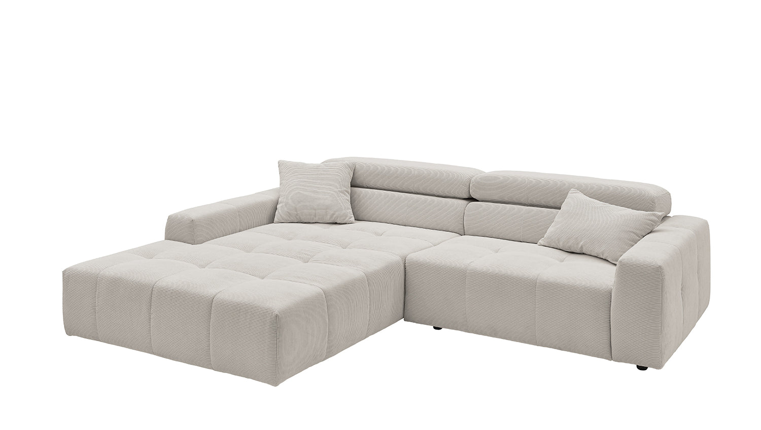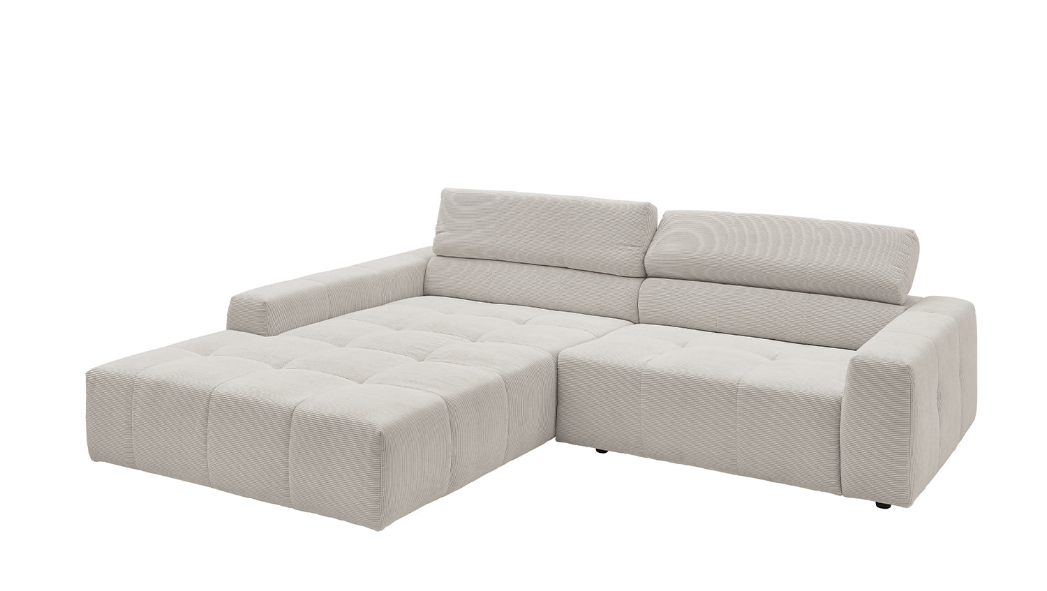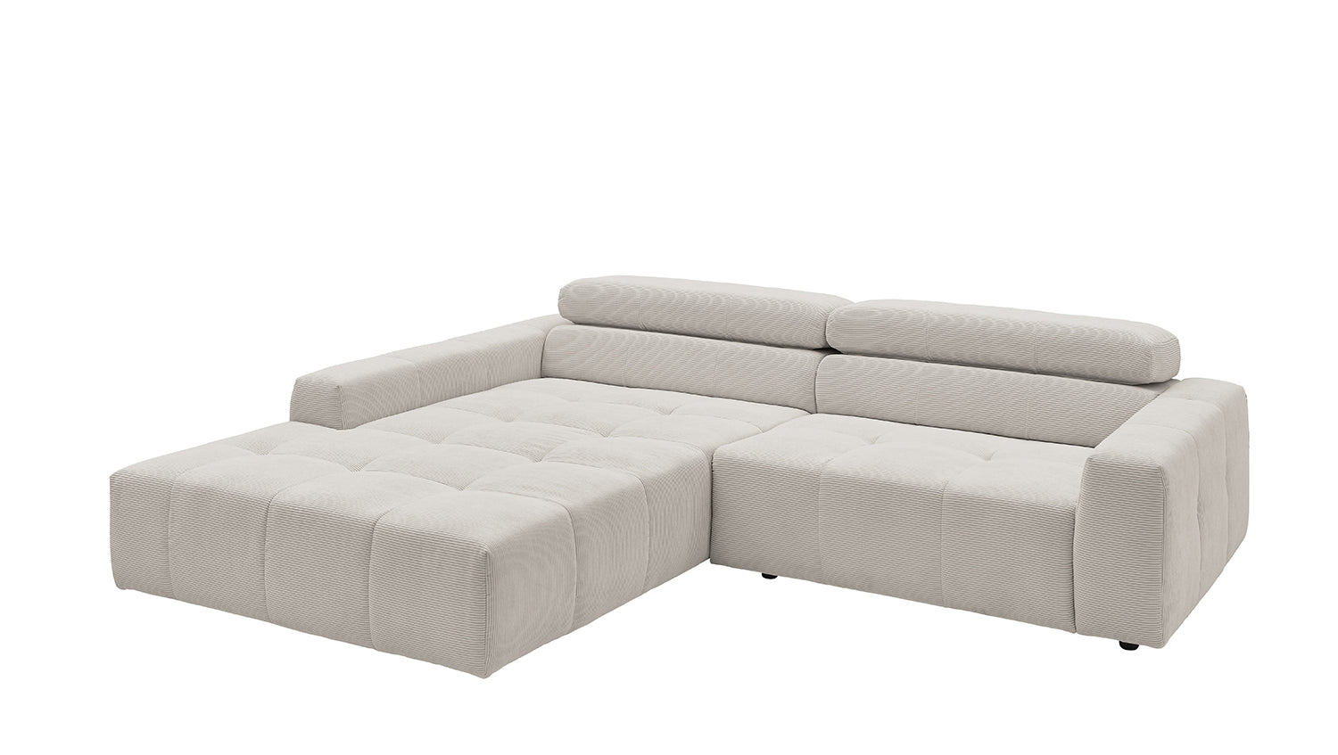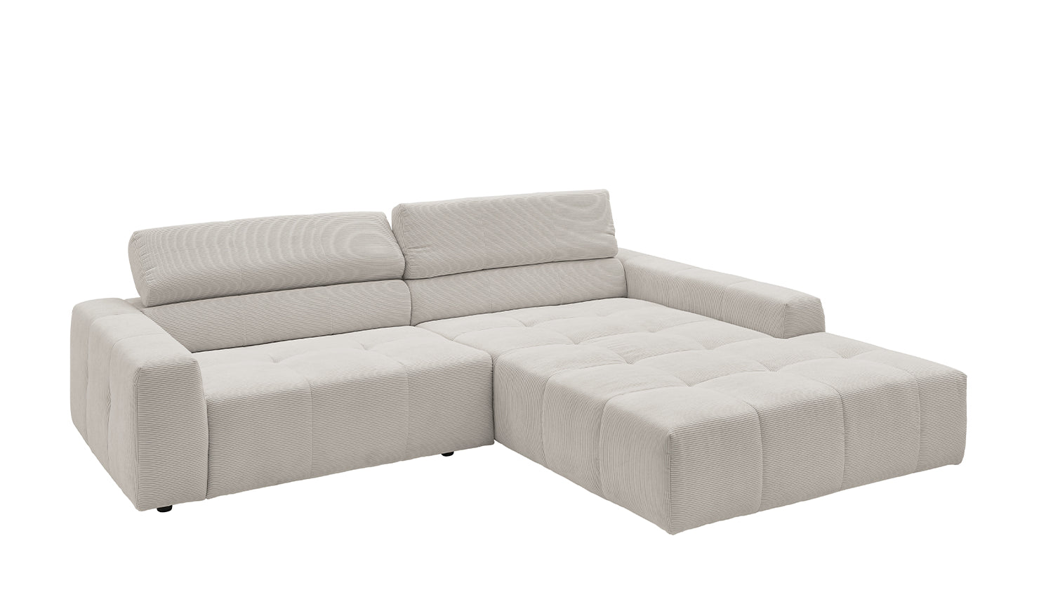 Entdecken Sie das stilvolle Ecksofa RENO von KAWOLA, das mit seinem hochwertigen Cordbezug und seiner raffinierten Kopfteilverstellung beeindruckt. Der Rundumbezug aus erstklassigem Cord verleiht diesem Ecksofa einen zeitlosen Charme und eine angenehme Haptik. Der ergonomisch geformte Rücken aus Schaumstoff sorgt für zusätzlichen Komfort, während die Wellenunterfederung und der PUR-Schaum im Sitzbereich ein angenehmes Sitzgefühl gewährleisten. Die innovative Kopfteilverstellung ermöglicht es Ihnen, die Kopfteile individuell zu neigen oder aufrecht zu stellen, um Ihre persönliche Entspannungsposition zu finden. Mit einem mittelfesten Sitzkomfort bietet das Ecksofa RENO die perfekte Kombination aus Stil und Gemütlichkeit. Erleben Sie pure Entspannung in Ihrem Wohnzimmer mit diesem bequemen und ansprechenden Möbelstück. Lieferung ohne Kissen und Dekoration