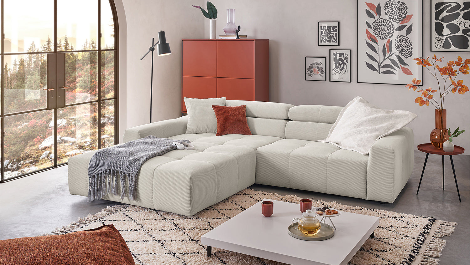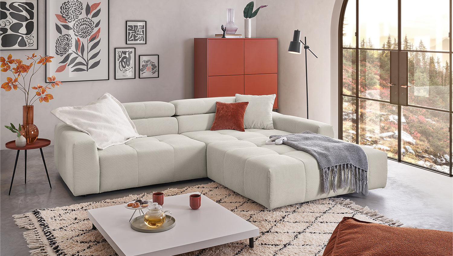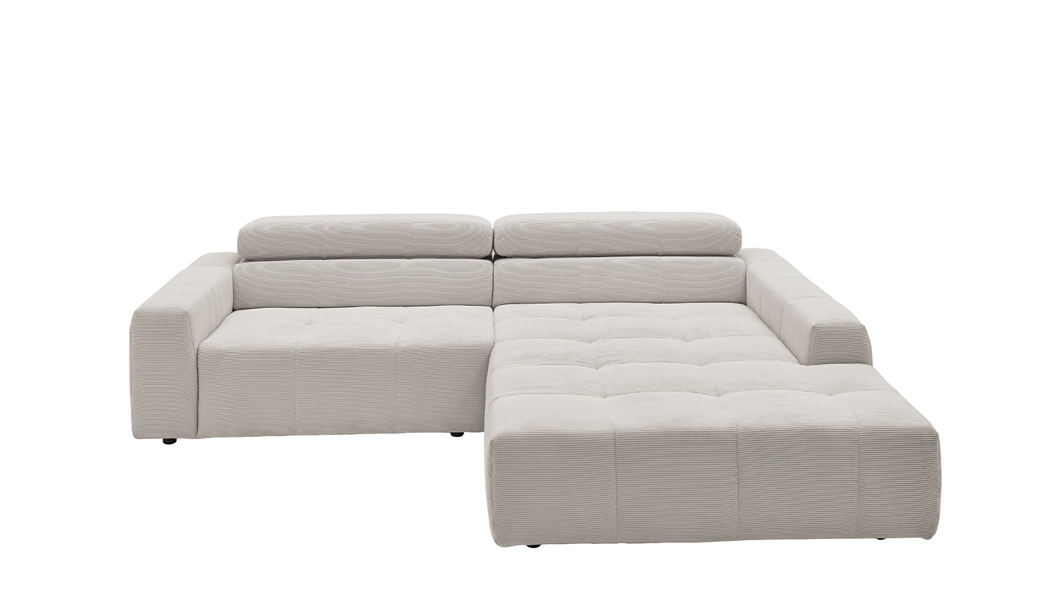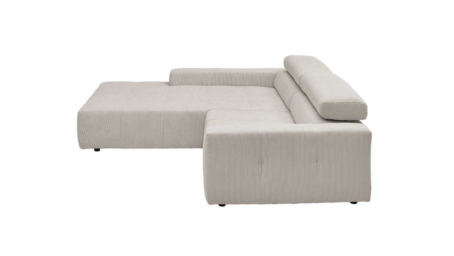 Entdecken Sie das stilvolle Ecksofa RENO von KAWOLA, das mit seinem hochwertigen Cordbezug und seiner raffinierten Kopfteilverstellung beeindruckt. Der Rundumbezug aus erstklassigem Cord verleiht diesem Ecksofa einen zeitlosen Charme und eine angenehme Haptik. Der ergonomisch geformte Rücken aus Schaumstoff sorgt für zusätzlichen Komfort, während die Wellenunterfederung und der PUR-Schaum im Sitzbereich ein angenehmes Sitzgefühl gewährleisten. Die innovative Kopfteilverstellung ermöglicht es Ihnen, die Kopfteile individuell zu neigen oder aufrecht zu stellen, um Ihre persönliche Entspannungsposition zu finden. Mit einem mittelfesten Sitzkomfort bietet das Ecksofa RENO die perfekte Kombination aus Stil und Gemütlichkeit. Erleben Sie pure Entspannung in Ihrem Wohnzimmer mit diesem bequemen und ansprechenden Möbelstück. Lieferung ohne Kissen und Dekoration