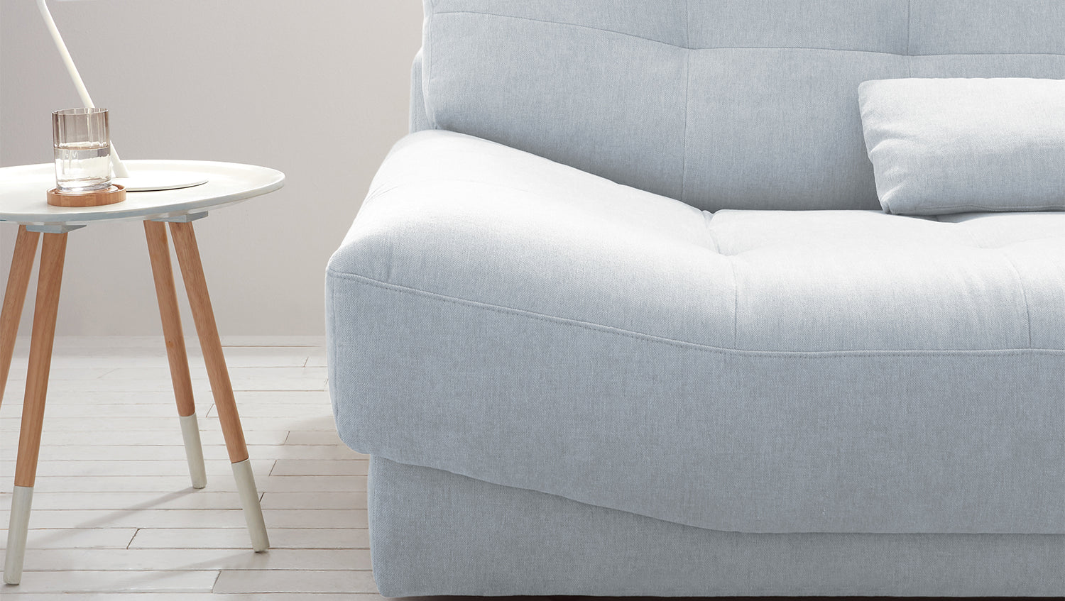 KAWOLA Sofa MOZZA 3-Sitzer Stoff hellblau
