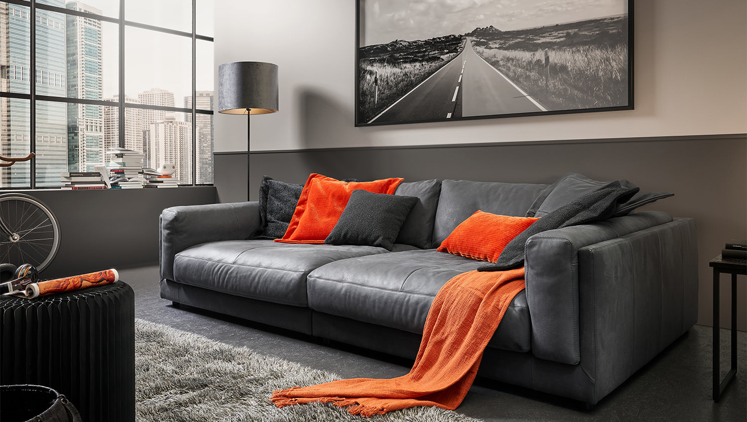 KAWOLA Big Sofa RAINA Leder anthrazit