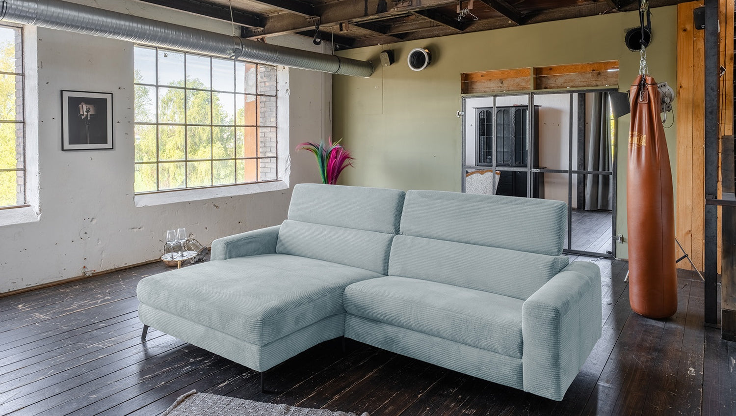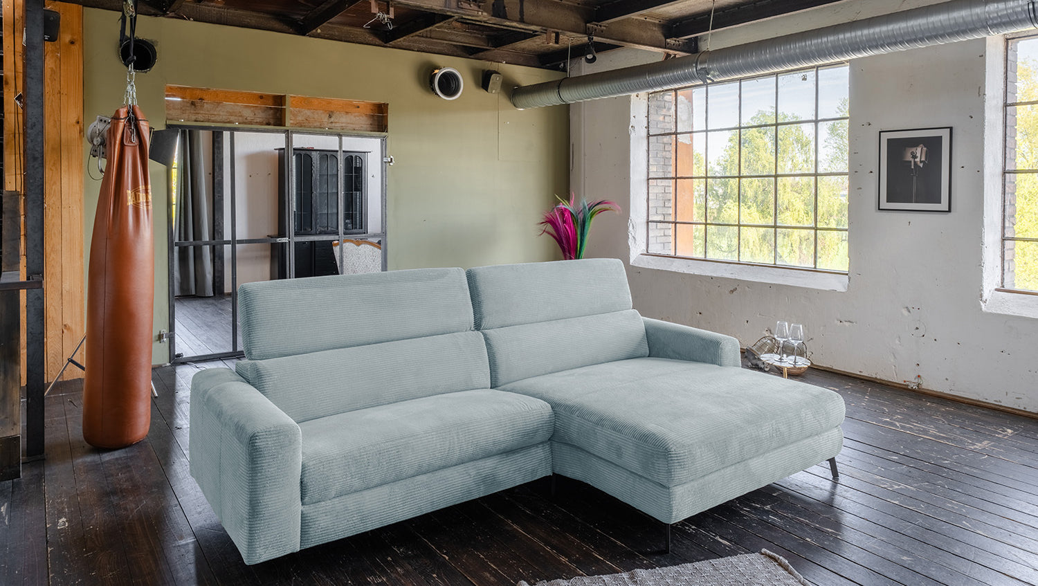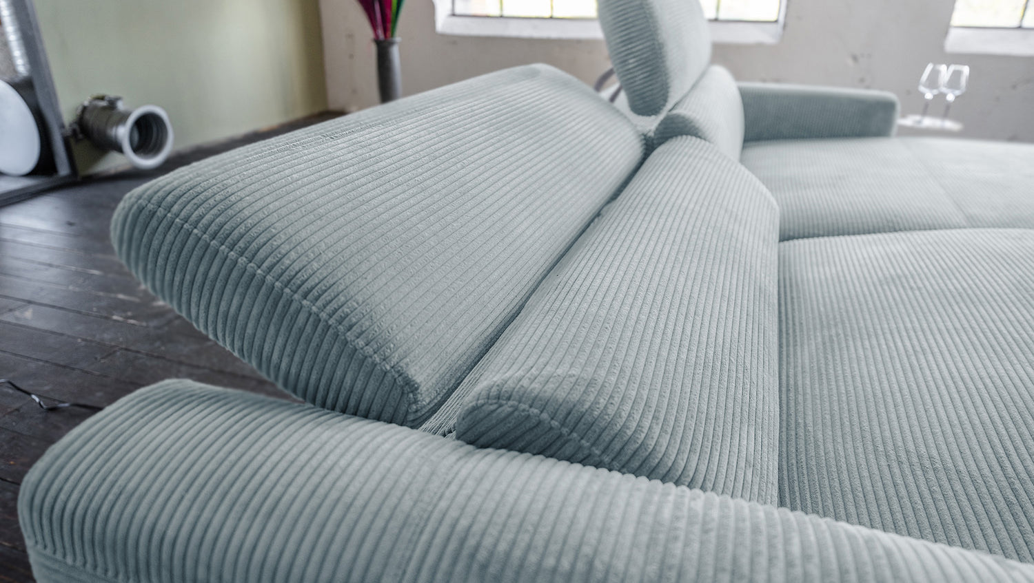 Mit einer großzügigen Breite von 282 cm bietet LAISKA ausreichend Platz zum Entspannen. Die weiche Polsterung garantiert höchsten Komfort, während die manuell einstellbaren Kopfteile sich individuell anpassen lassen – für perfekten Halt in jeder Position.