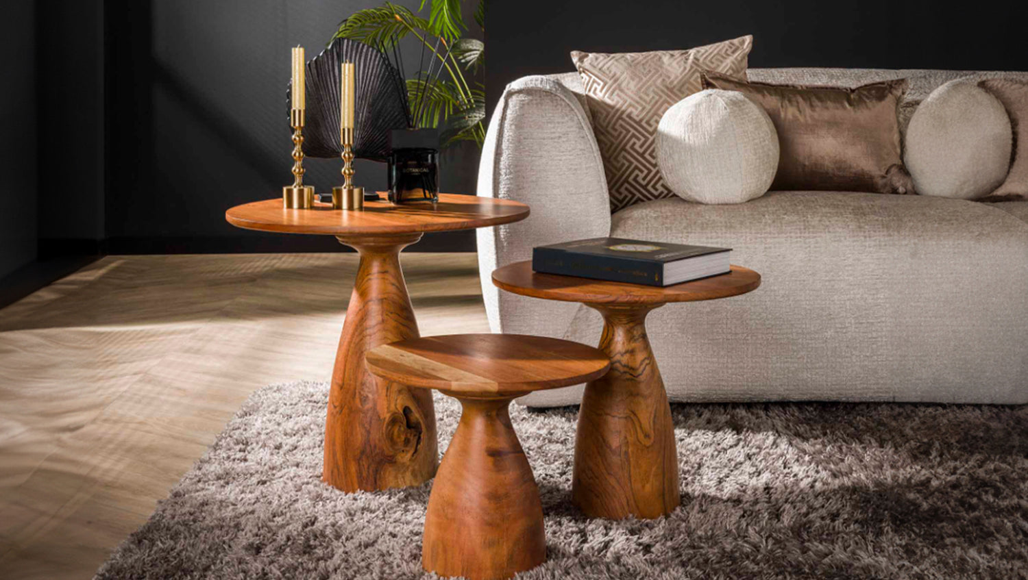 Das Couchtisch-Set CECILIA von KAWOLA besteht aus 3 Tischen und ist aus massivem Akazienholz gefertigt. Die Tischplatte ist flach, und die Basis der Tische hat die Form eines Kegels. Der robuste Sockel dieser Tische ist aus einem Stück massiven Akazienholzes gefertigt. Da Akazienholz ein natürliches Material ist, können im Laufe der Zeit Trockenrisse auftreten. Dies ist ein natürlicher Prozess und trägt zum authentischen Aussehen der Tische bei. Da der Sockel aus einem Stück gefertigt wird, können natürliche Farbunterschiede aufgrund des Splintholzes und der Rinde auftreten. Das Splintholz ist der jüngere, äußere Teil des Baumes und wird als leichte Verfärbung im Holz sichtbar. Das Rindenholz befindet sich am Rand des Stammes und kann dunklere Akzente setzen. Kein Tisch gleicht dem anderen - der Couchtisch CECILIA ist ein echter Blickfang mit einer Geschichte!