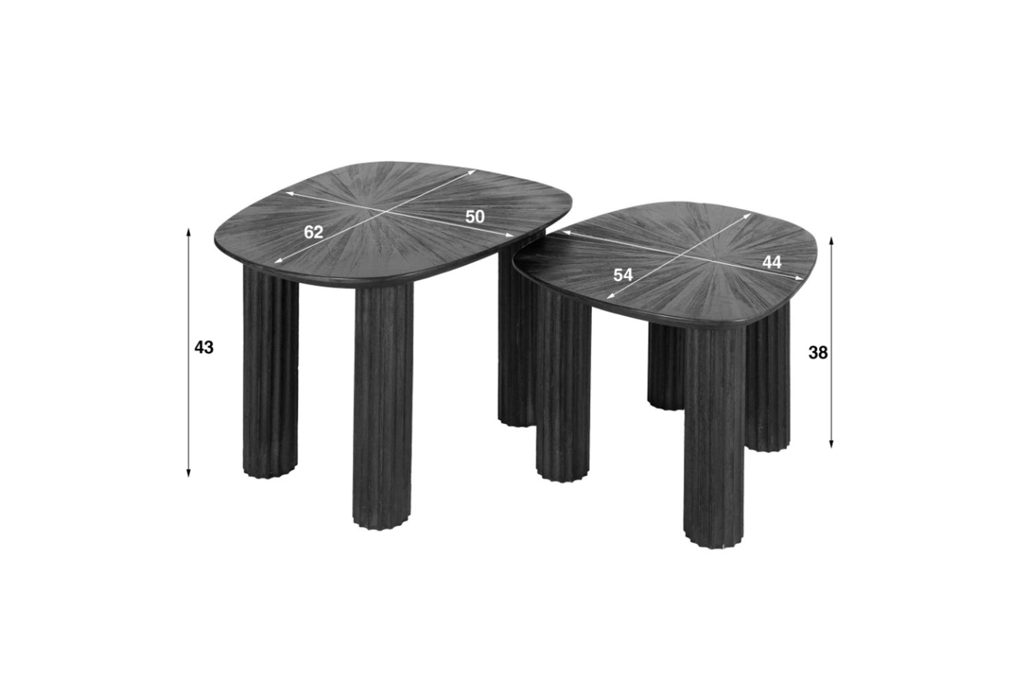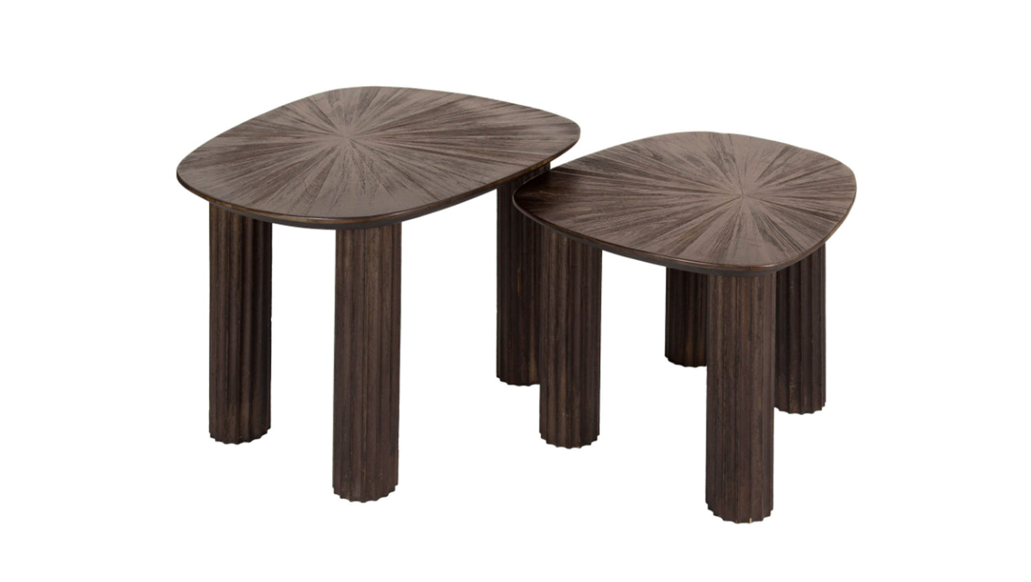 Das Couchtisch-Set INKA von KAWOLA bringt Natur und modernes Design in perfekte Balance. Die Tische wurden in einer organischen Form entworfen und aus hochwertigem Teakholz in einer modernen dunkelbraunen Farbe gefertigt. Diese Kombination sorgt dafür, dass diese Tische sowohl Stil als auch Haltbarkeit ausstrahlen. Die einzigartigen Beine mit Wellenmuster und das elegante Design der Tischplatte sorgen für einen verspielten und doch raffinierten Look. Das Set besteht aus zwei Tischen. Der höhere Tisch hat eine Fläche von 62 x 50 cm und eine Höhe von 43 cm, der niedrigere Tisch hat eine Fläche 54 x 44 cm von Höhe von 38 cm. Ob im Wohnzimmer, in der Lounge oder als stilvolle Ablage – das Couchtisch-Set INKA passt in jedes Zuhause und setzt ein echtes Design-Statement.