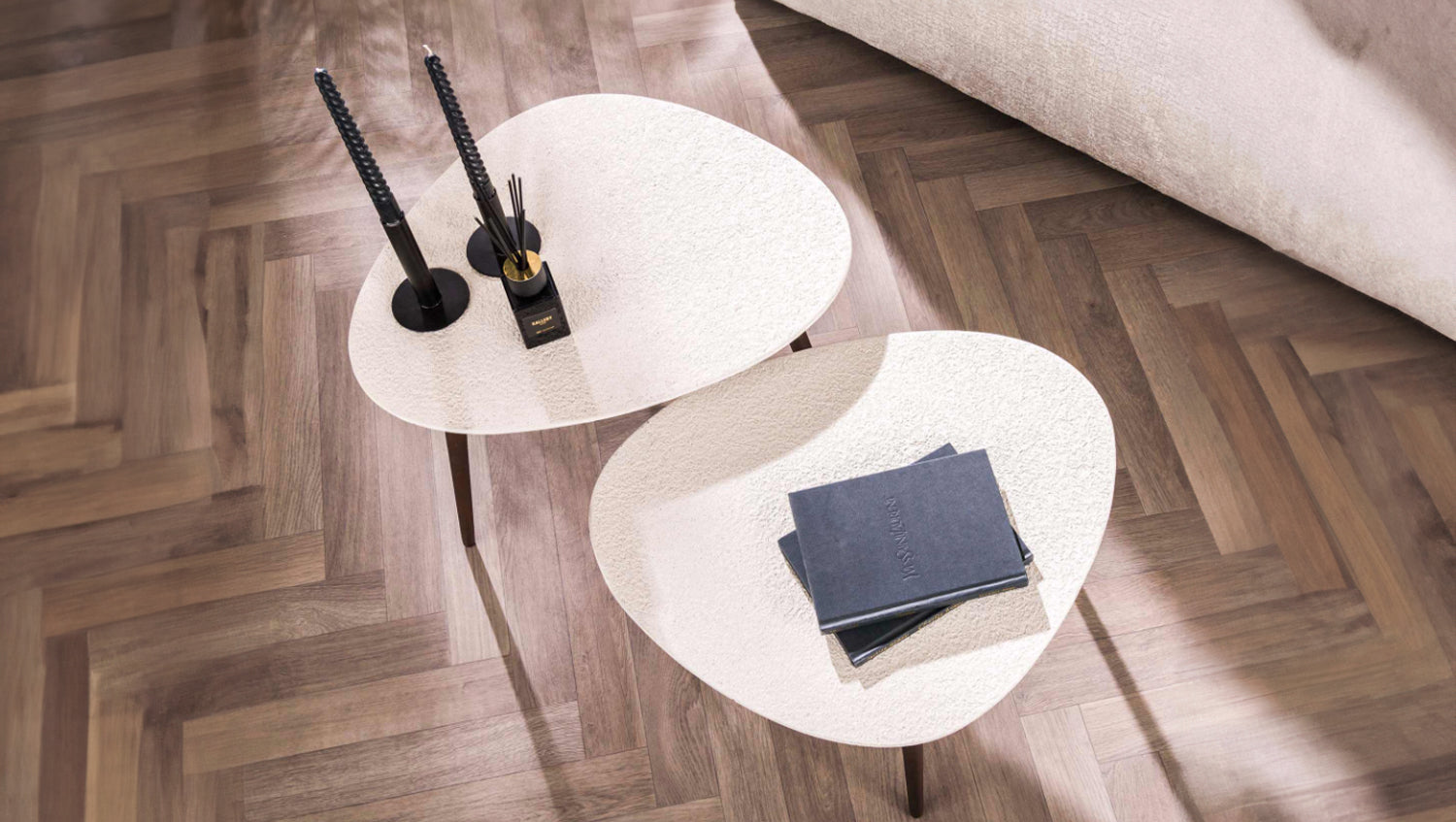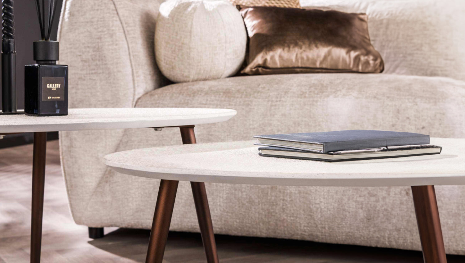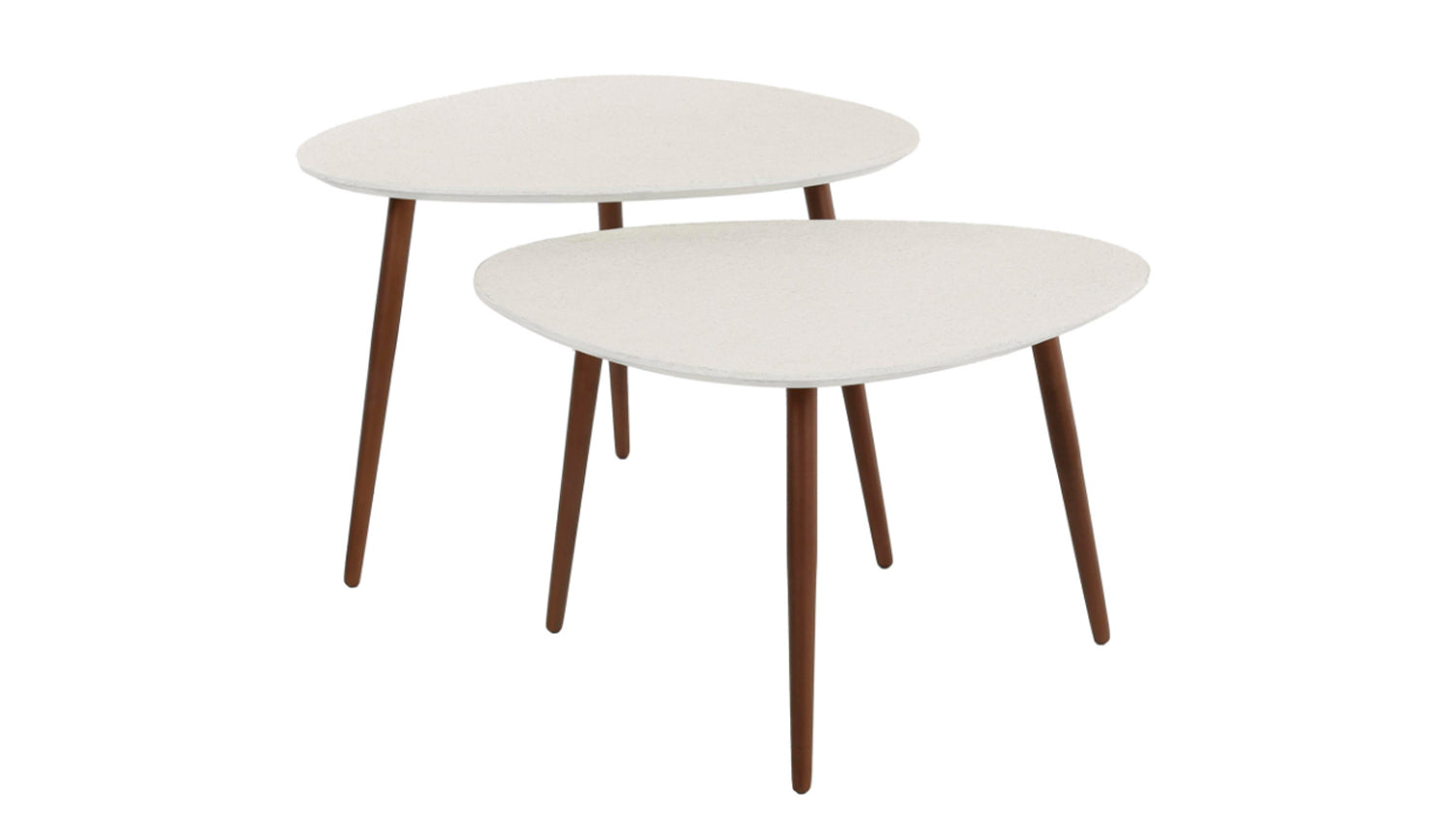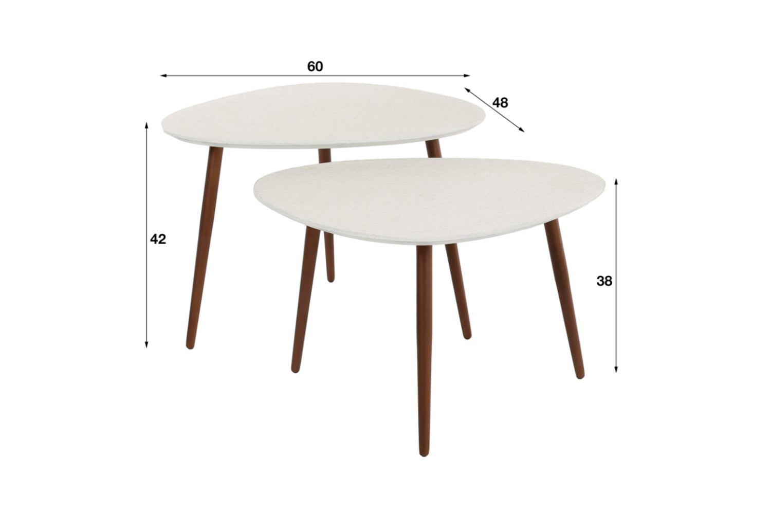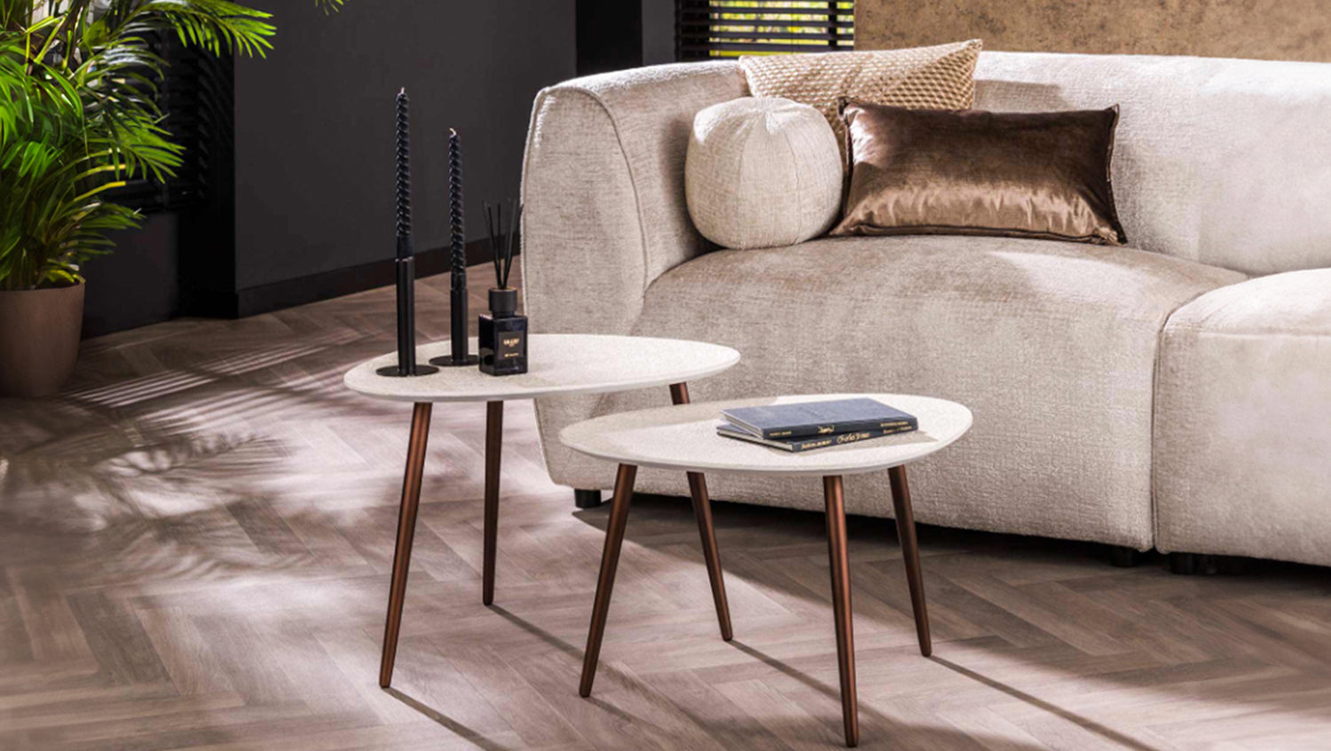 Das dreieckige Couchtisch-Set JAGO von KAWOLA ist aus einem Marmorverbundstoff gefertigt und verfügt über bronzefarbene Stahlbeine. Es besteht aus zwei Tischen, die sich nach Belieben zusammenstellen lassen - zeitgenössische Möbel mit einem frischen Look! Beide Tische haben jeweils eine Länge von ca. 60 cm und eine Breite von ca. 48 cm. Der höhere Tisch ist 42 cm hoch, der niedrigere Tisch ist 38 cm hoch. Dieses Set ist ein echter Blickfang! Ob im modernen Loft, im gemütlichen Wohnzimmer oder in einer eleganten Lounge – das Couchtisch-Set JAGO setzt stilvolle Akzente und verbindet Funktionalität mit zeitloser Ästhetik.