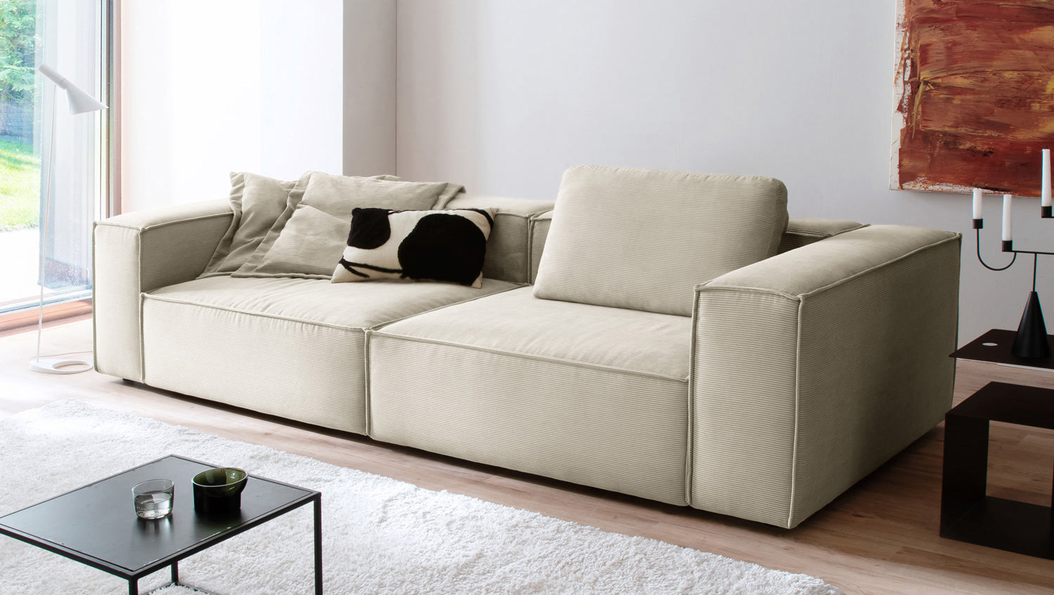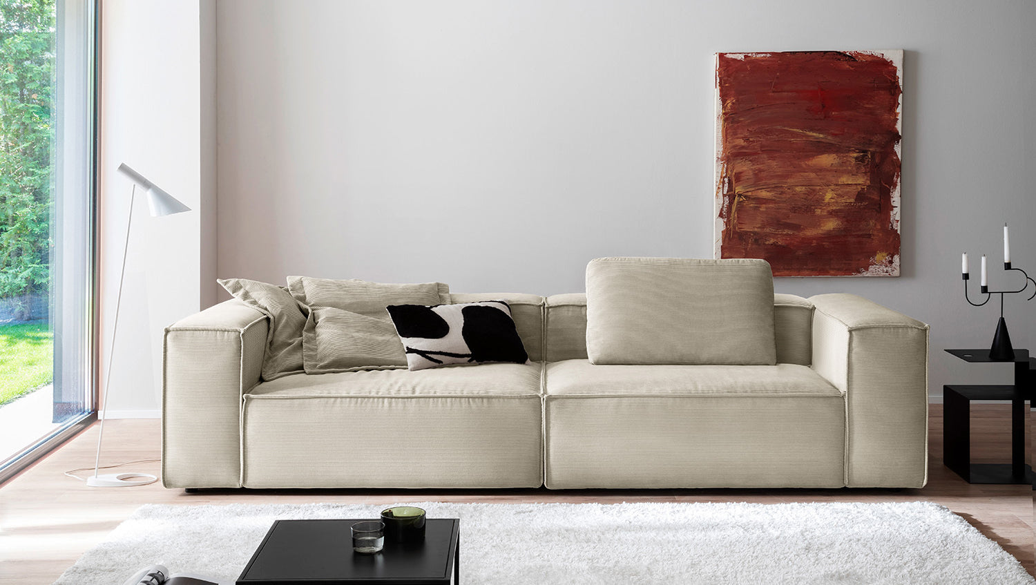 Der weiche Sitzkomfort lädt zum Entspannen ein – ob alleine oder mit Gästen. Mit einer Breite von 306 cm bietet CARMO großzügig Platz für gemütliche Stunden. Der Rundumbezug sorgt dafür, dass das Sofa frei im Raum stehen kann – ideal für moderne Wohnkonzepte.