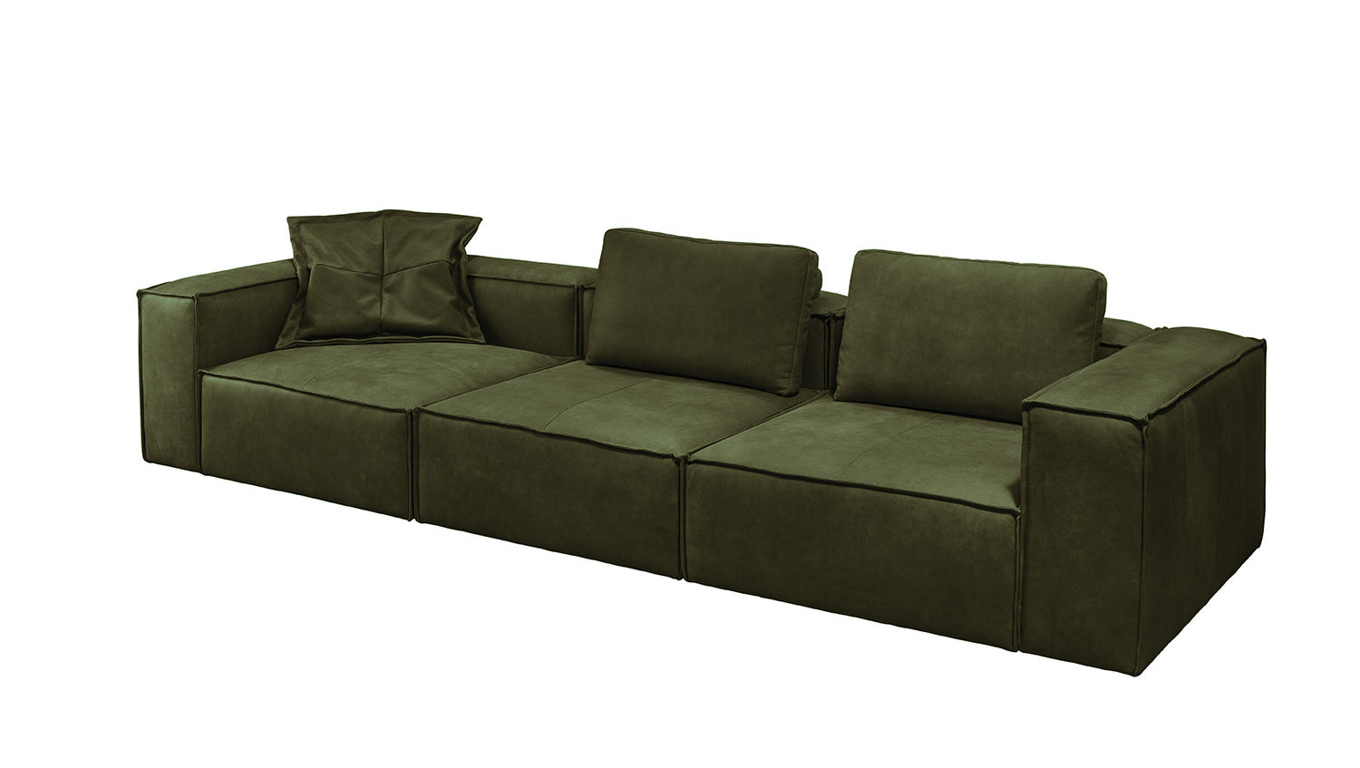 KAWOLA Sofa CARMO 4-Sitzer Leder olivgrün