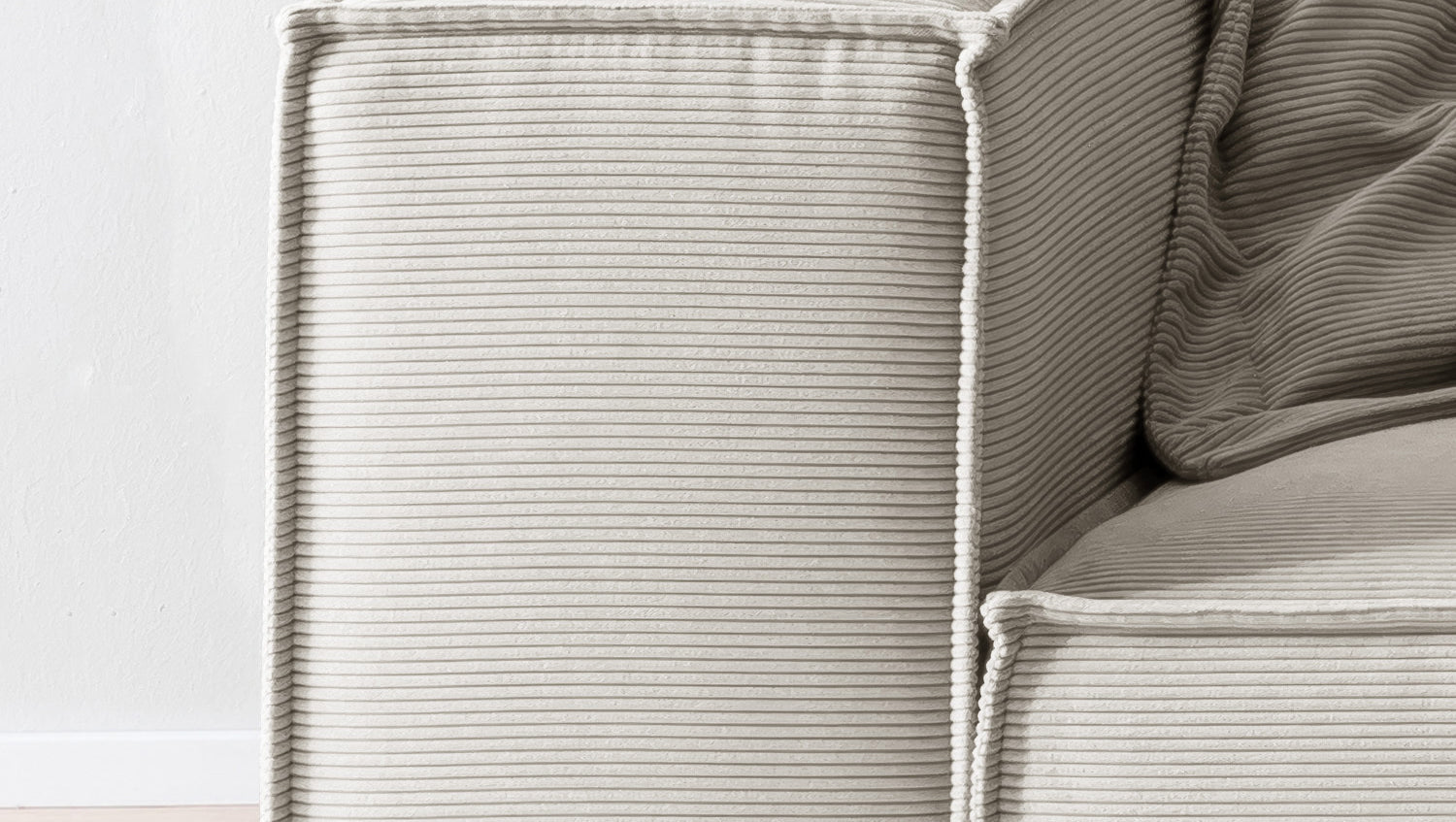Das 3-Sitzer Sofa CARMO von KAWOLA vereint stilvolles Design mit höchstem Komfort. Mit seinem modernen Feincord-Bezug liegt es voll im Trend – Cord feiert aktuell ein großes Comeback in der Interior-Welt. Der Stoff besticht nicht nur durch seine besondere Haptik und den eleganten Look, sondern ist auch langlebig und pflegeleicht. Das strukturierte Material steht für stilvolle Gemütlichkeit und setzt modische Akzente im Wohnraum. Dank geringer Pillingbildung bleibt das Sofa lange schön.