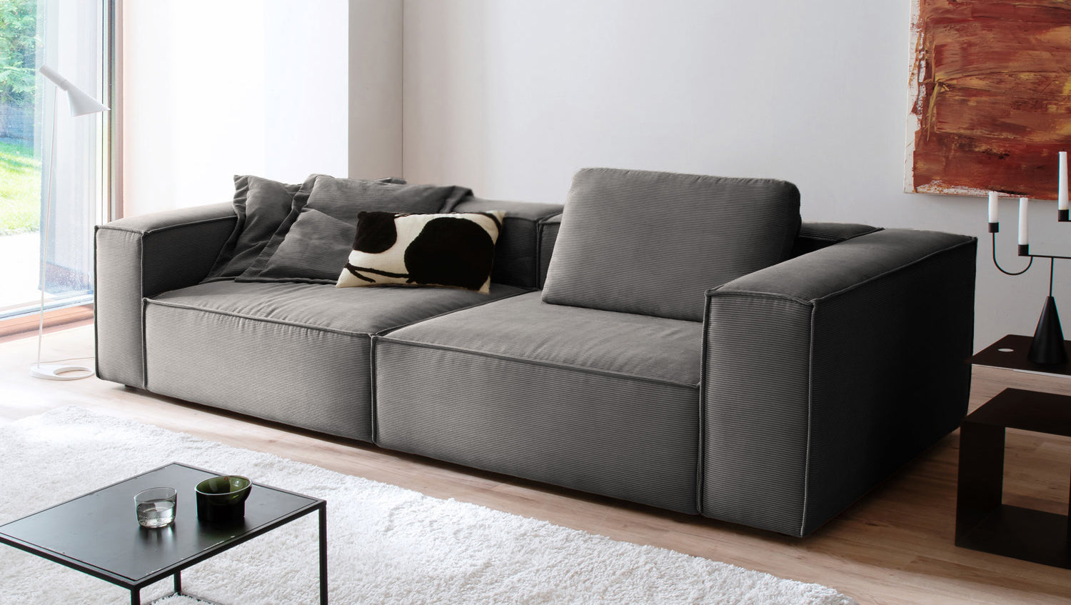 KAWOLA Sofa CARMO 3-Sitzer Feincord anthrazit